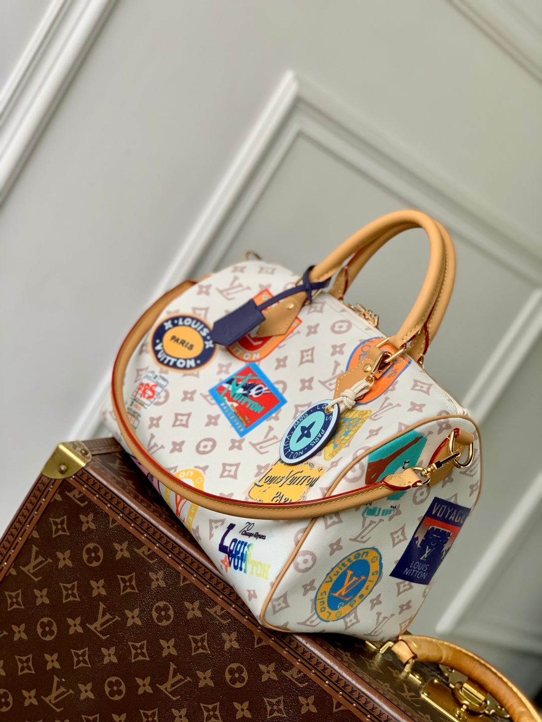 SPEEDY SOFT 30 IN WHITE MONOGRAM DUNE CANVAS AND CALFSKIN