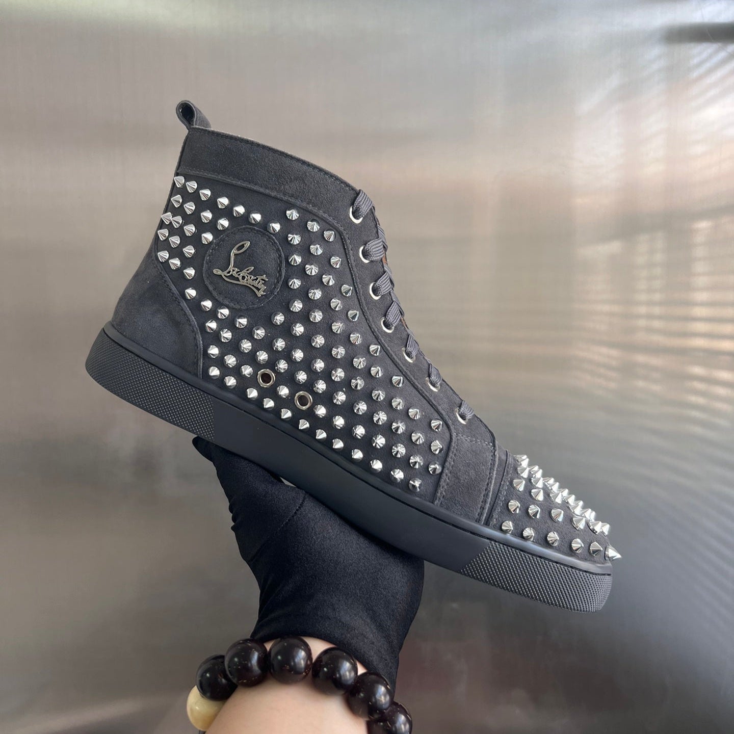 SPIKE STUDDED HIGH-TOP SNEAKERS IN BLACK CALFSKIN