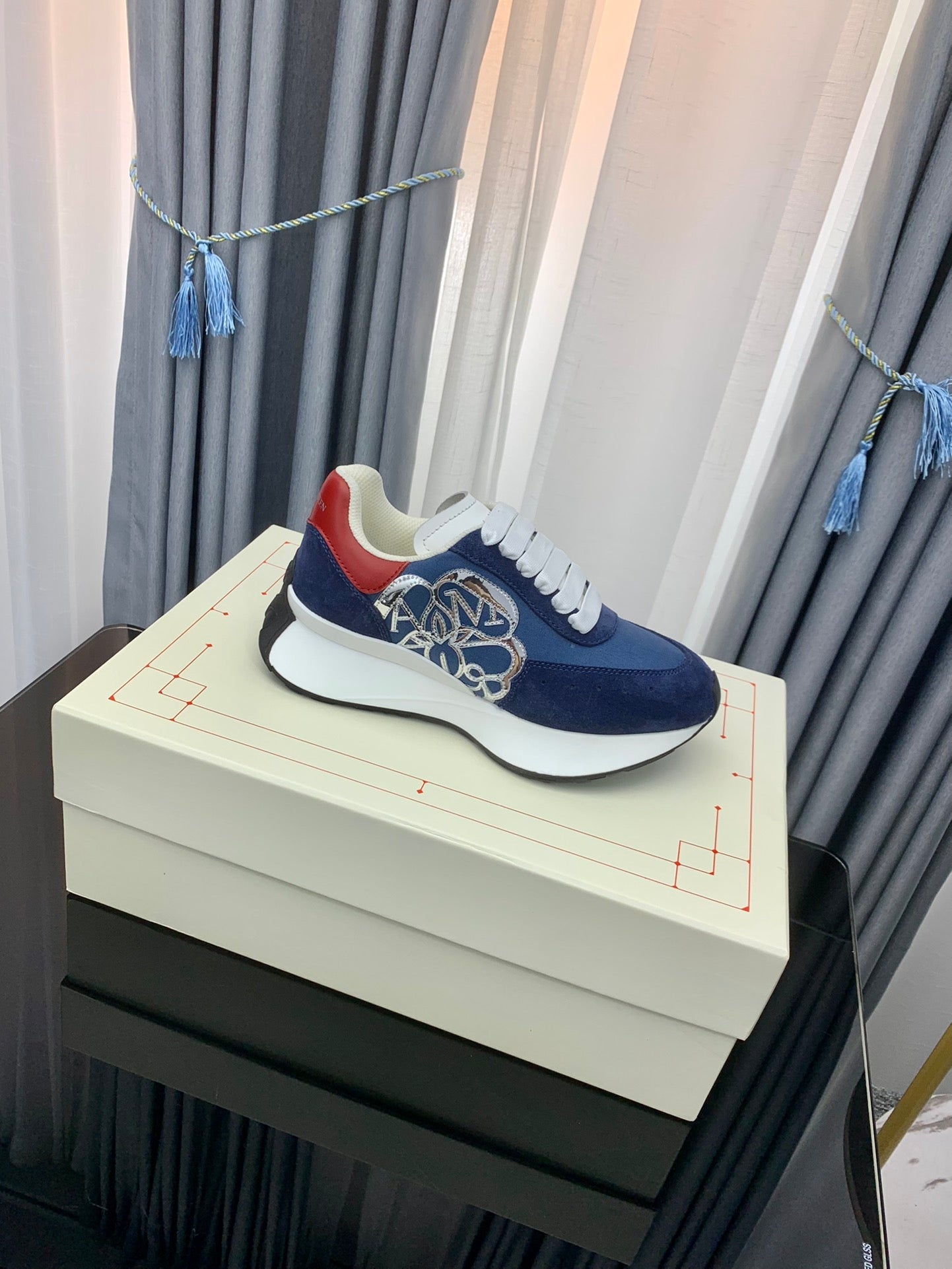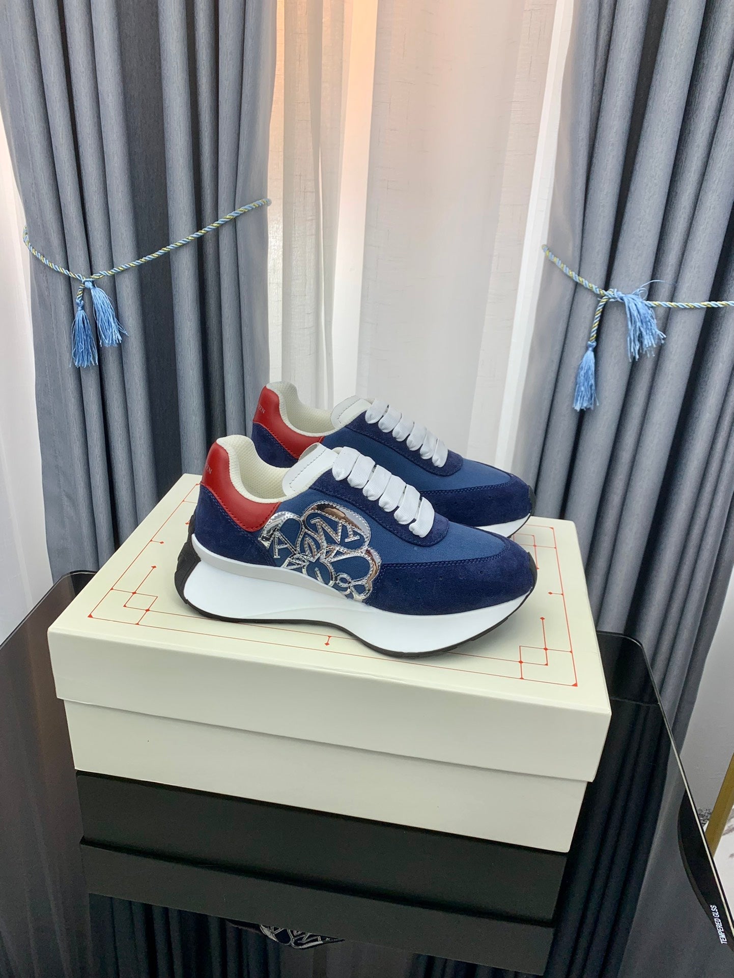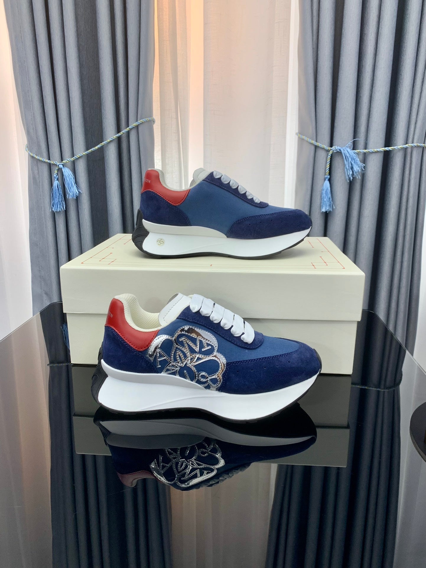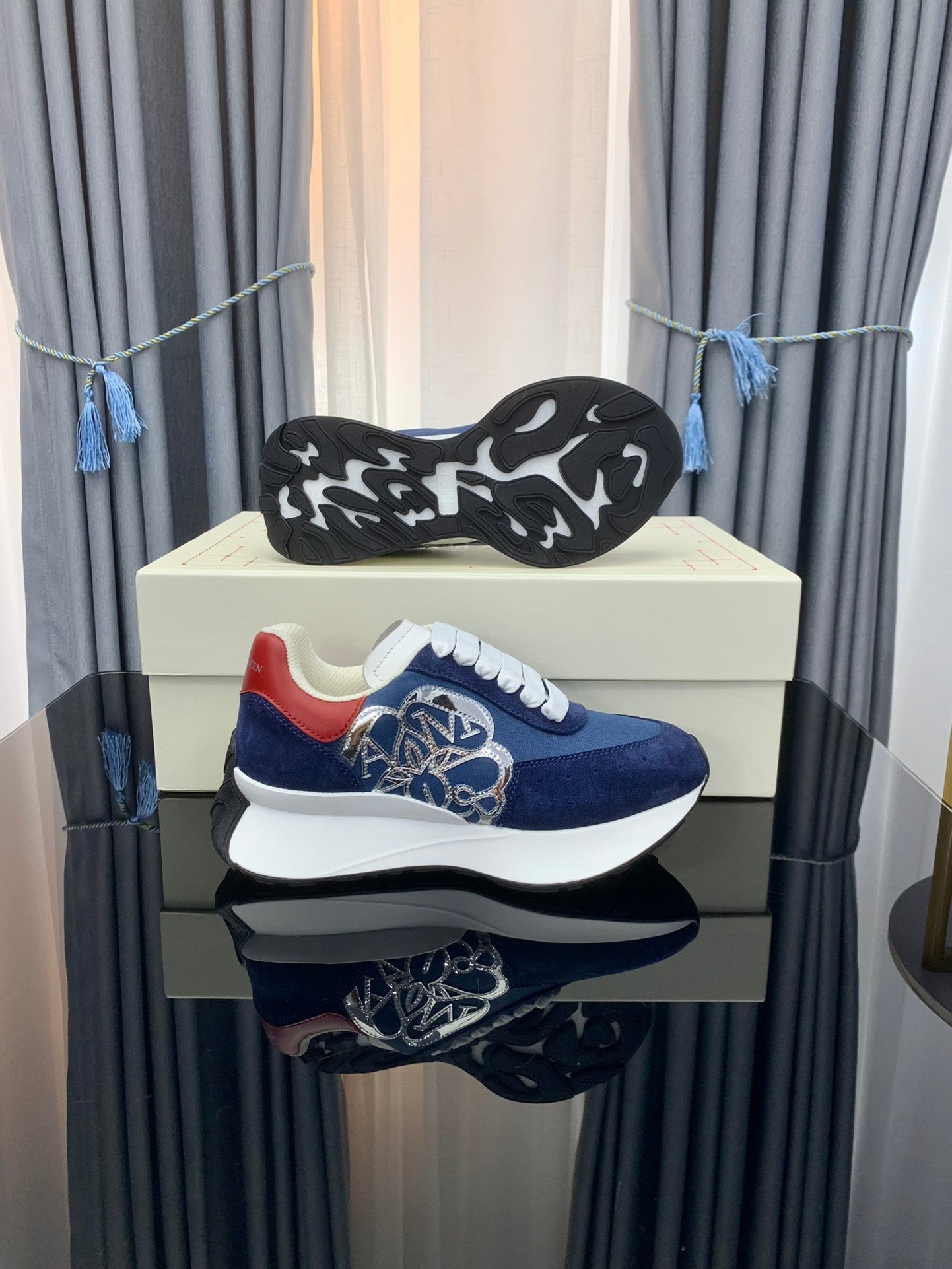 SPRINT RUNNER LOW-TOP NAVY BLUE SUEDE SILVER EMBROIDERED LOGO RED HEEL