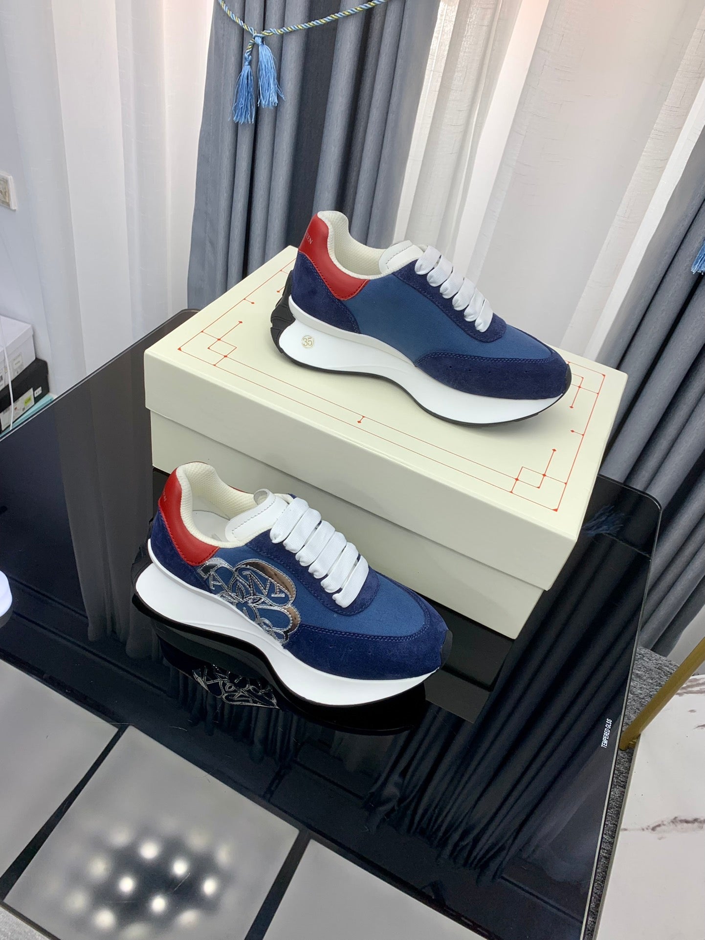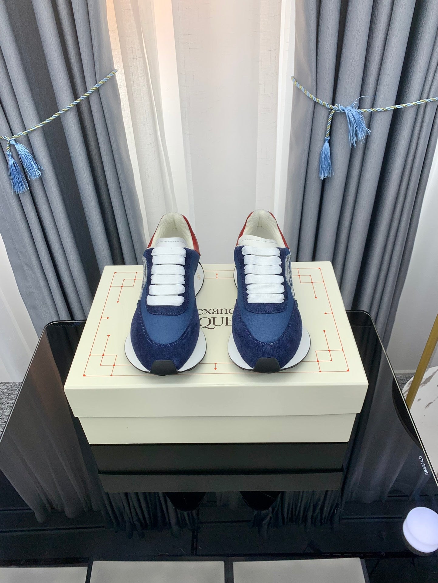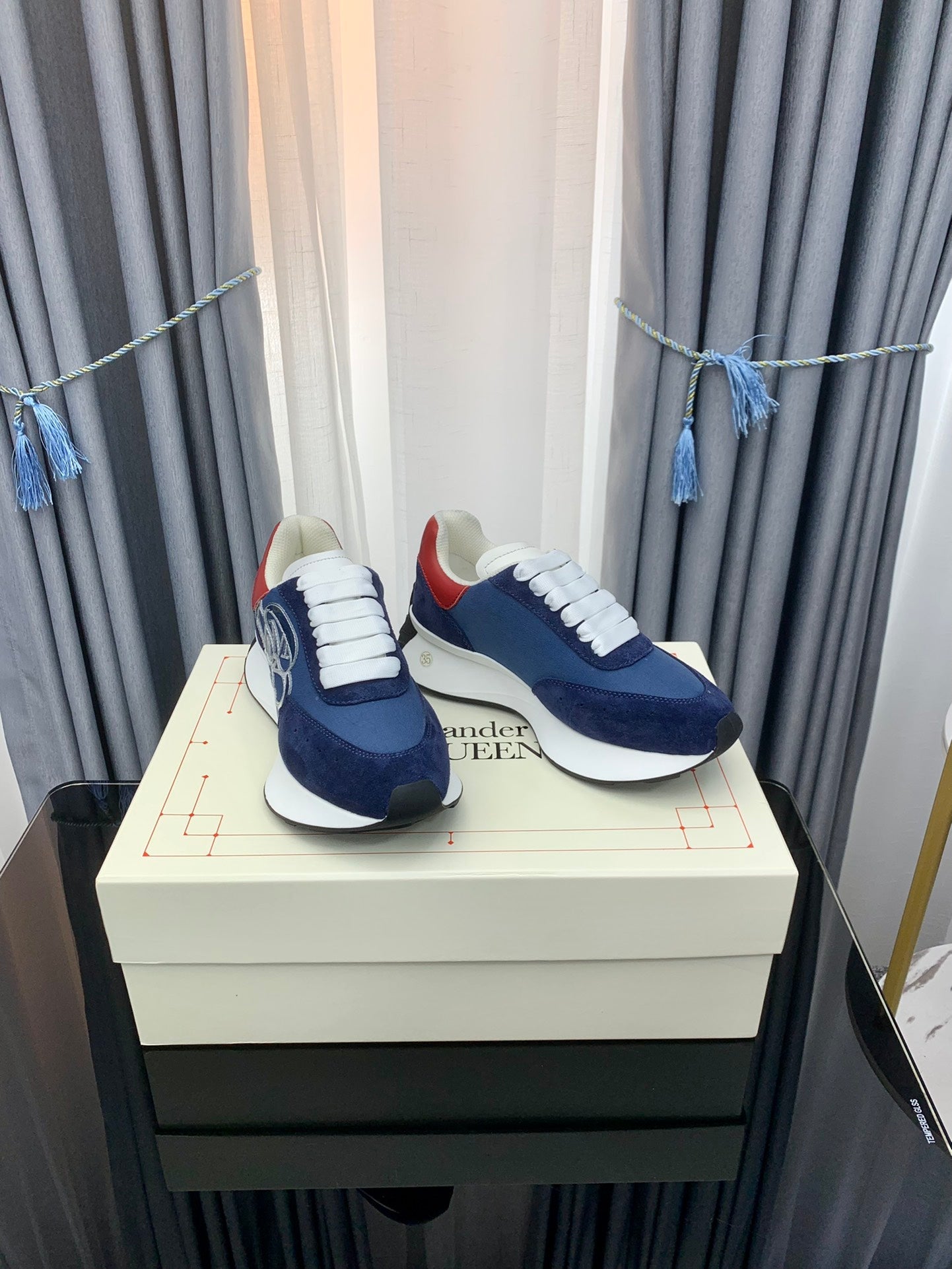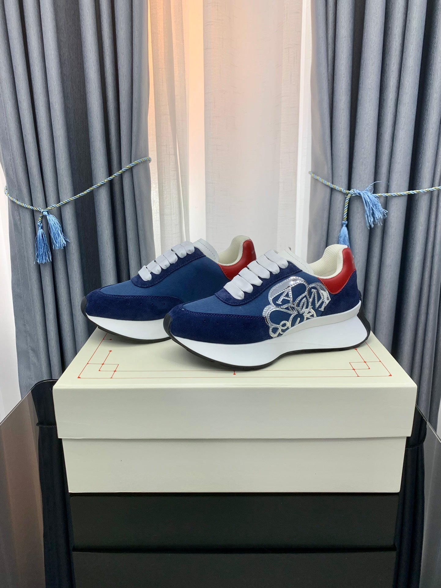 SPRINT RUNNER LOW-TOP NAVY BLUE SUEDE SILVER EMBROIDERED LOGO RED HEEL