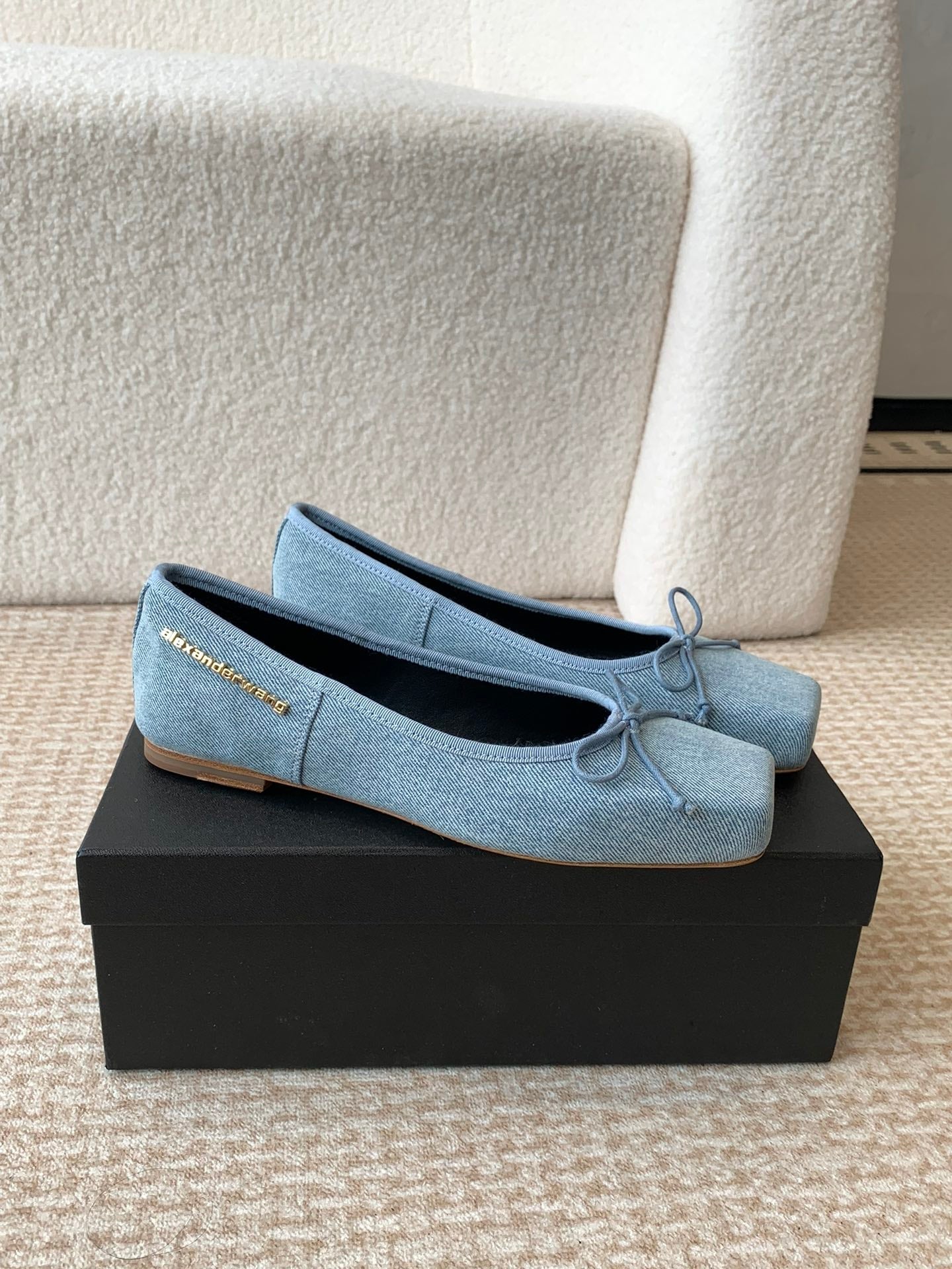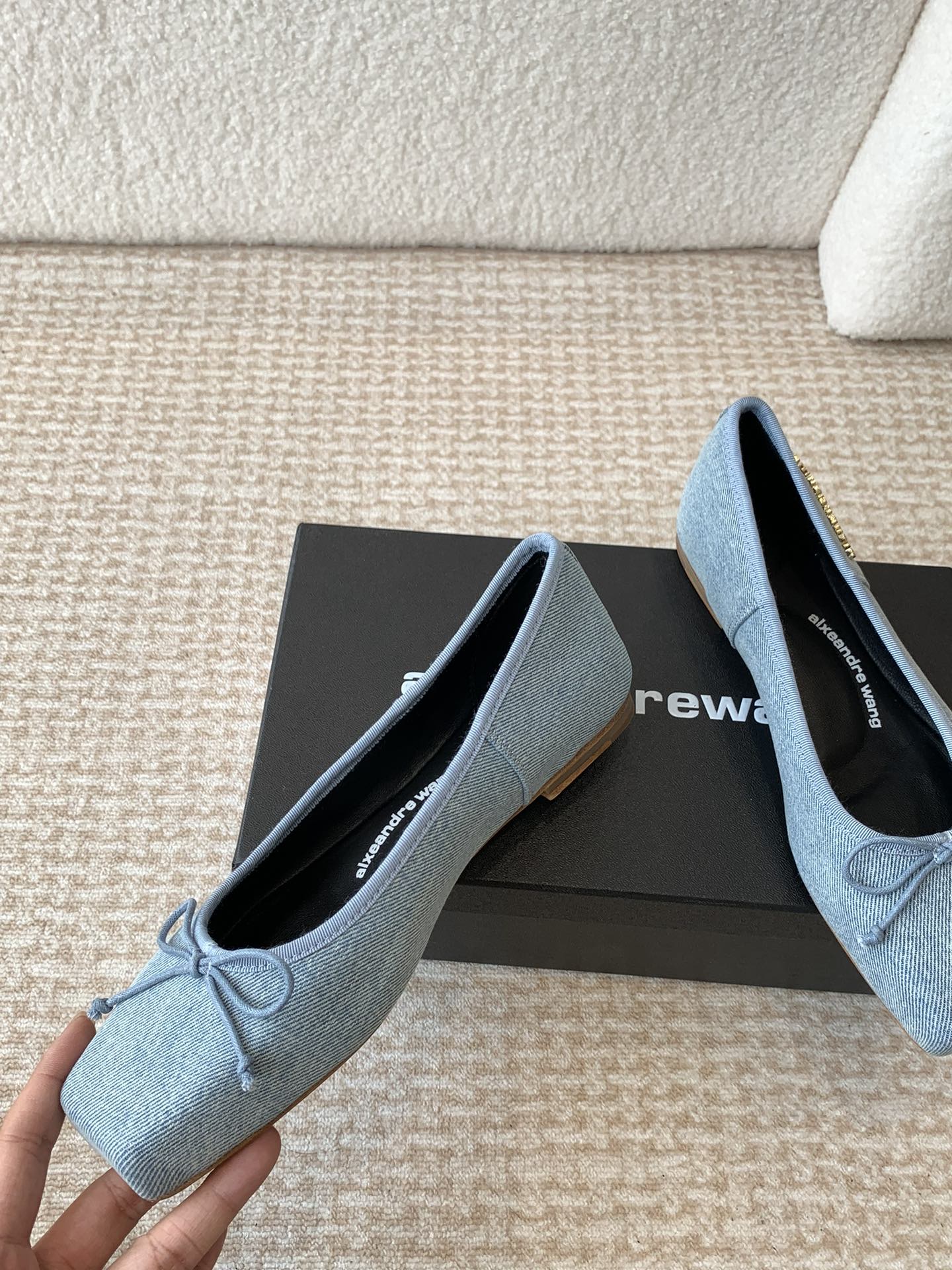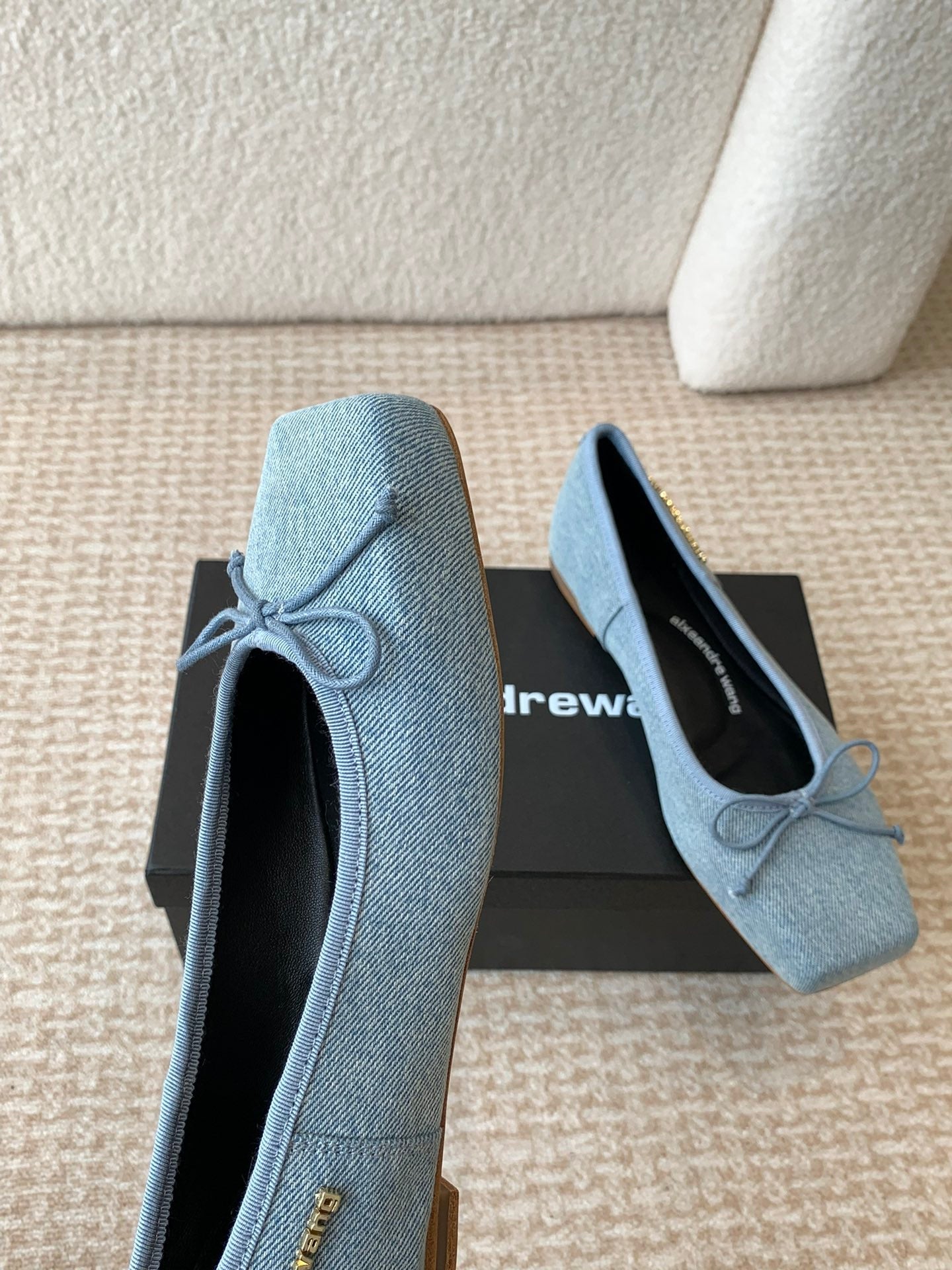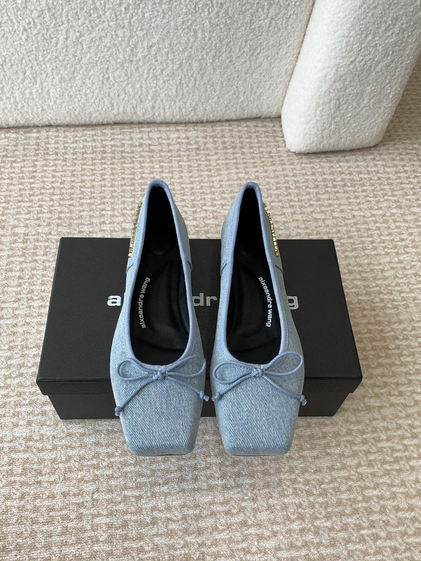 SQUARE-TOE BALLET FLAT IN LIGHT BLUE DENIM FABRIC WITH BOW