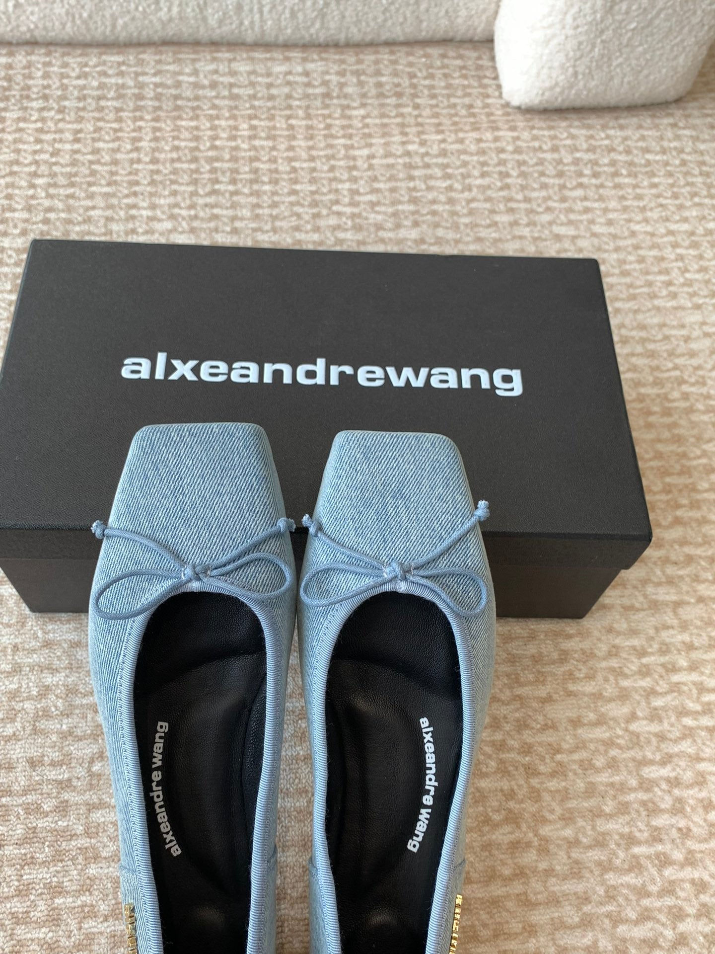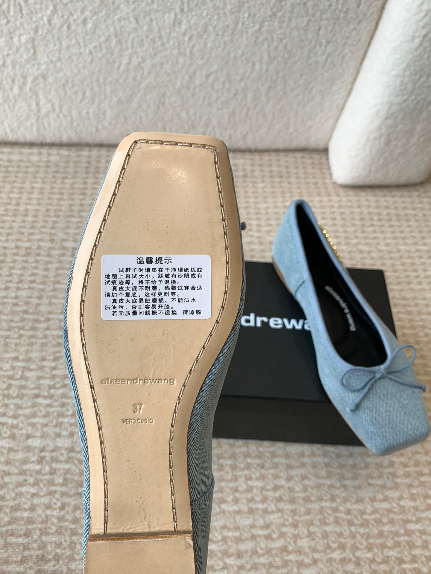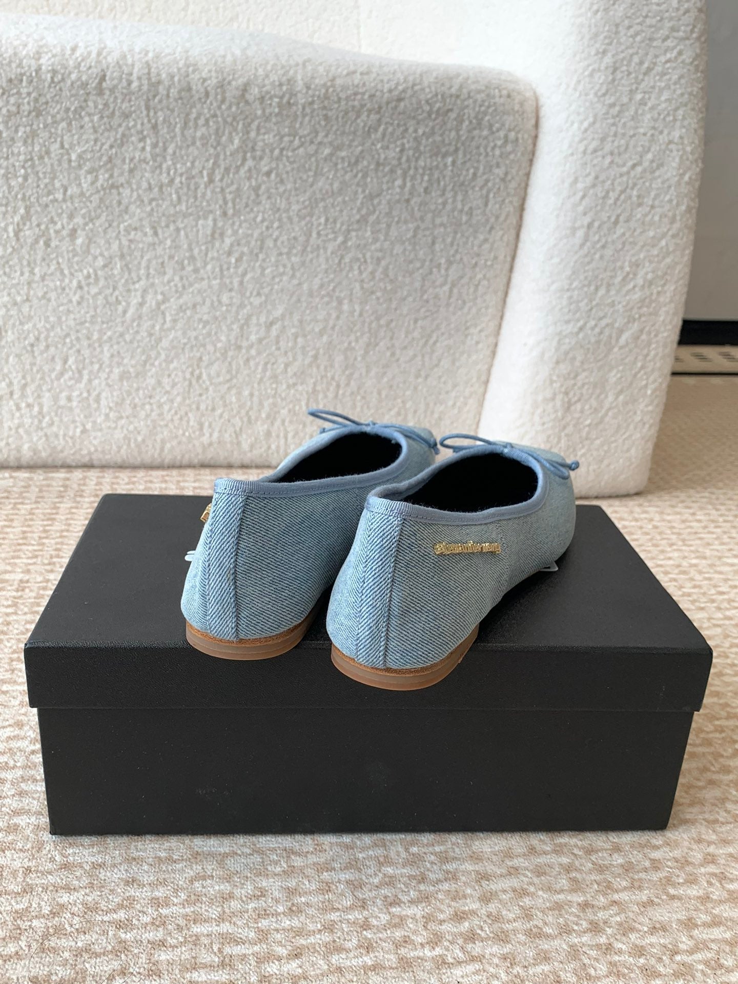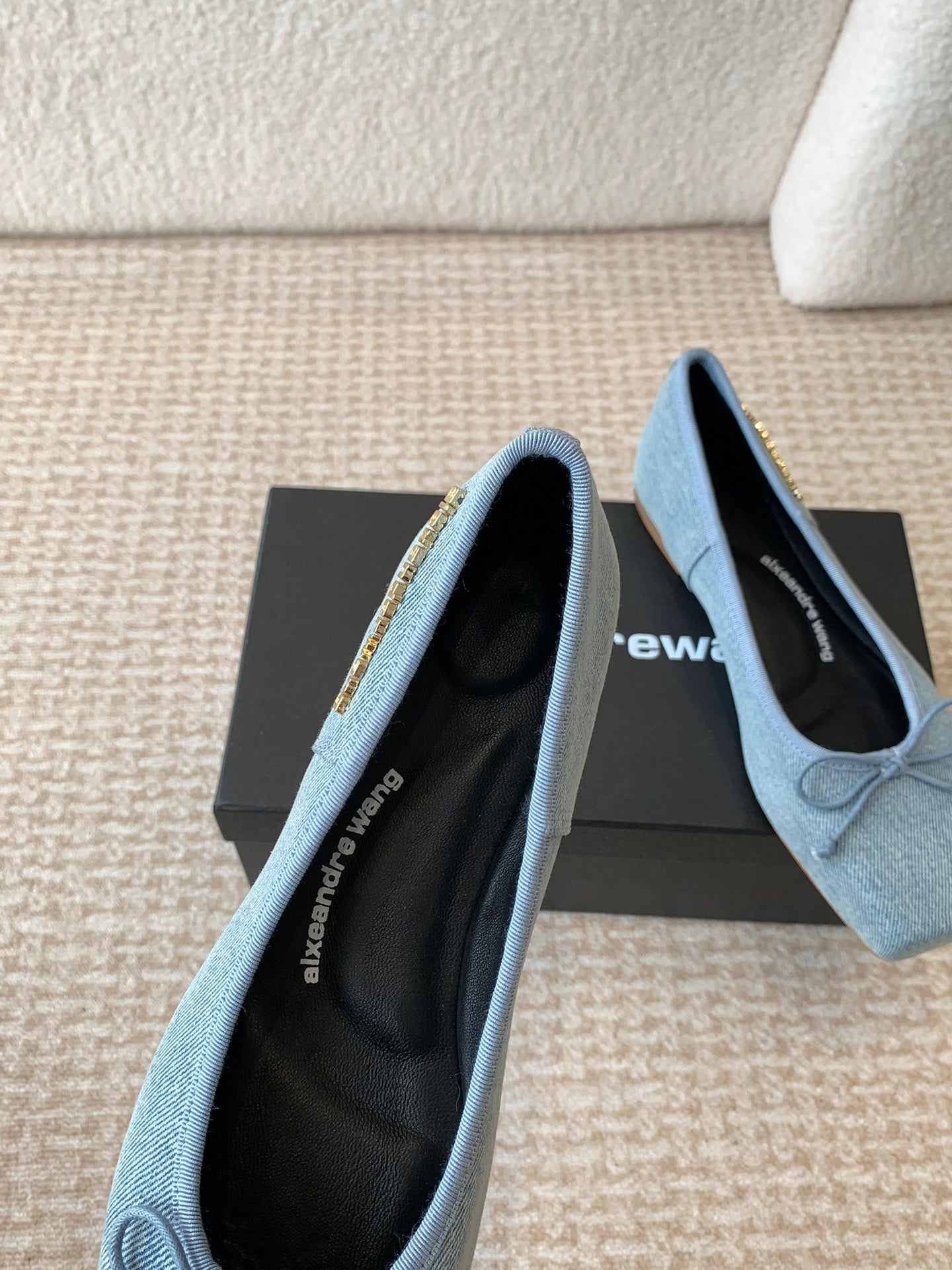 SQUARE-TOE BALLET FLAT IN LIGHT BLUE DENIM FABRIC WITH BOW
