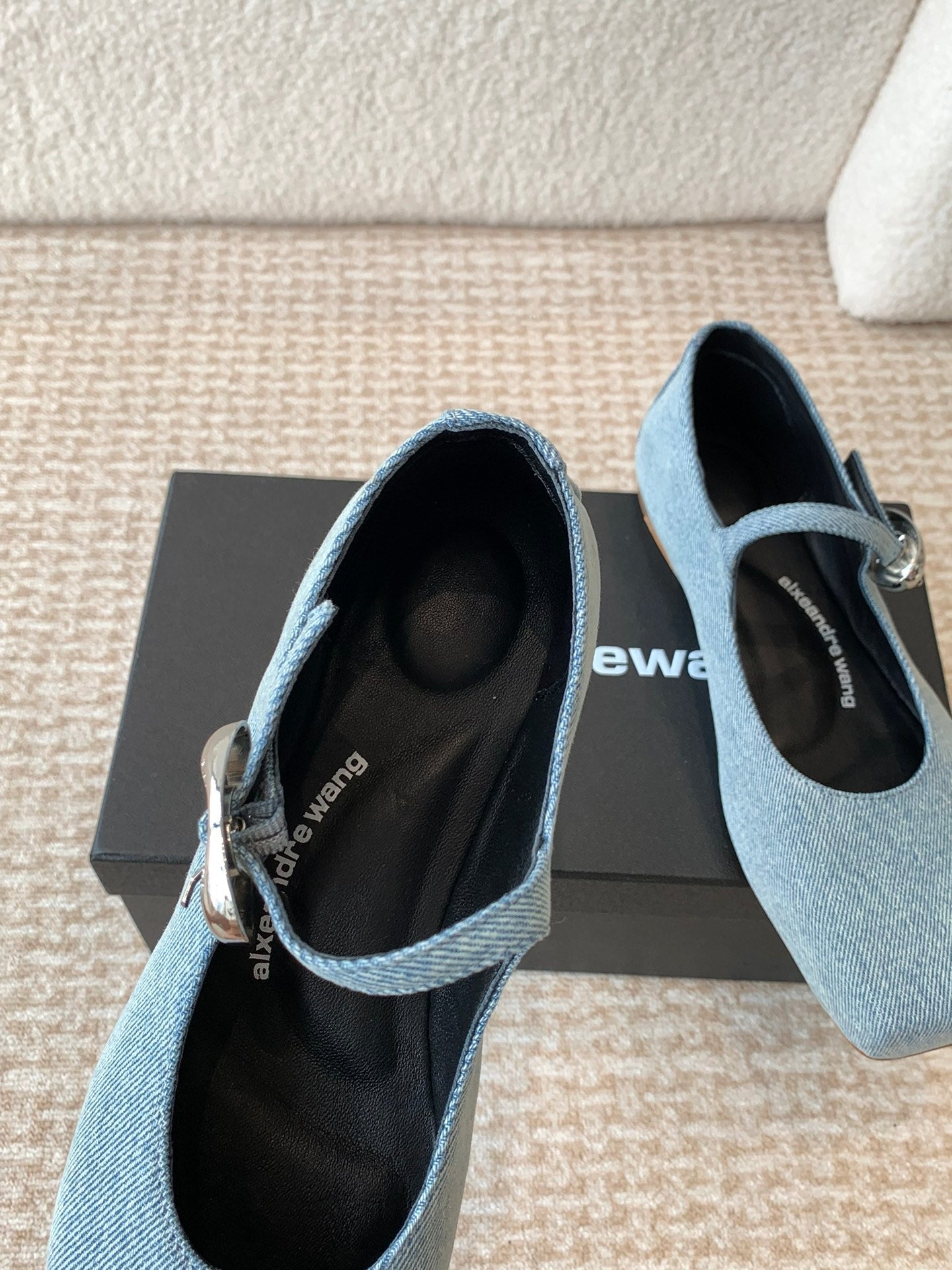 SQUARE-TOE MARY JANE IN LIGHT BLUE DENIM FABRIC