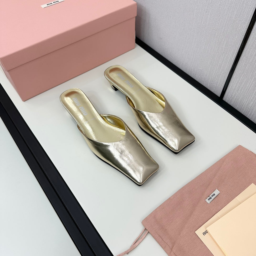 SQUARE TOE MULES METALLIC GOLD SHEEPSKIN