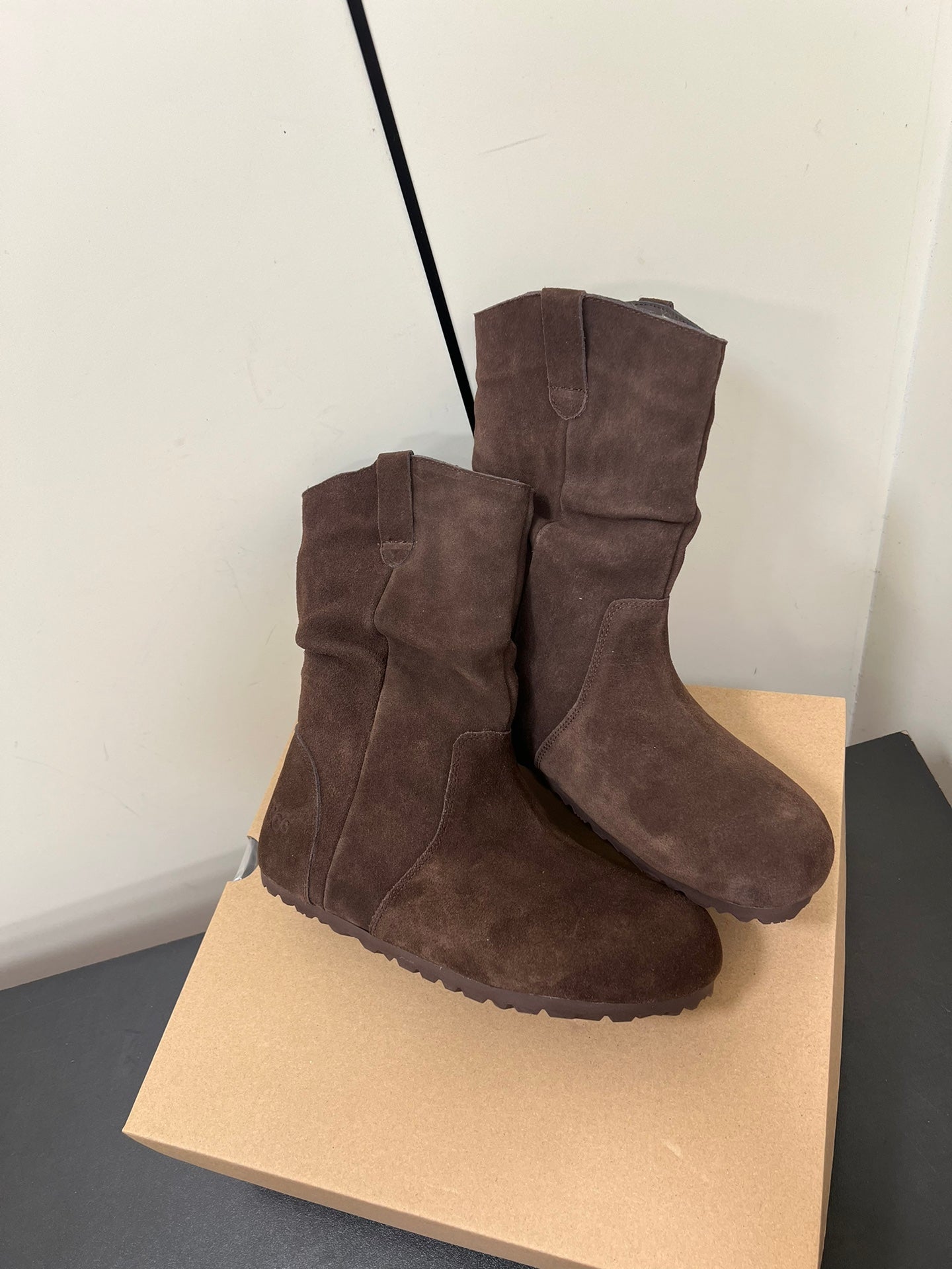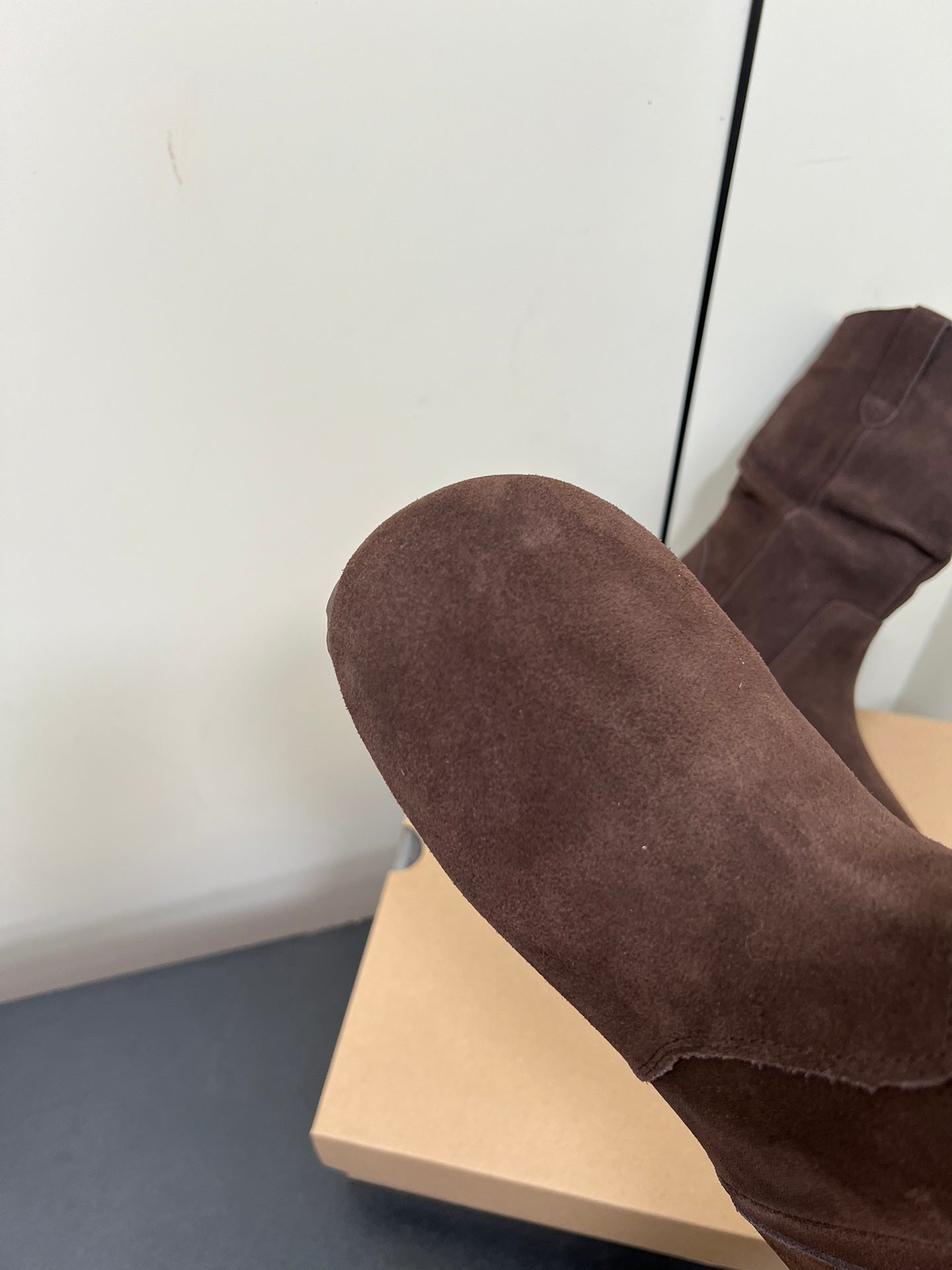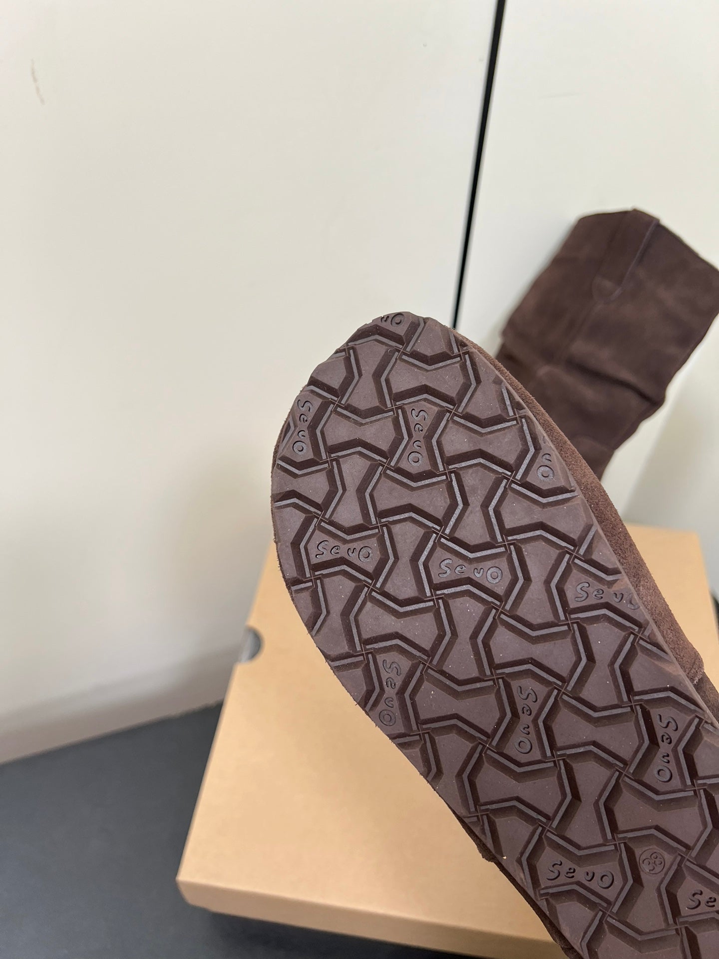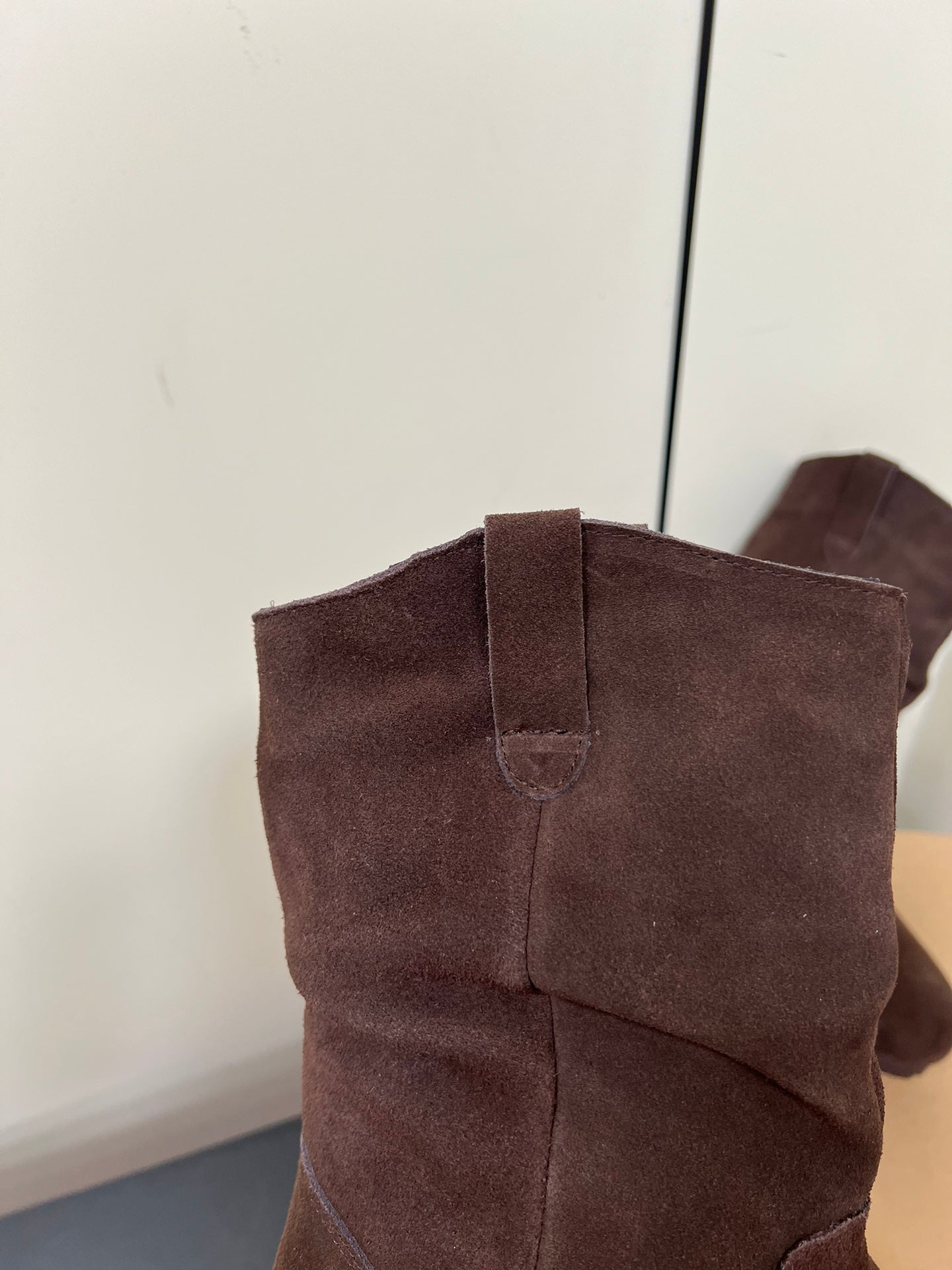 STACKED WRINKLE SHORT BOOTS IN HICKORY BROWN SUEDE
