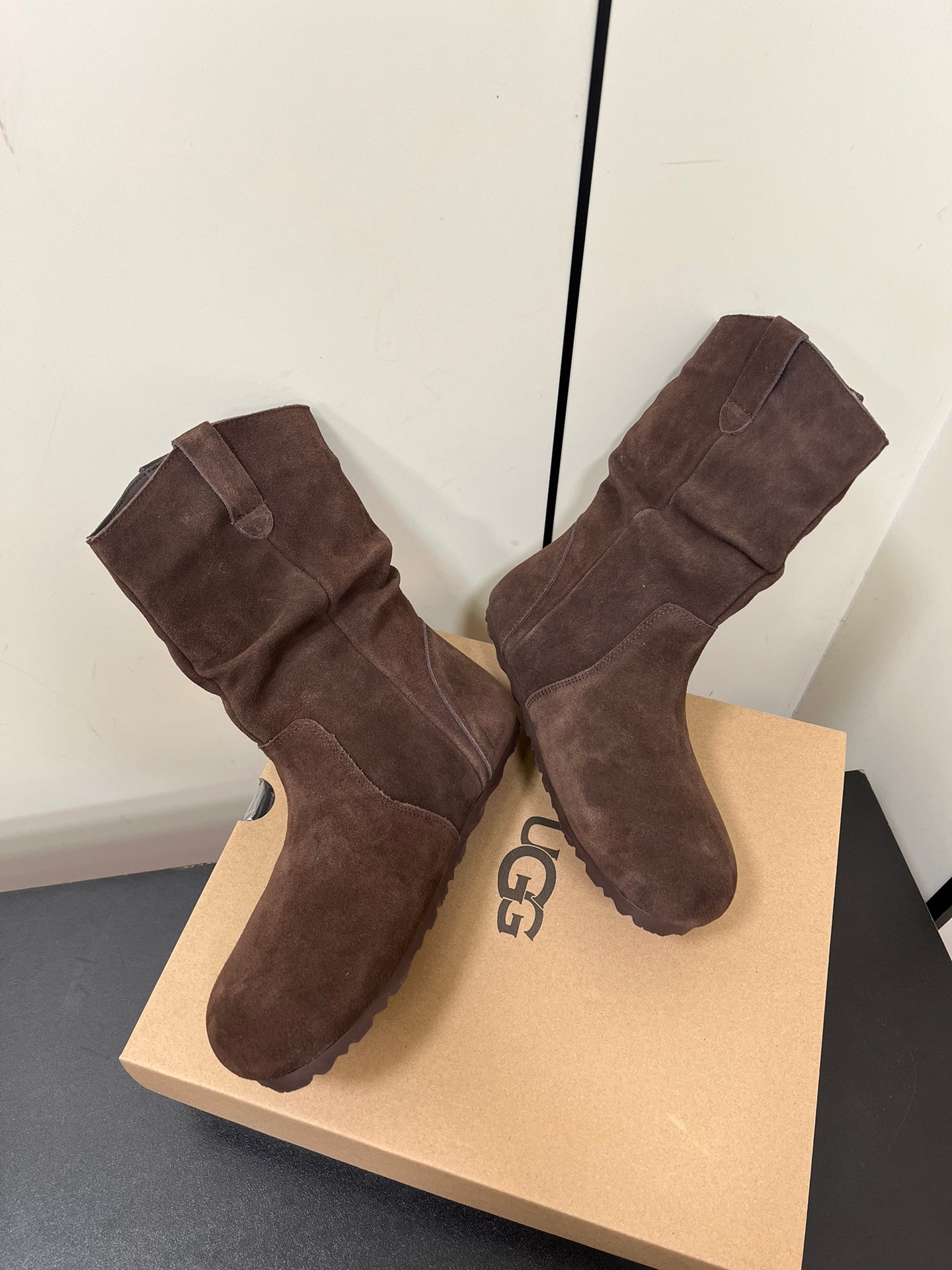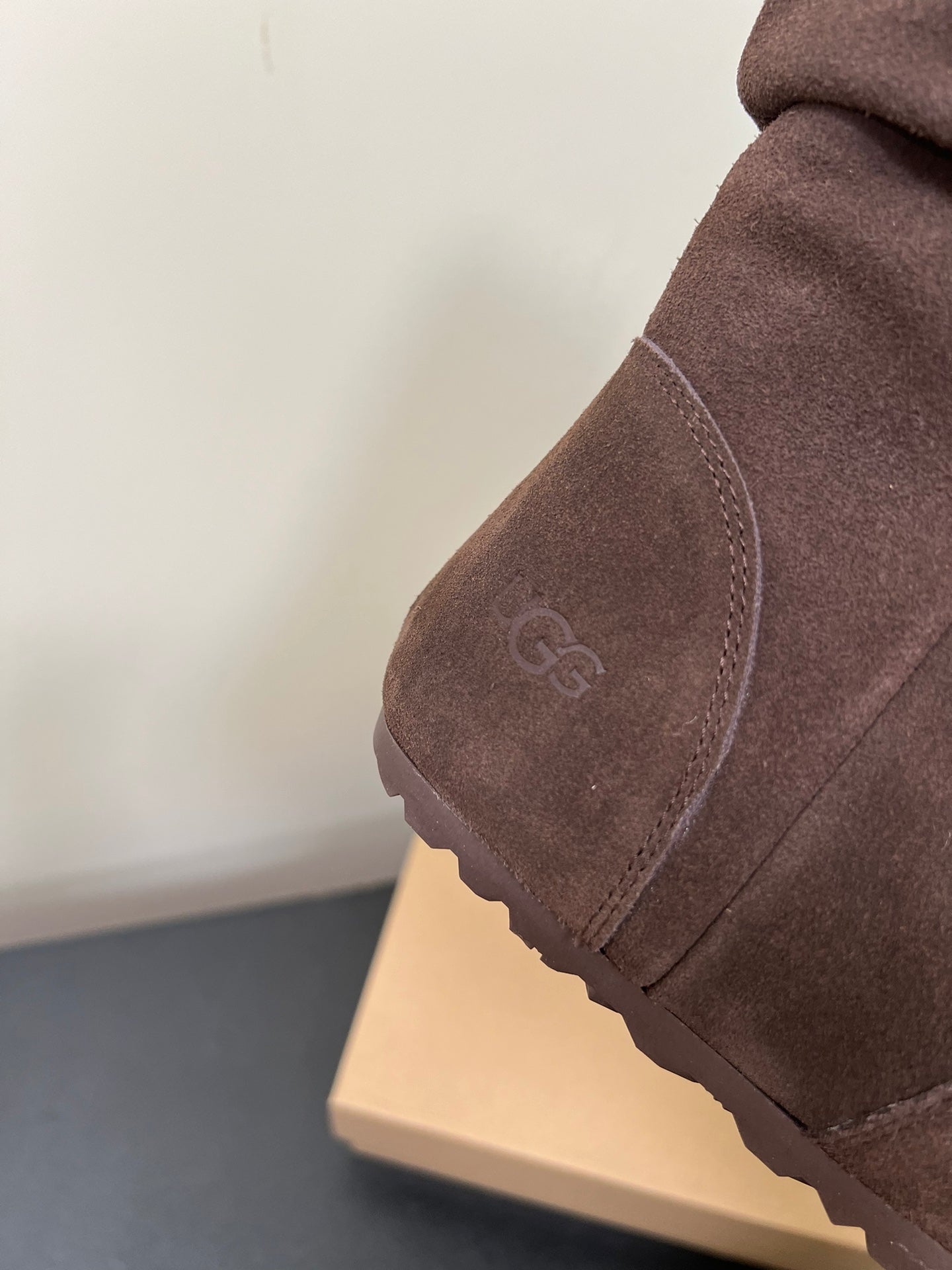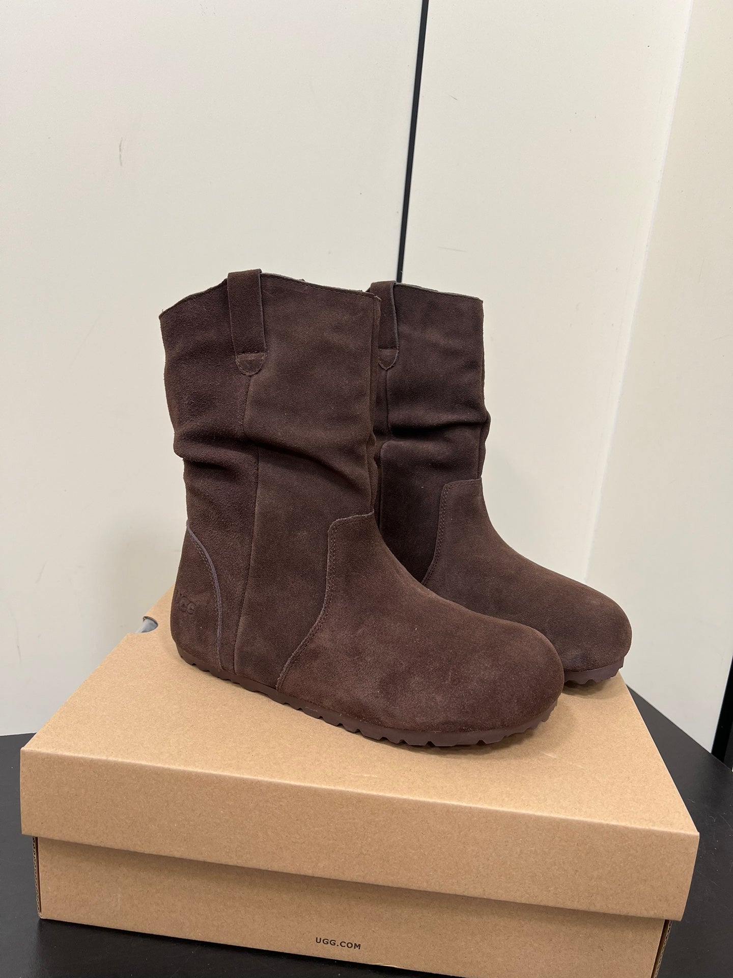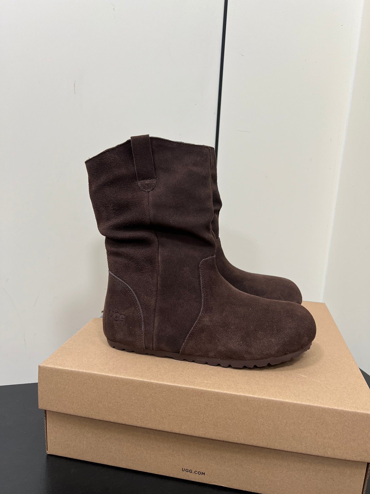 STACKED WRINKLE SHORT BOOTS IN HICKORY BROWN SUEDE