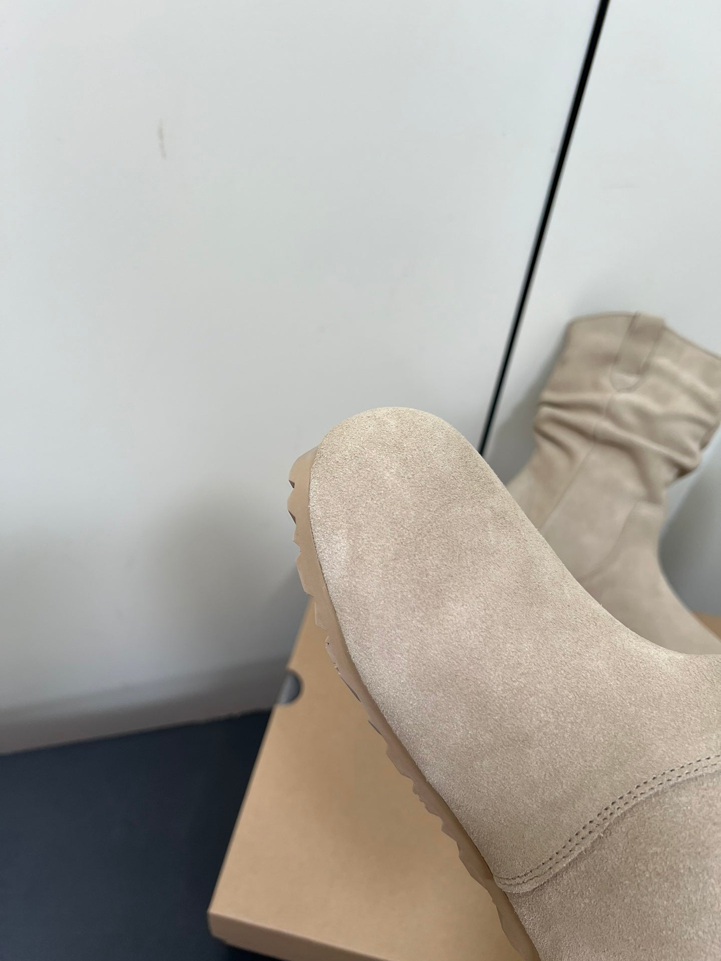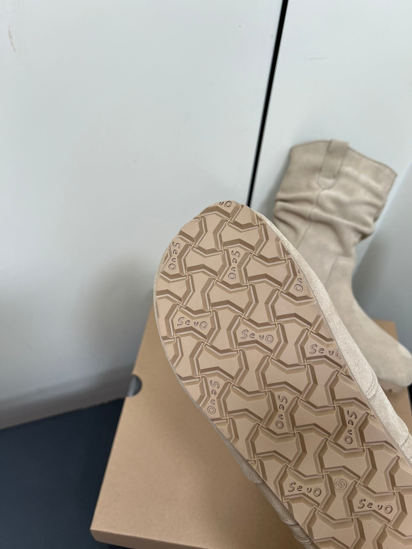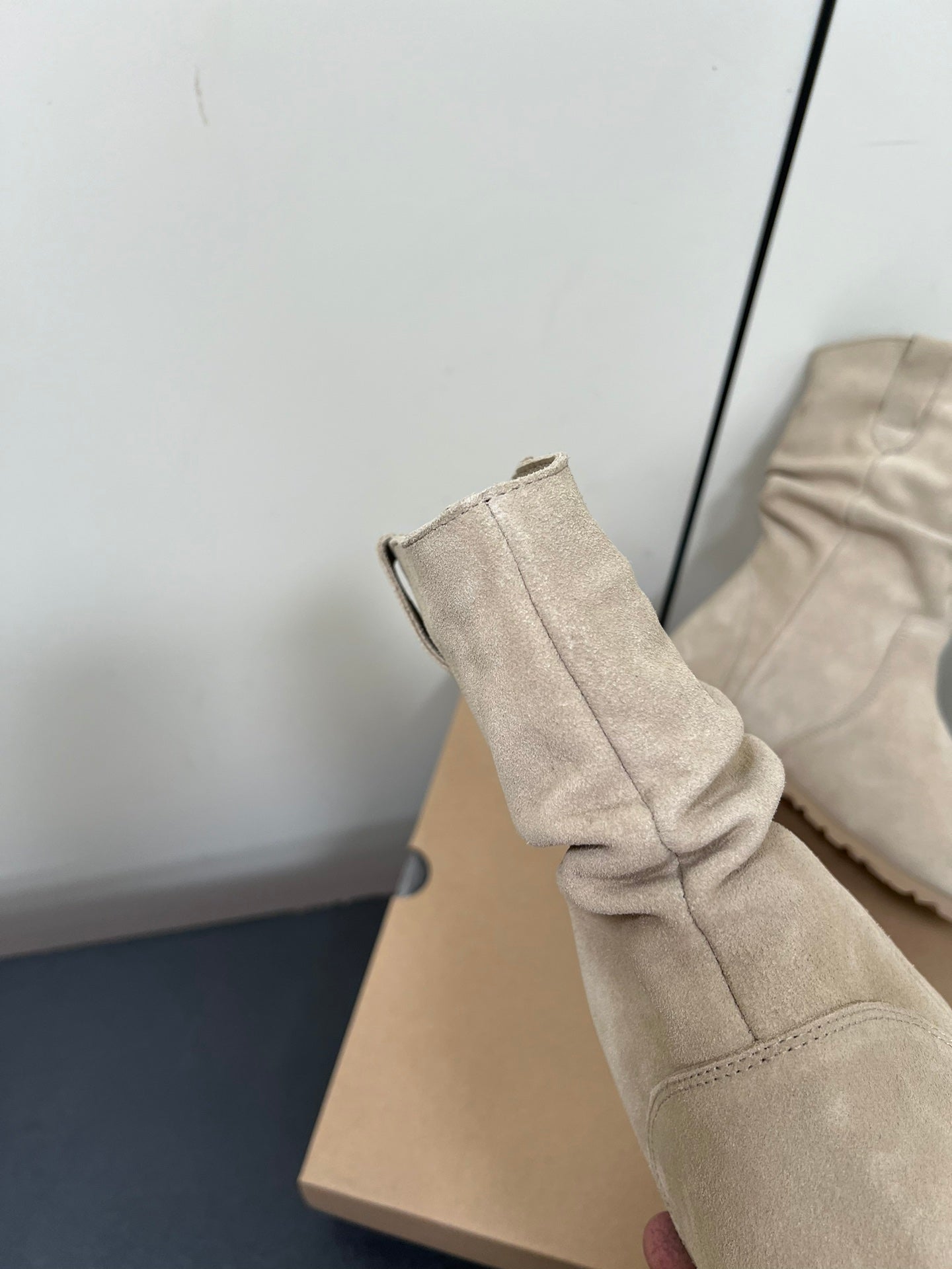 STACKED WRINKLE SHORT BOOTS IN KHAKI BROWN SUEDE