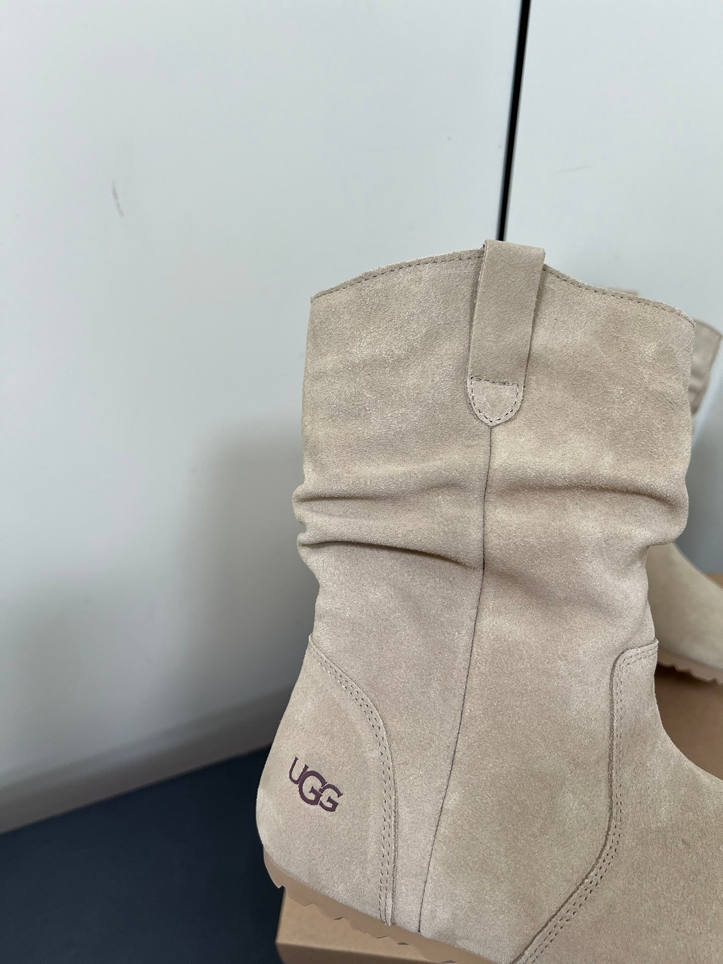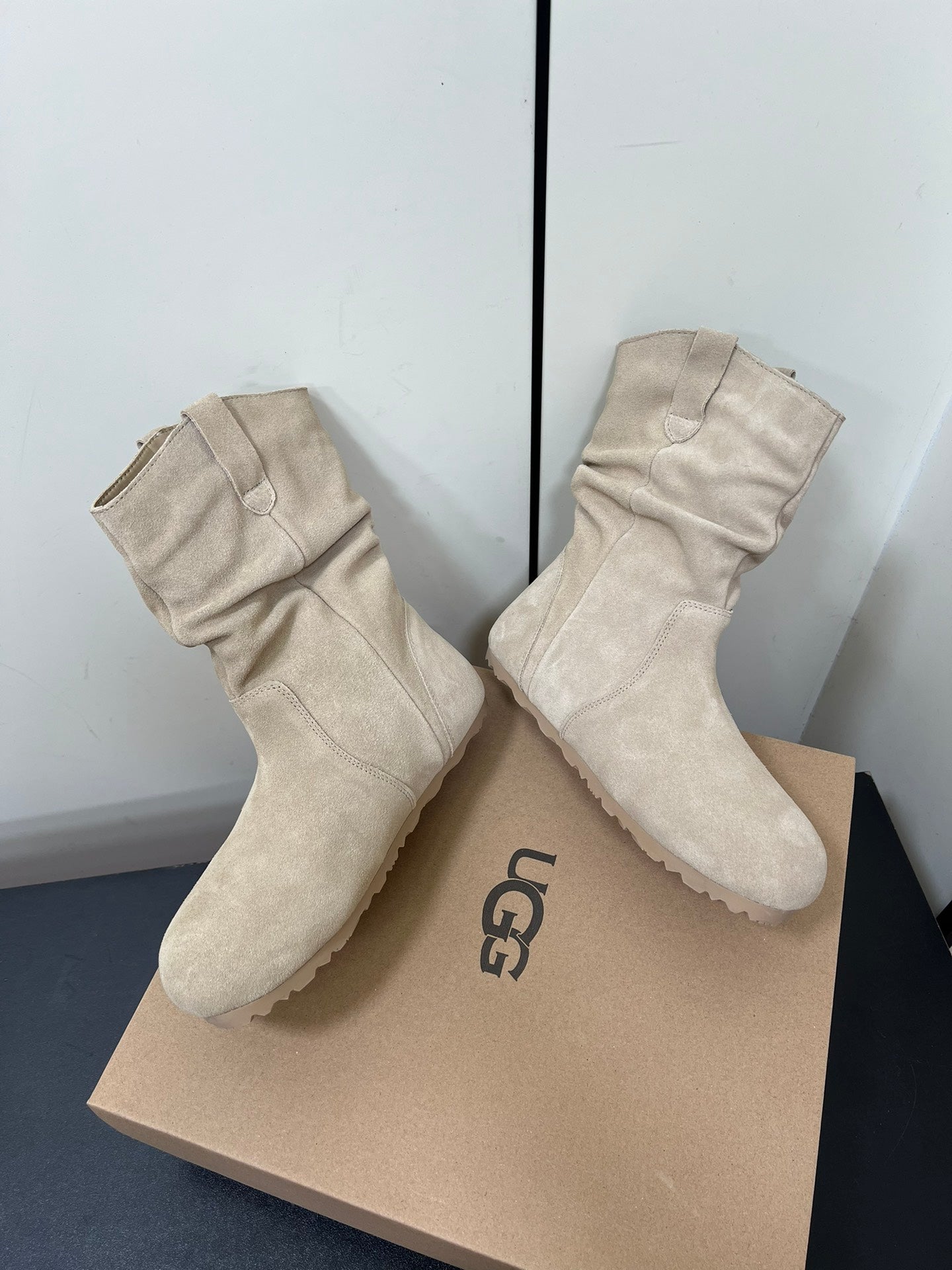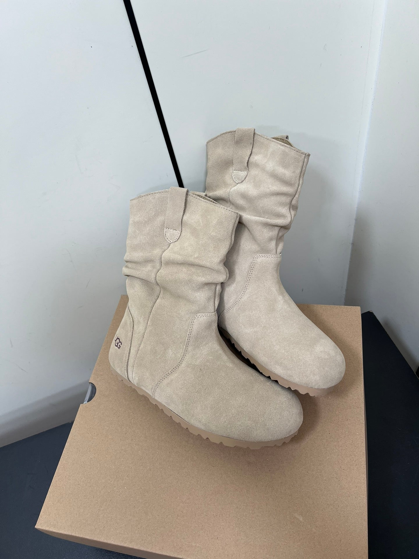 STACKED WRINKLE SHORT BOOTS IN KHAKI BROWN SUEDE