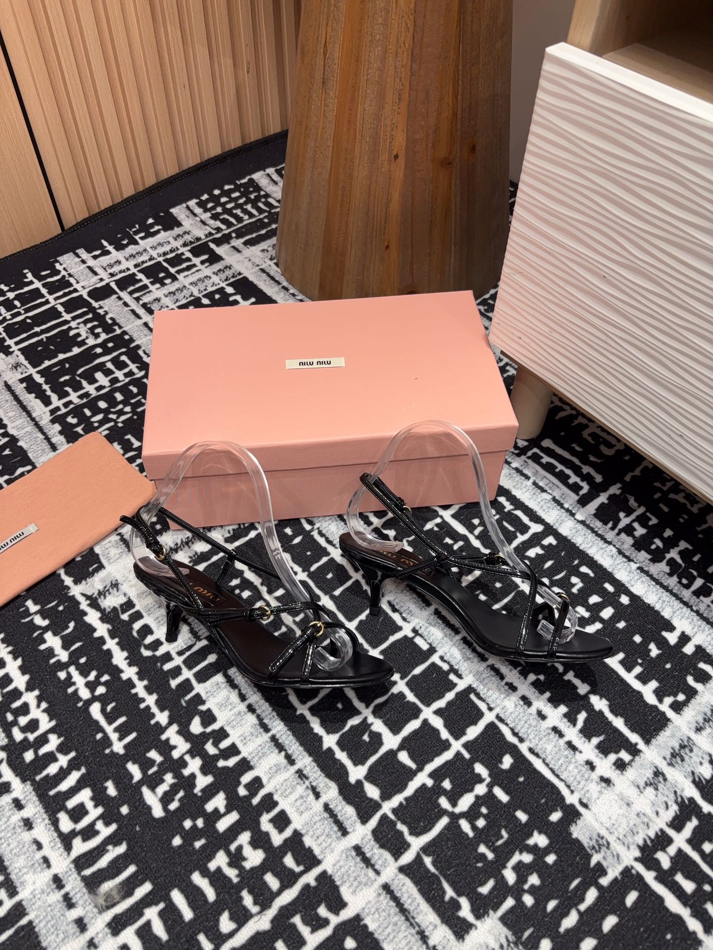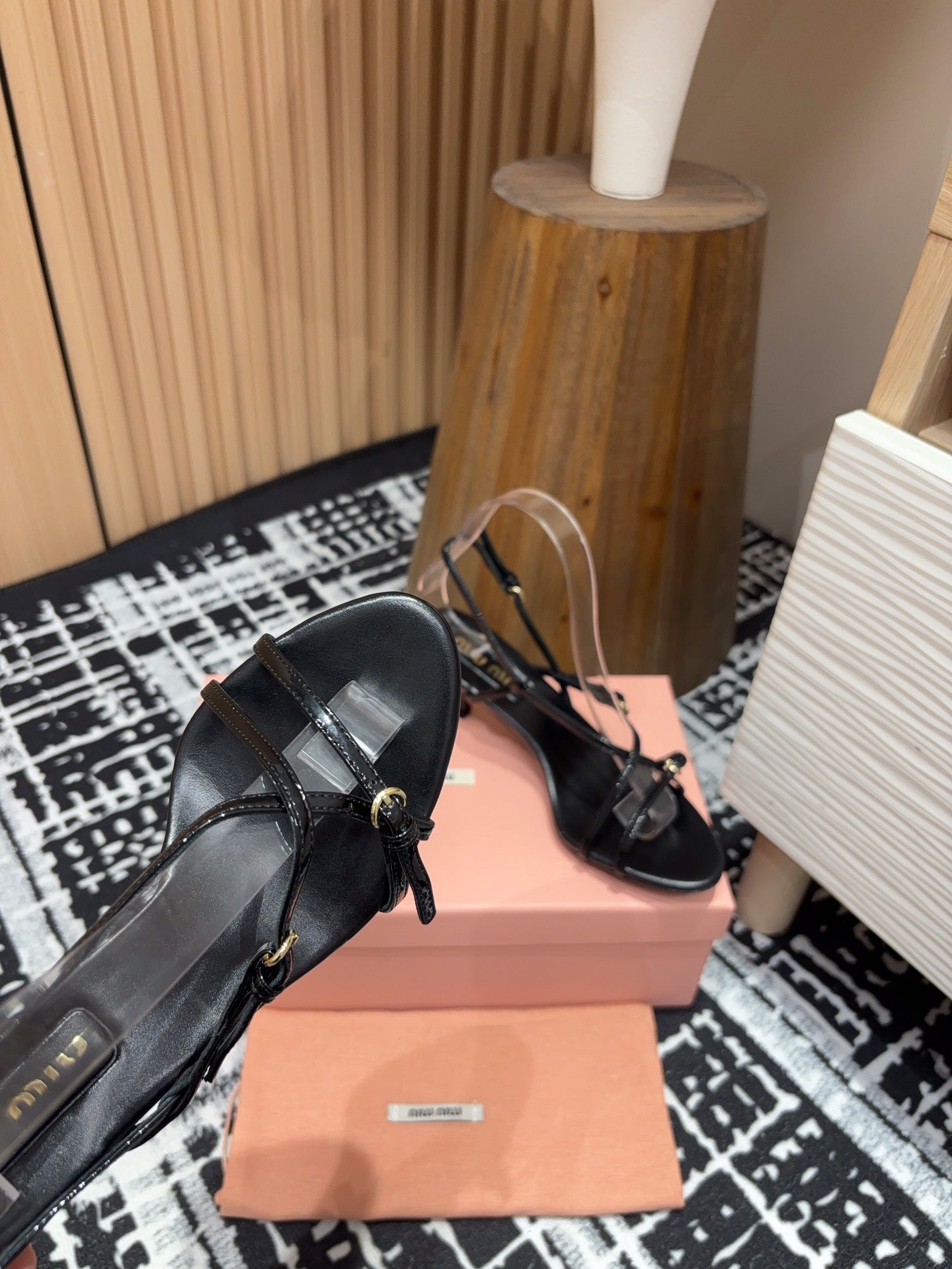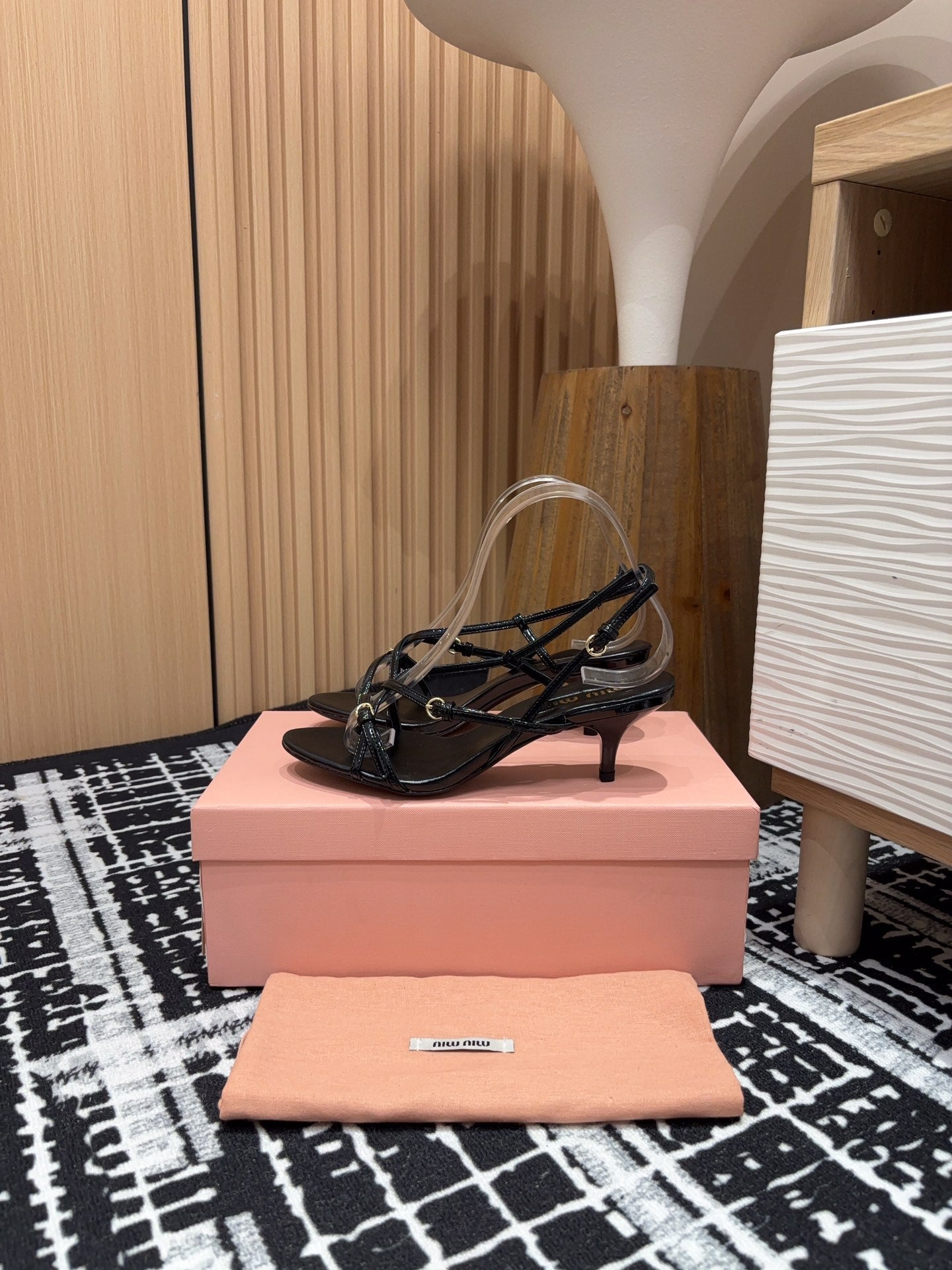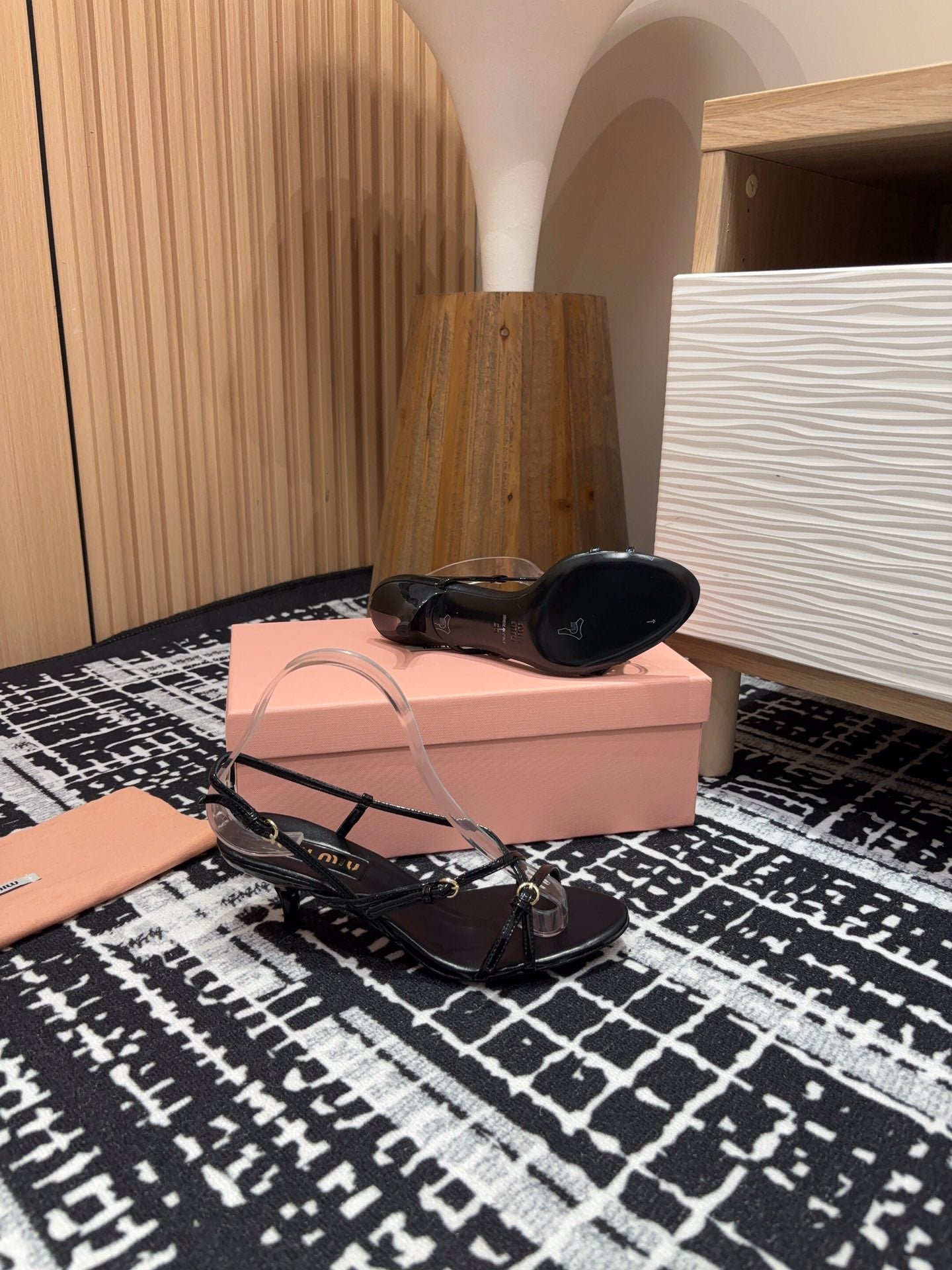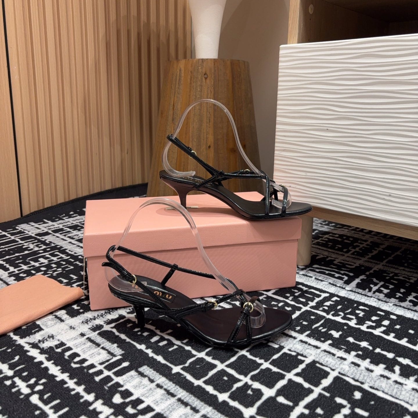 STRAP HIGH HEEL SANDALS IN BLACK SHINY LAMBSKIN