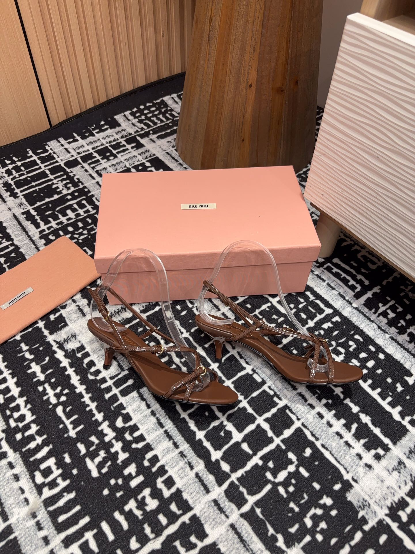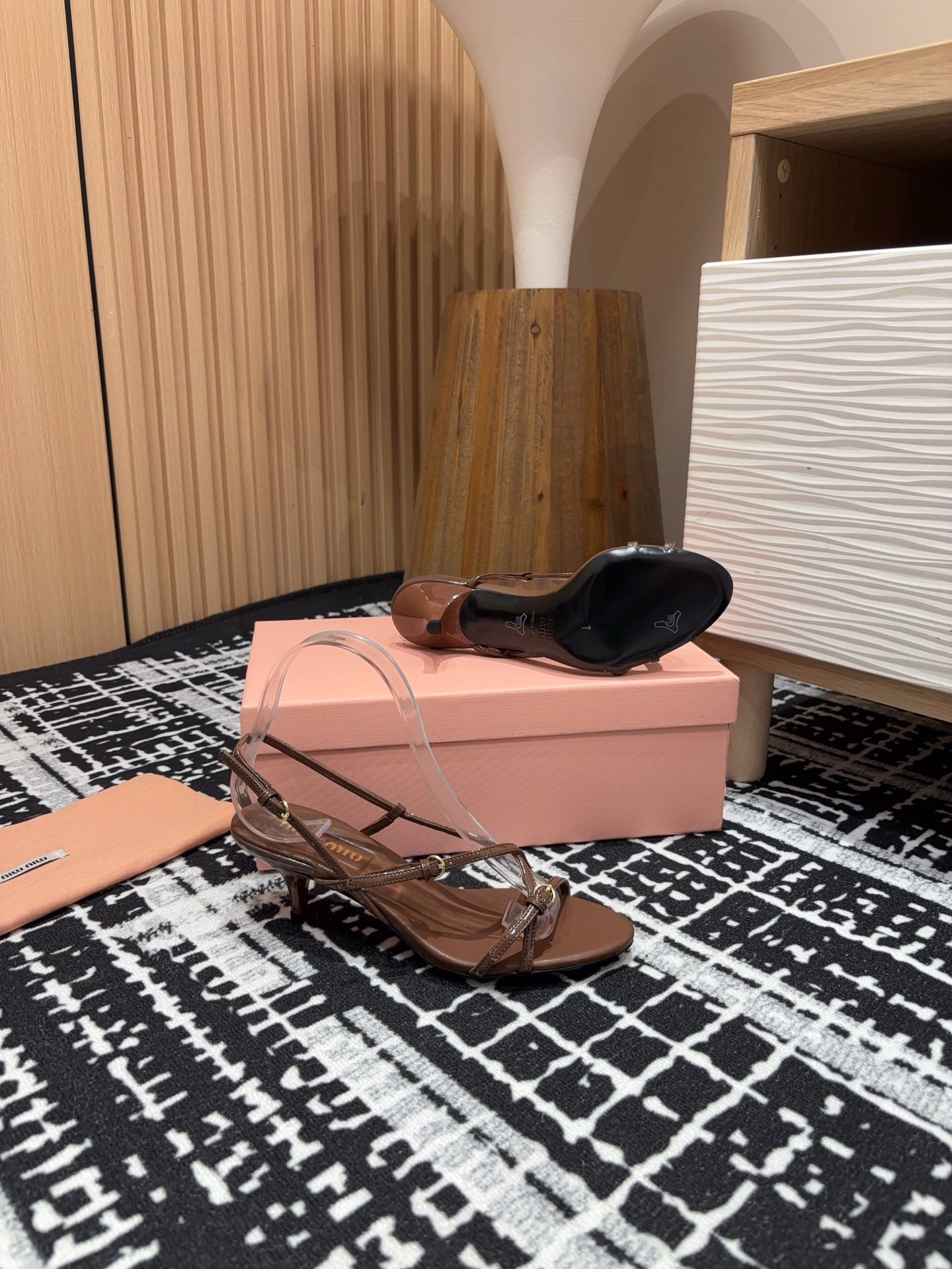 STRAP HIGH HEEL SANDALS IN CHOCOLATE SHINY LAMBSKIN