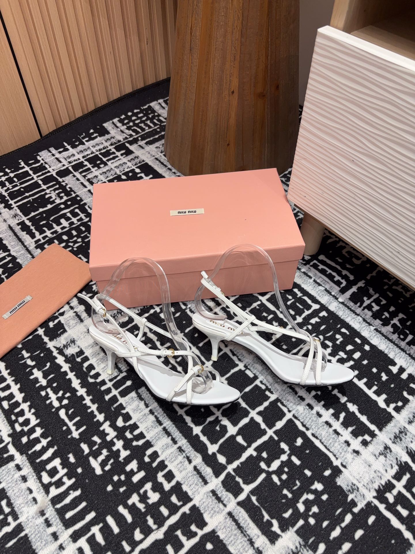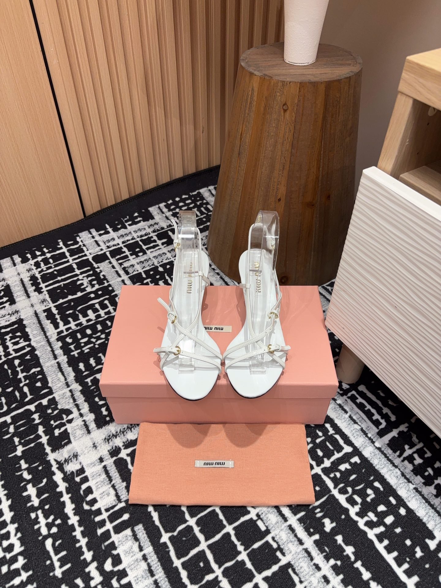 STRAP HIGH HEEL SANDALS IN WHITE SHINY LAMBSKIN