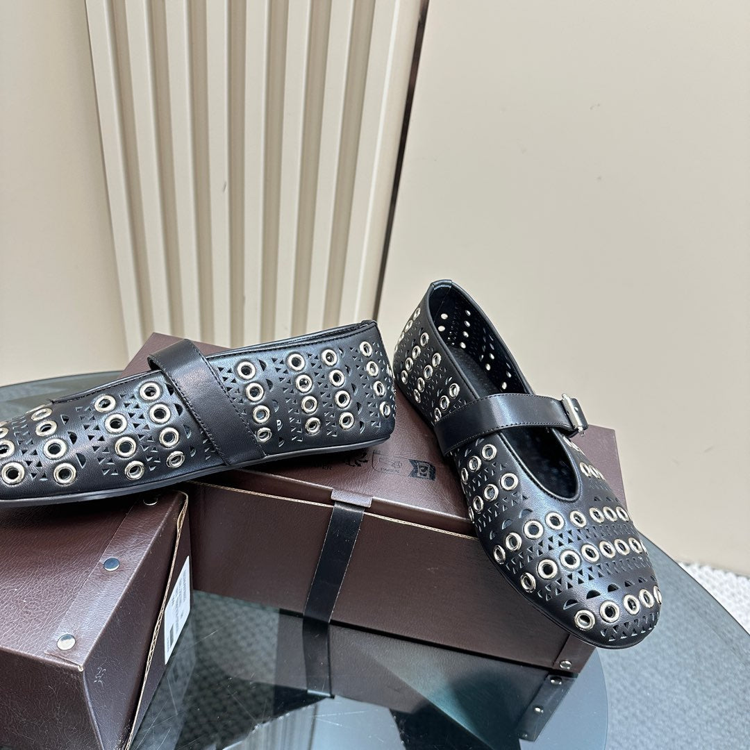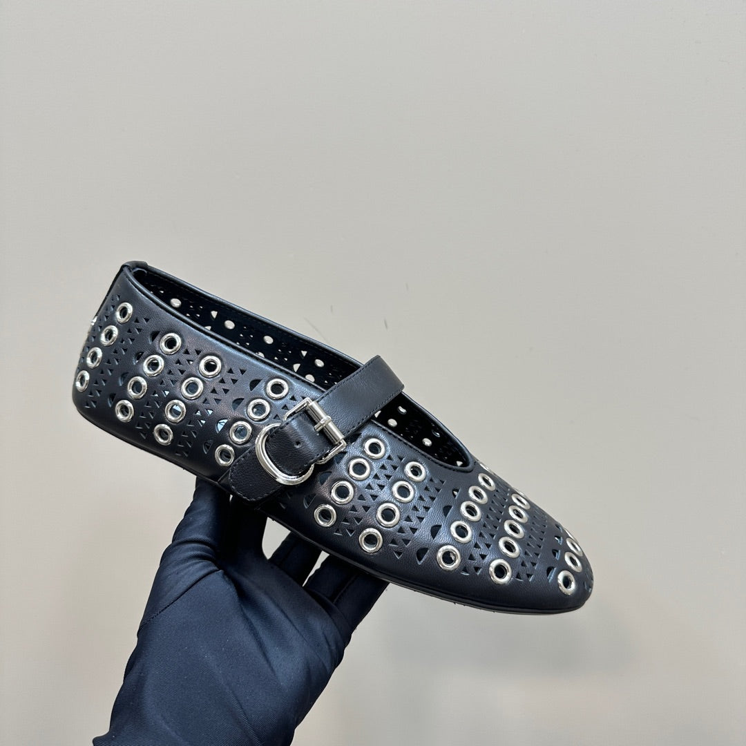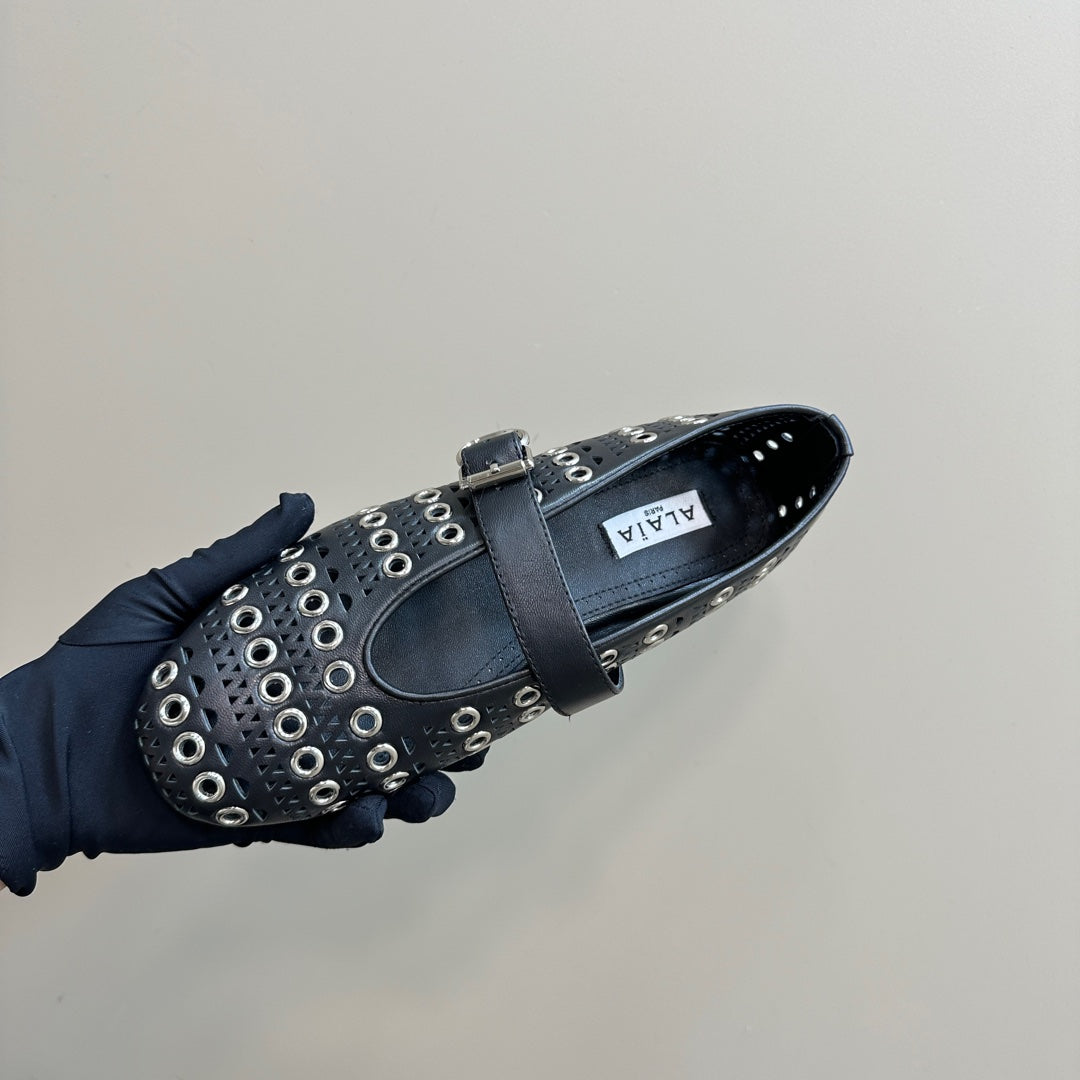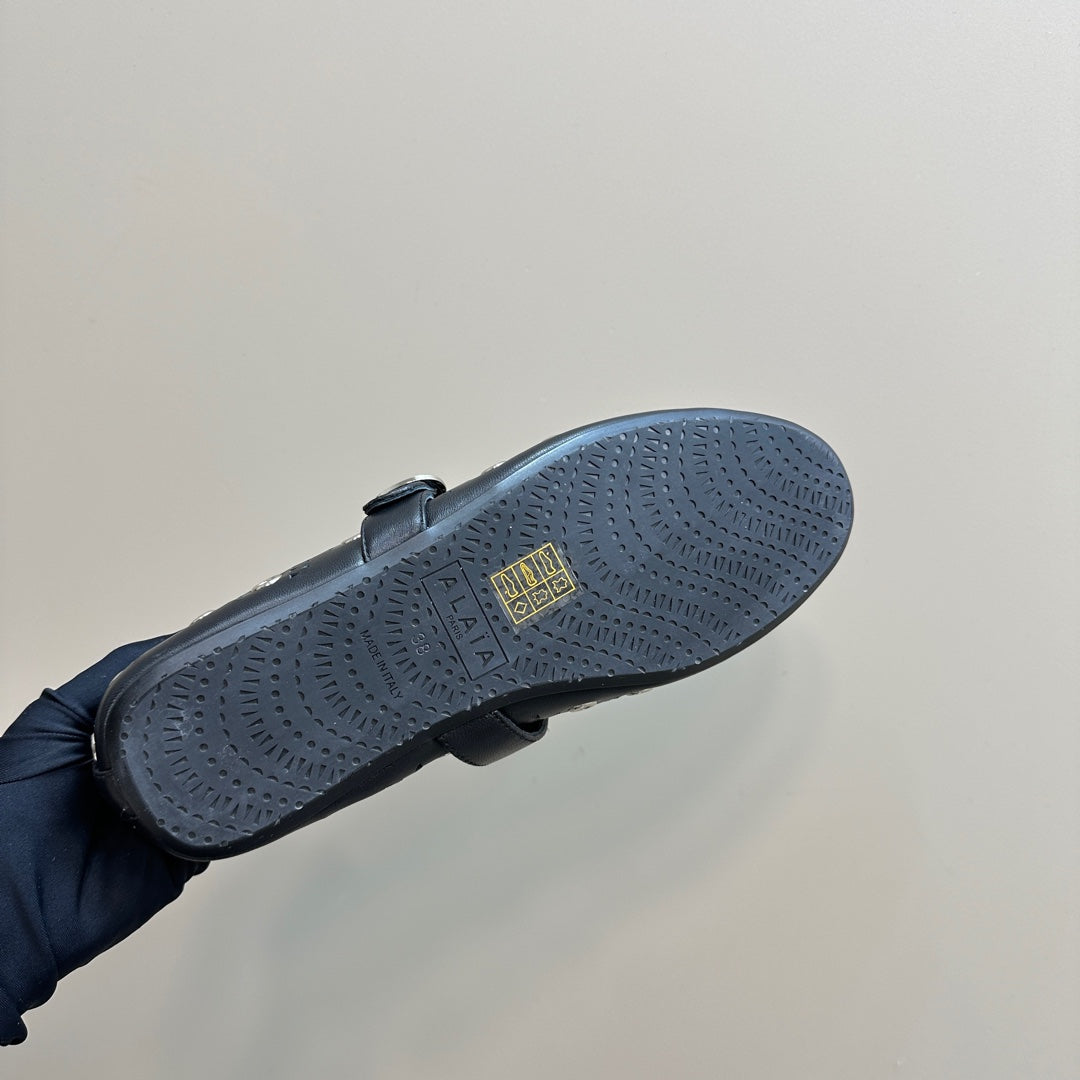 STRASS BALLET FLATS IN BLACK CALFSKIN