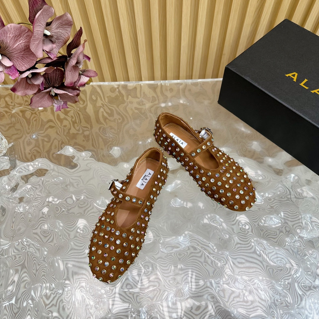 STRASS SUEDE BALLET FLATS CIDER BROWN
