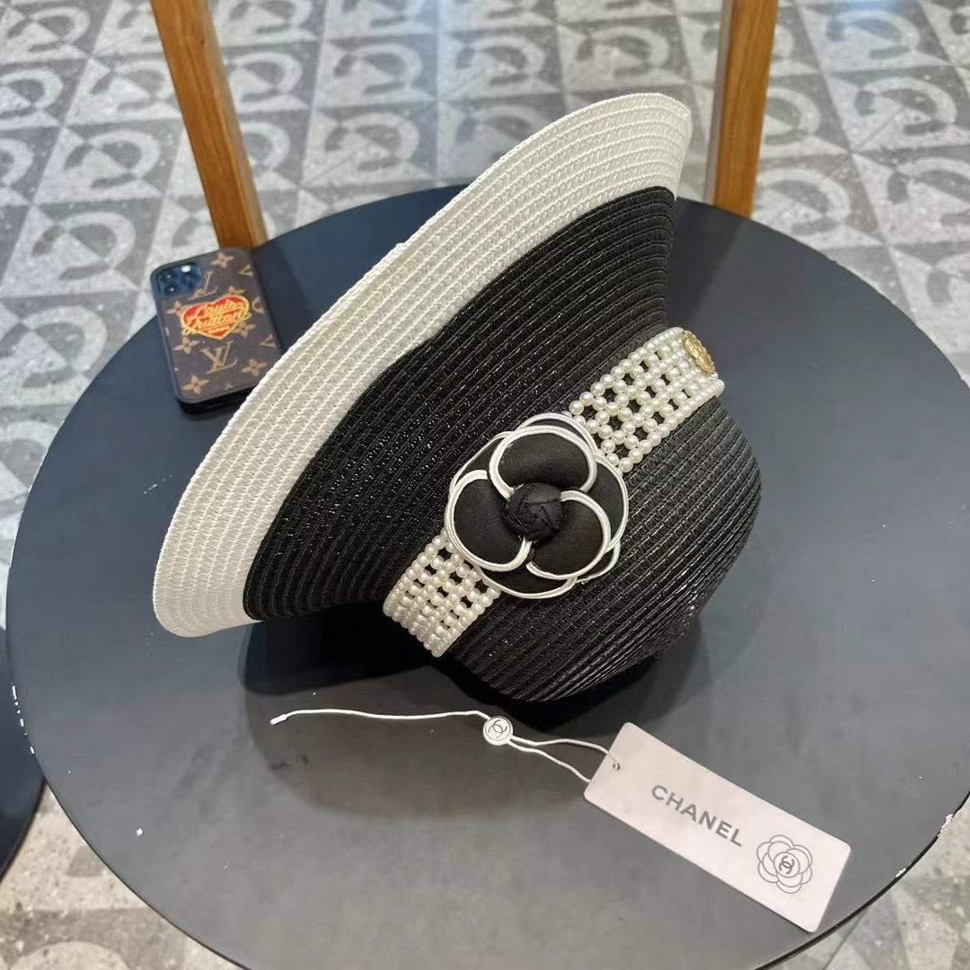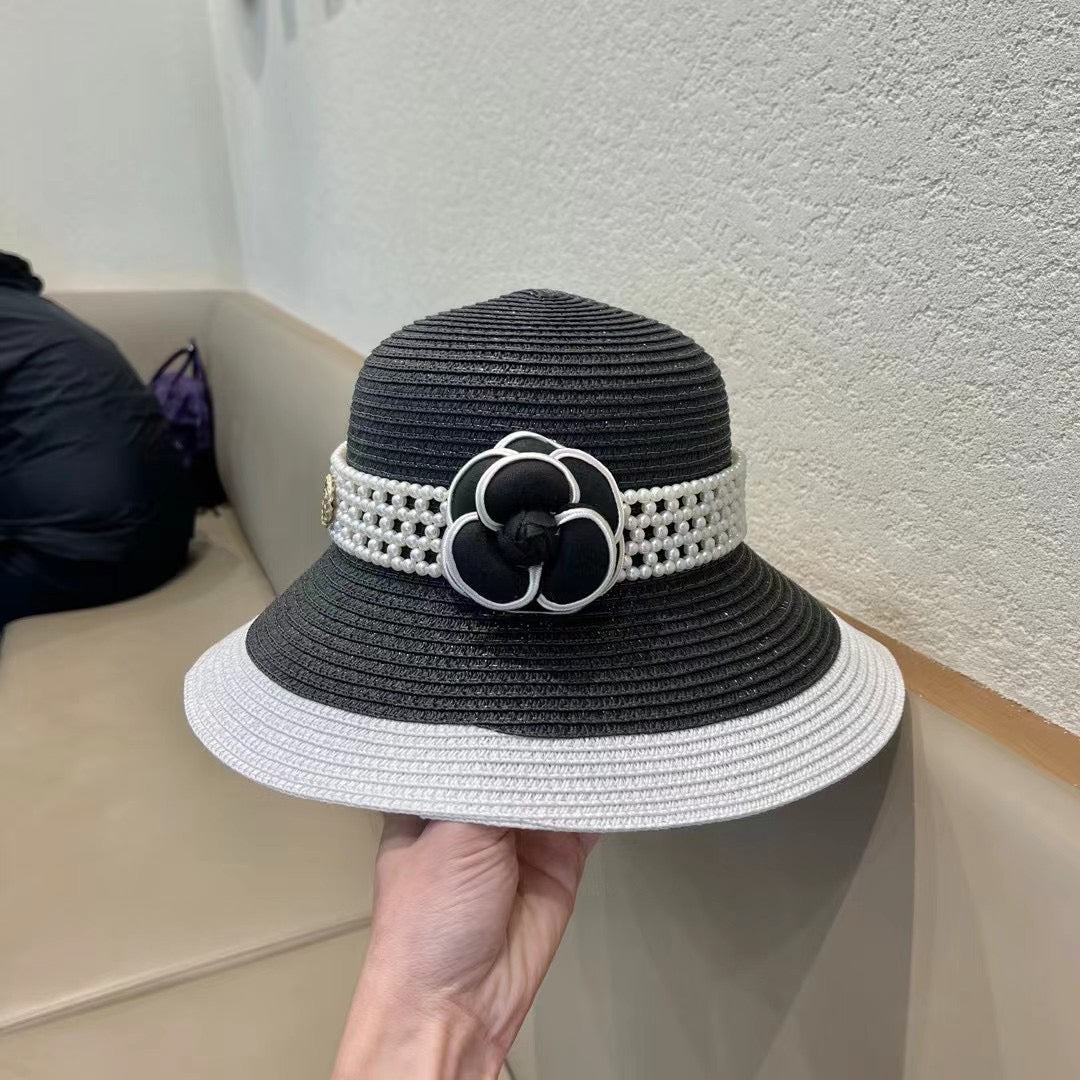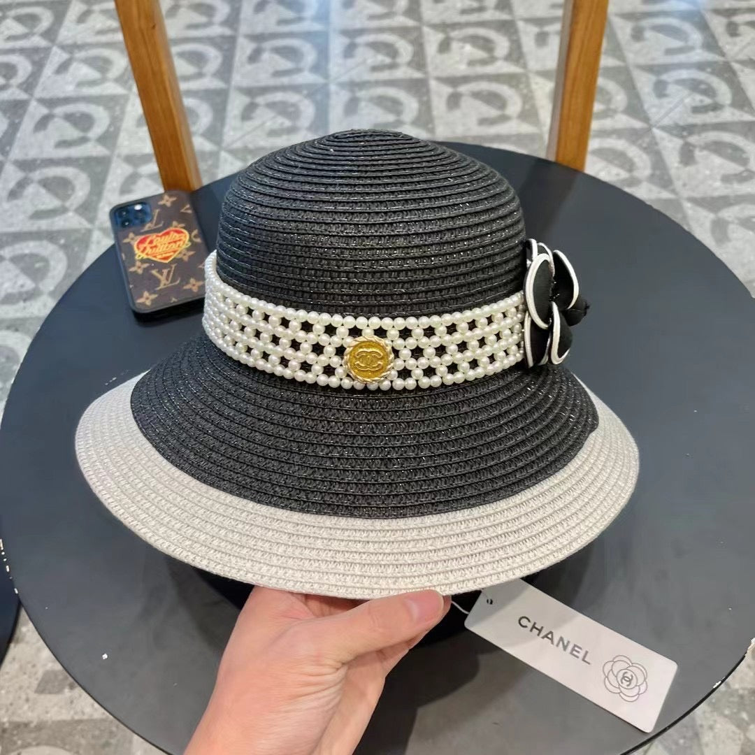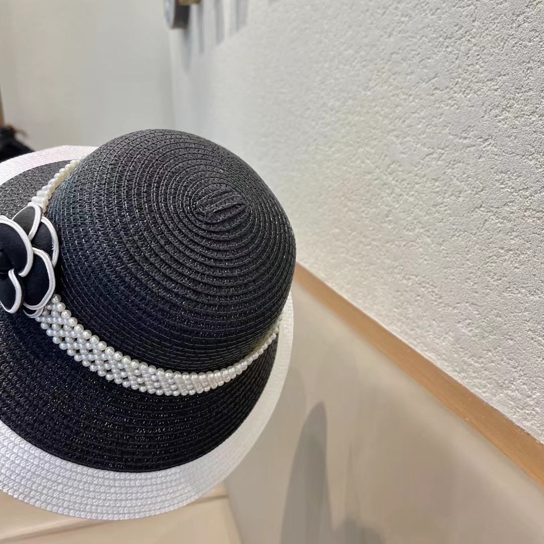 STRAW BUCKET HAT BLACK WITH PEARLS 672762