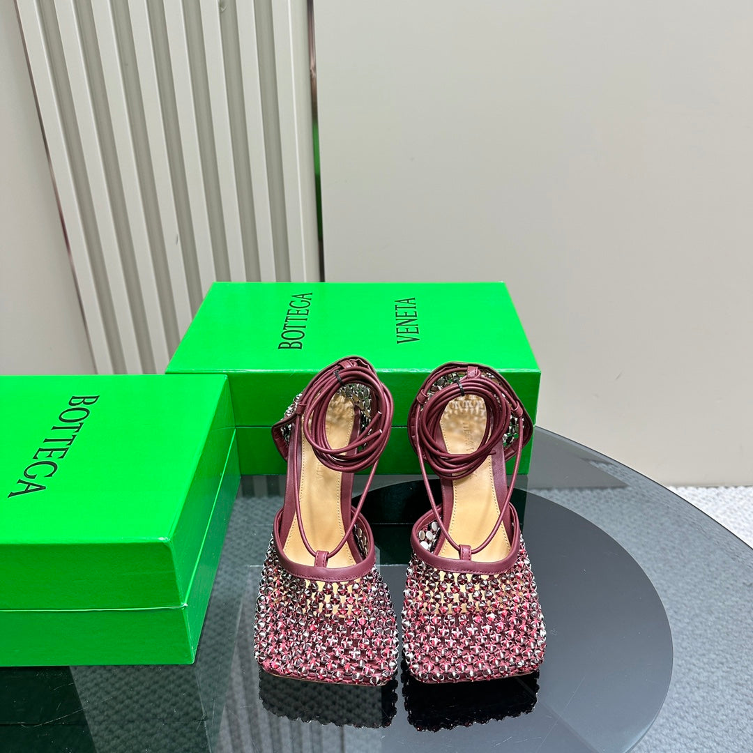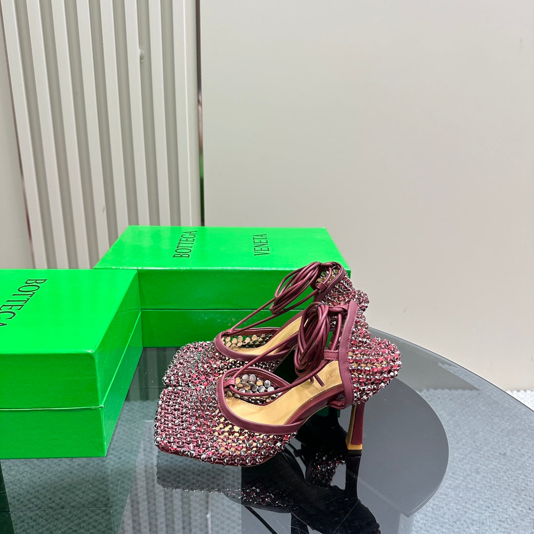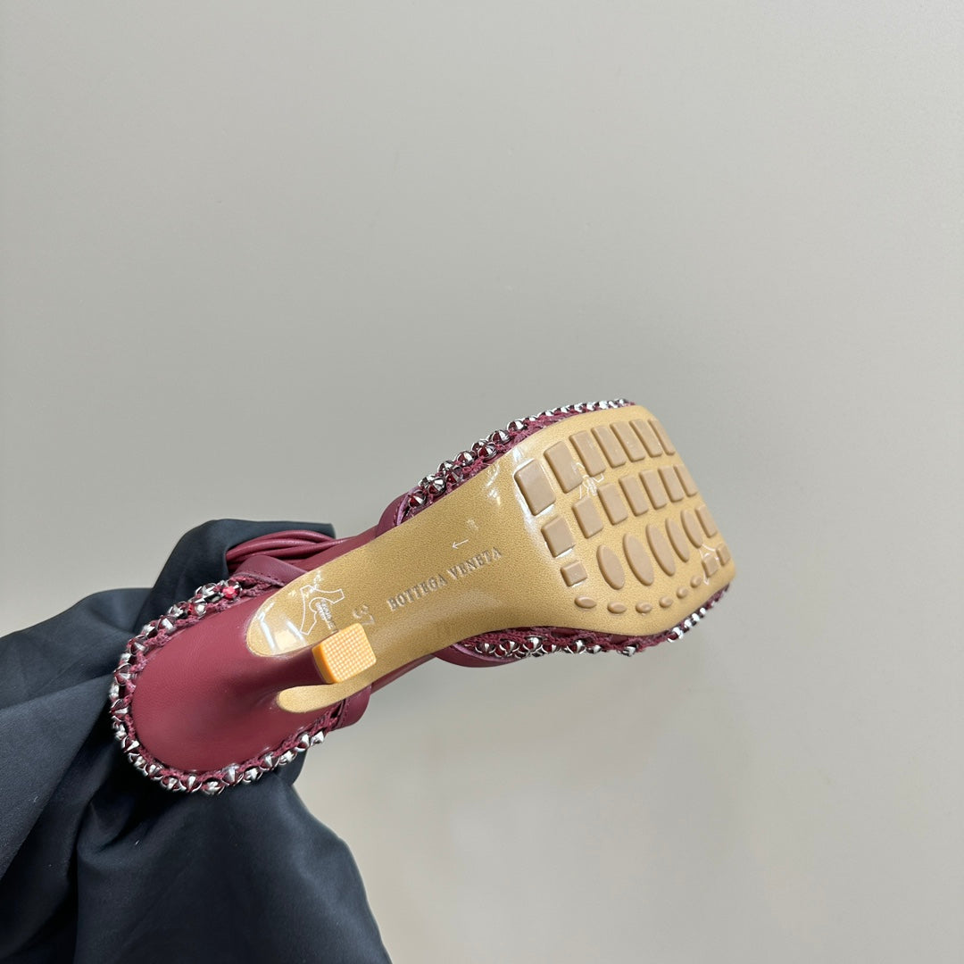 STRETCH HIGH HEELS 9 CM IN SANGRIA RED METALLIZE MESH AND LEATHER WITH CRYSTAL