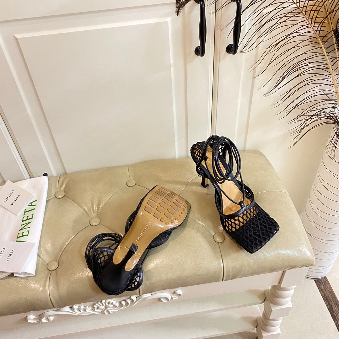 STRETCH LACE-UP SANDAL IN BLACK METALLIZED MESH AND LEATHER 9 CM
