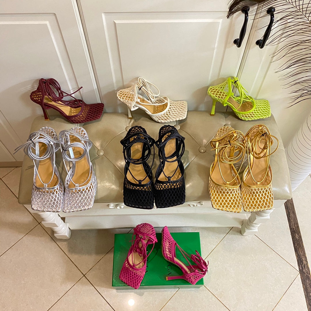 STRETCH LACE-UP SANDAL IN WINE RED METALLIZED MESH AND LEATHER 9 CM