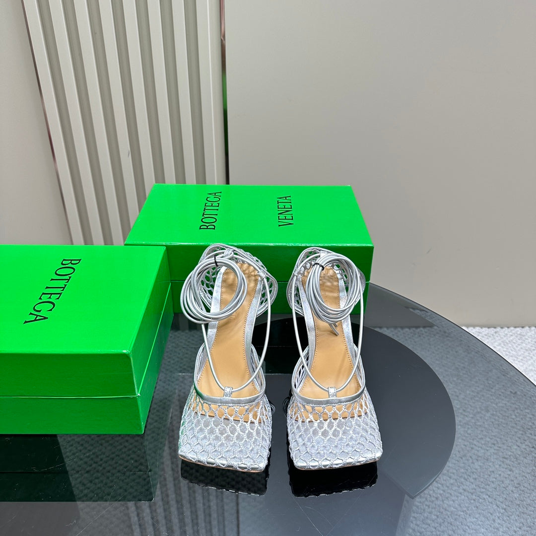 STRETCH HIGH HEELS 9 CM IN SILVER METALLIZE MESH AND LEATHER