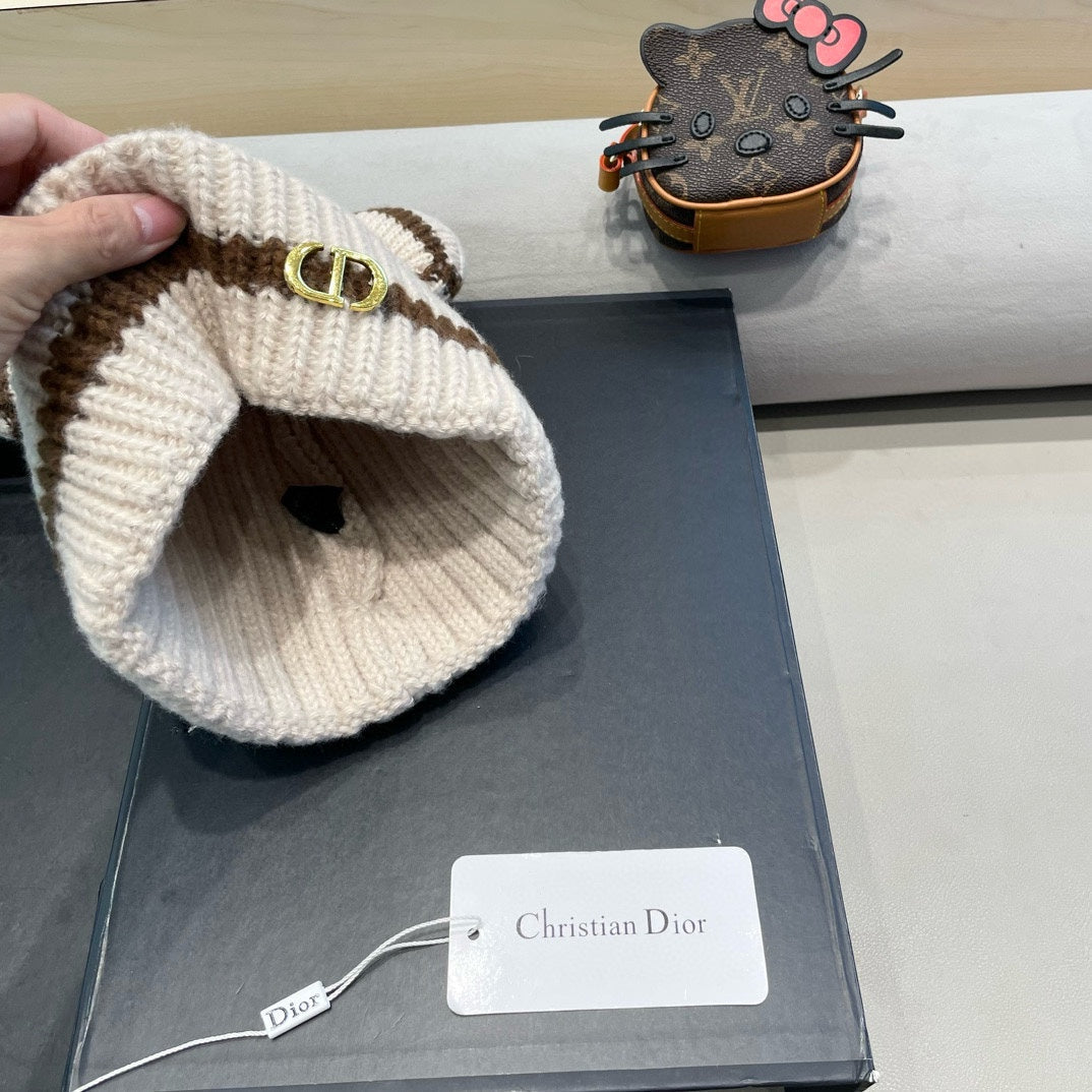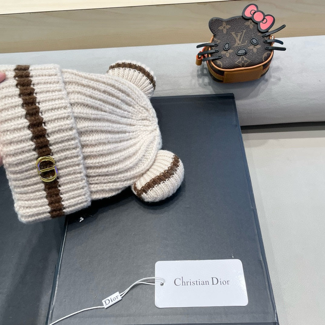 STRIPED BEANIE HAT WITH CUTE BEAR EARS IN BEIGE WOOL 433437