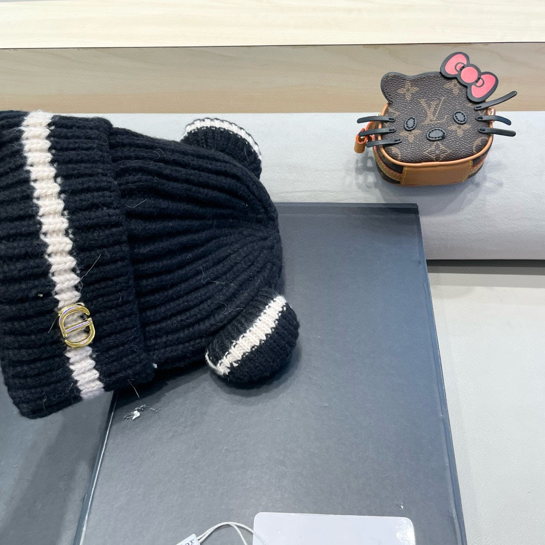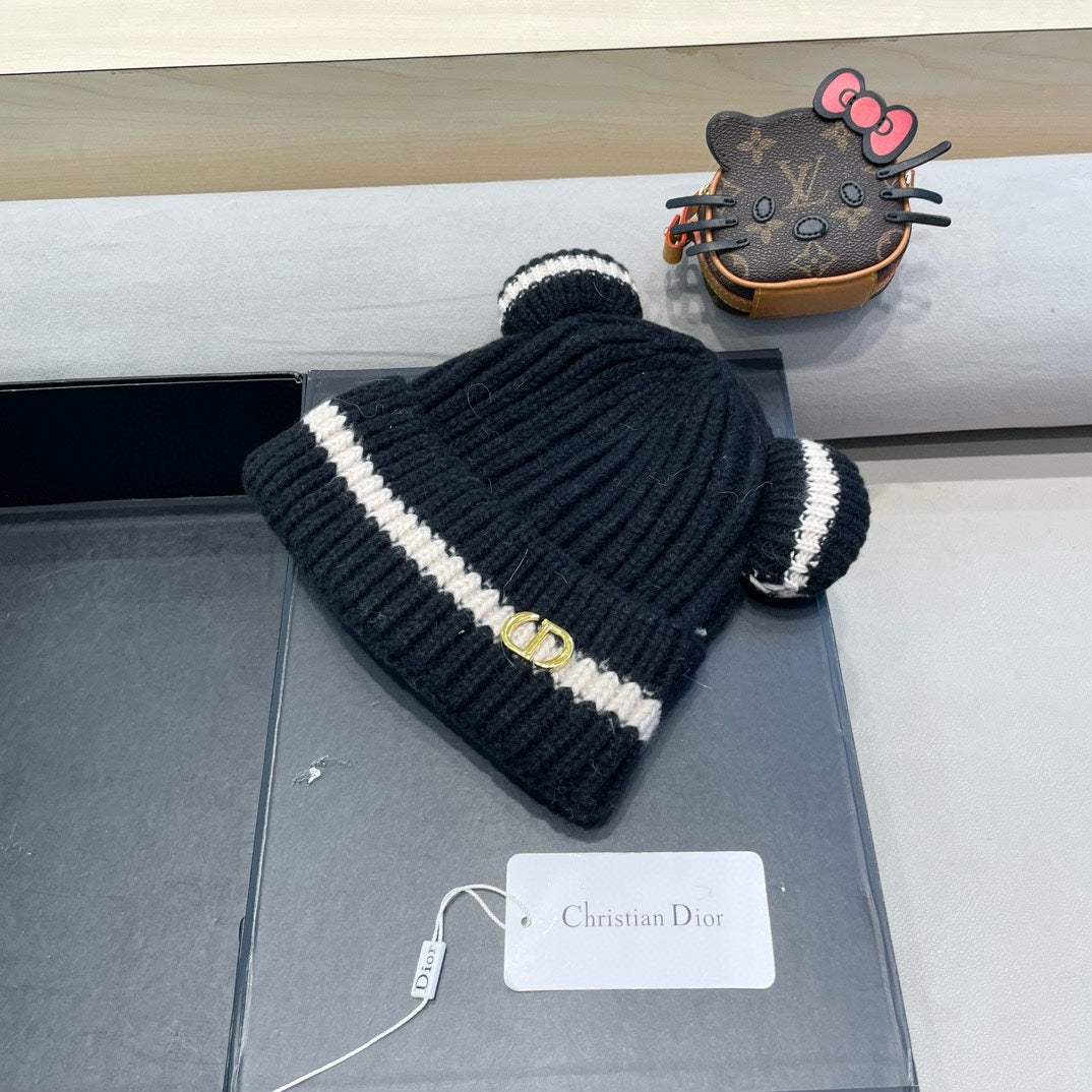 STRIPED BEANIE HAT WITH CUTE BEAR EARS IN BLACK WOOL 433438