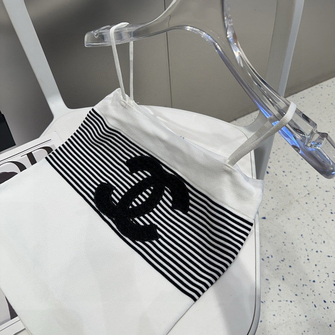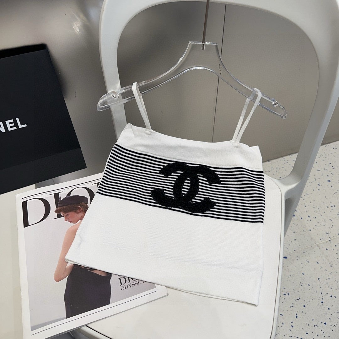 STRIPED CAMISOLE 610344 IN BLACK AND WHITE COTTON RIBBED
