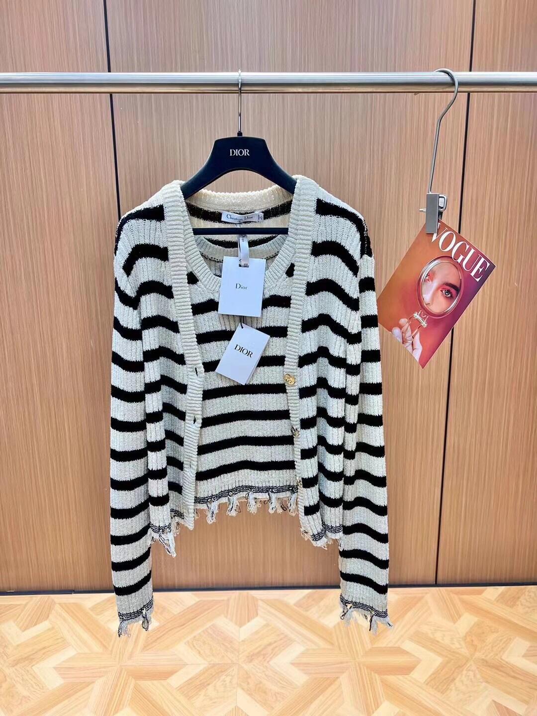 Striped knitted Beige Black Cardigan