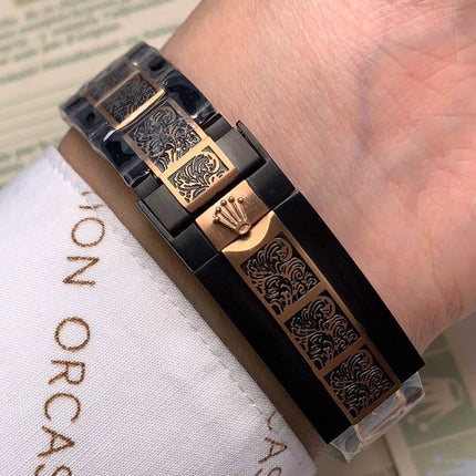 SUBMARINER DATE 40 CUSTOM GOLD BLACK HAND ENGRAVED