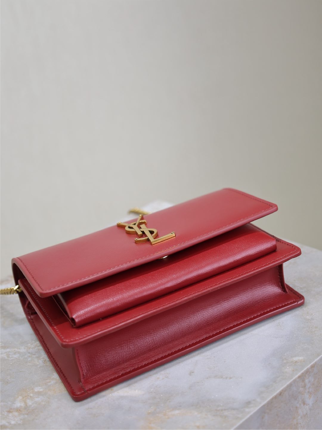 SUNSET SMALL BAG 19 IN RED CALFSKIN COPPER HARDWARE