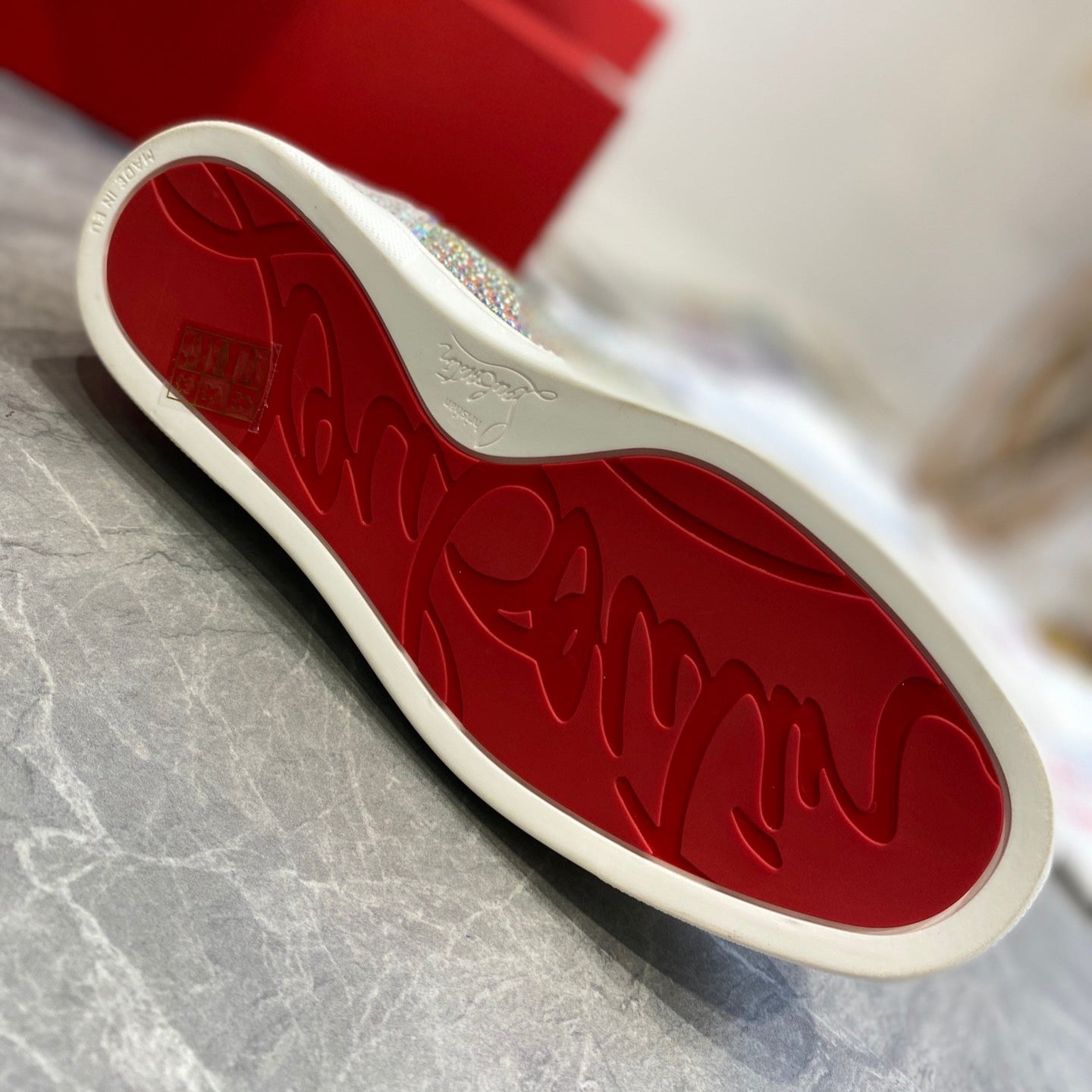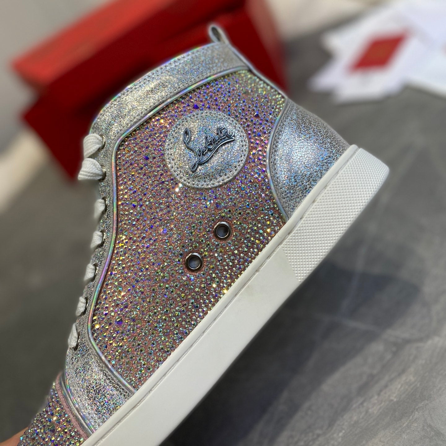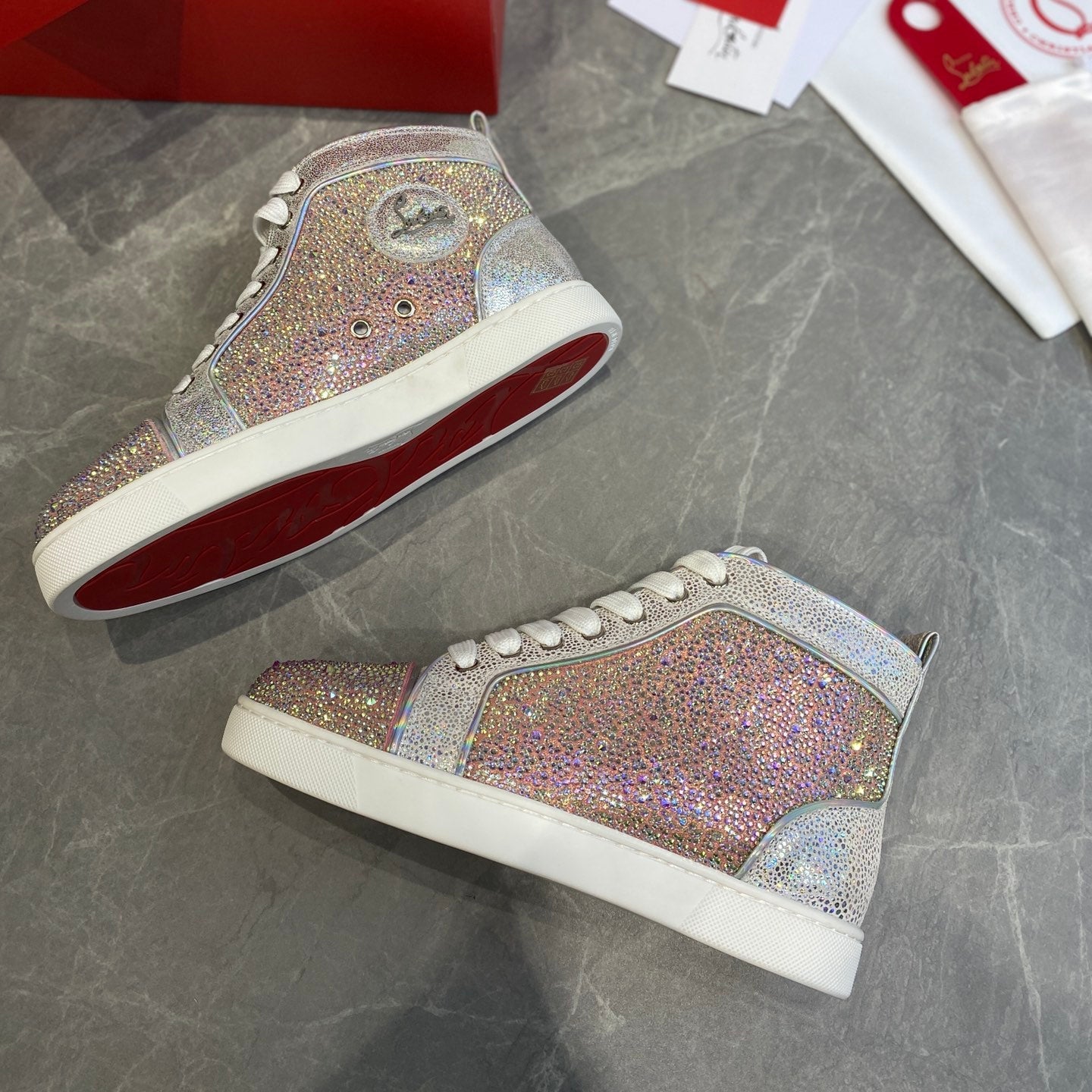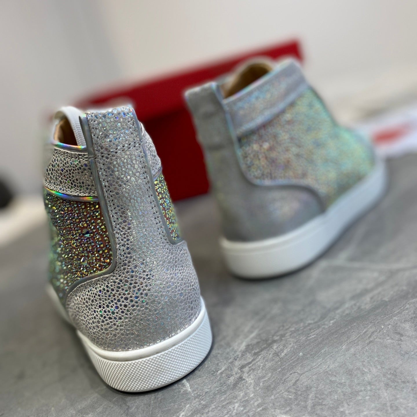 SUPER LOUIS STRASS STUDDED HIGH-TOP SNEAKERS IN SILVER AND PINK CALFSKIN