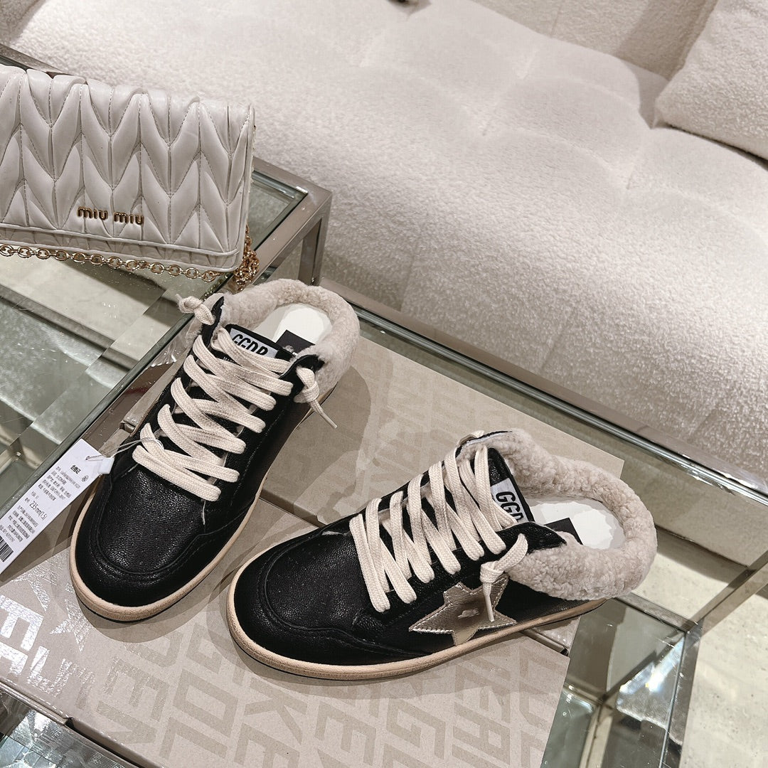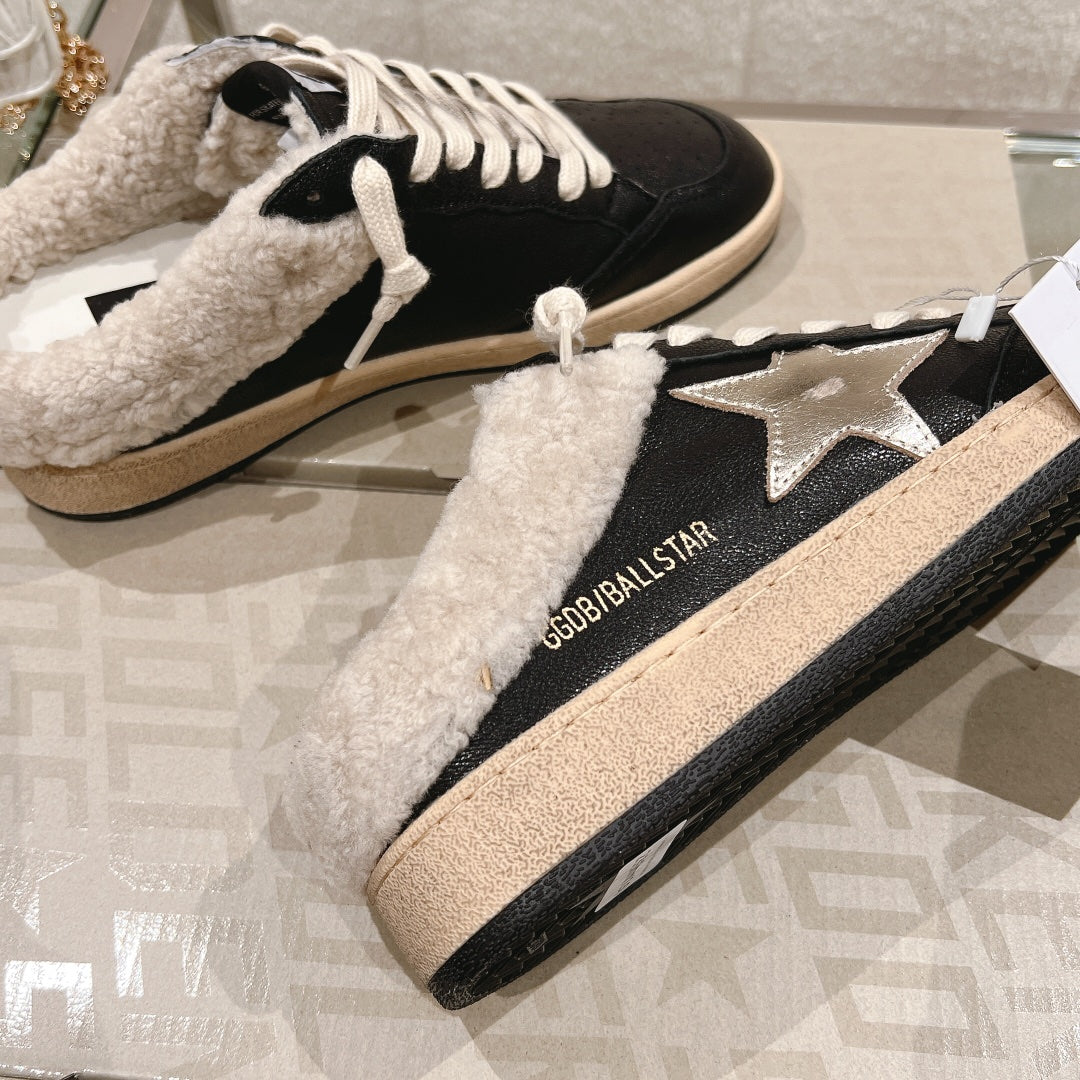 SUPER-STAR SABOTS IN BLACK SHINY CALFSKIN SILVER STAR