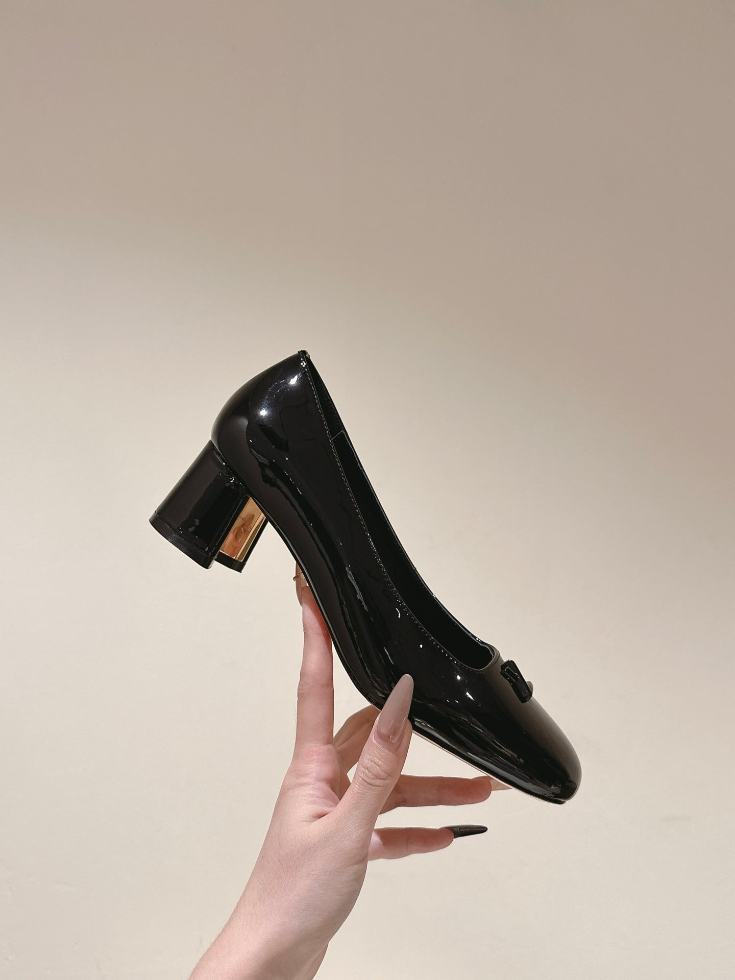SWING HIGH PUMP 55 MM IN BLACK PATENT CALFSKIN