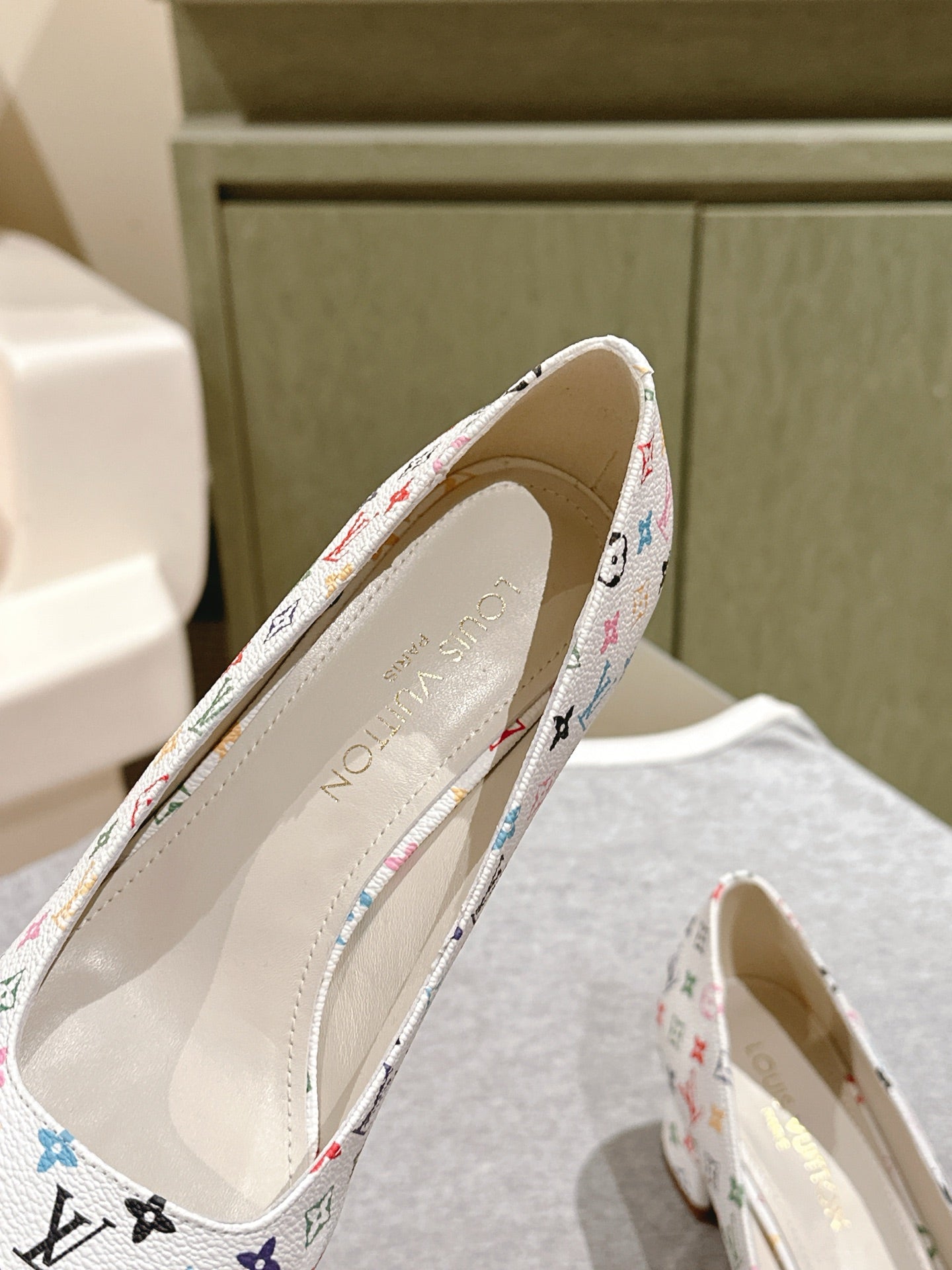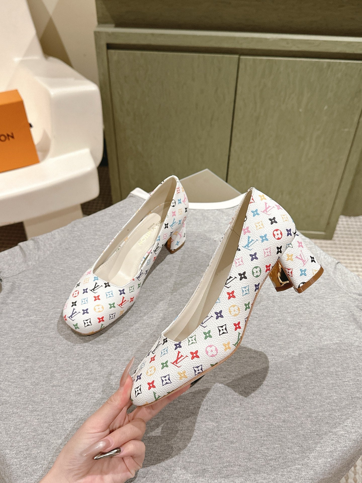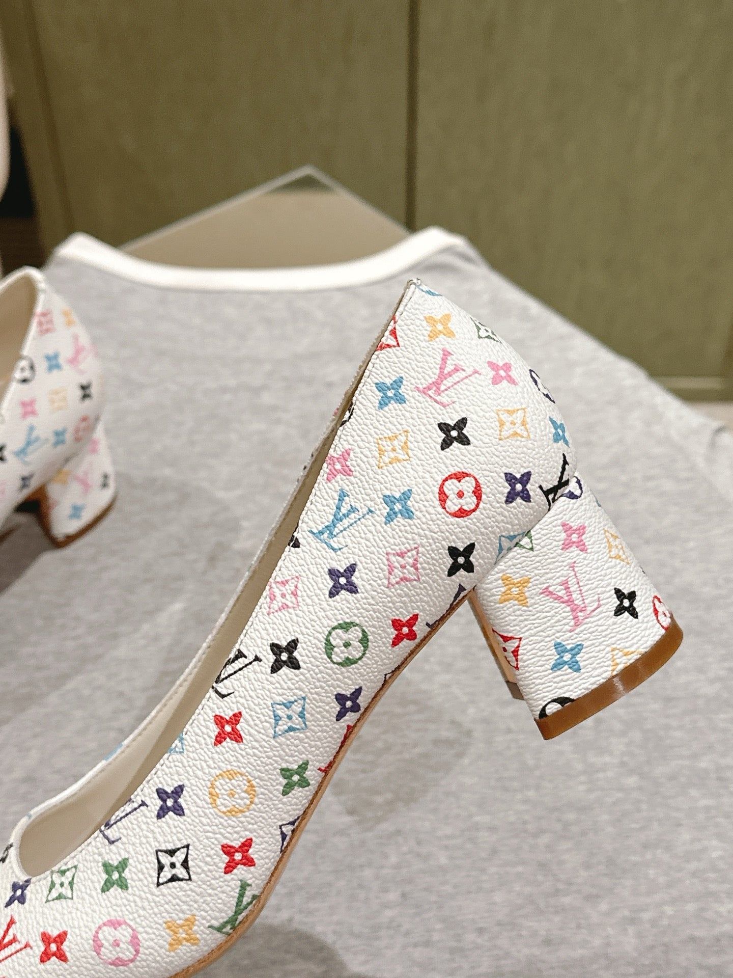 SWING HIGH PUMP 55 MM IN WHITE MONOGRAM CALFSKIN