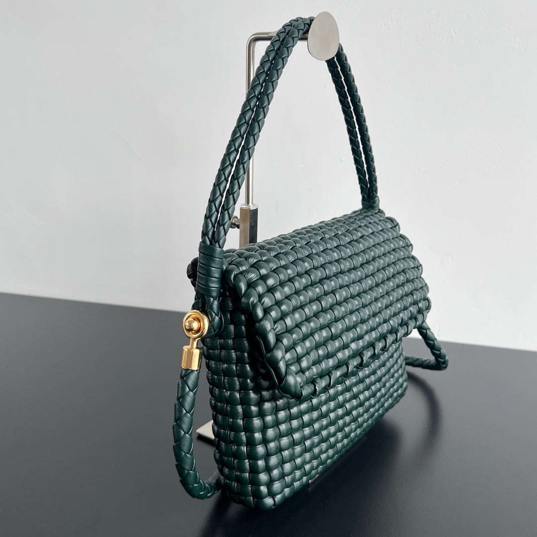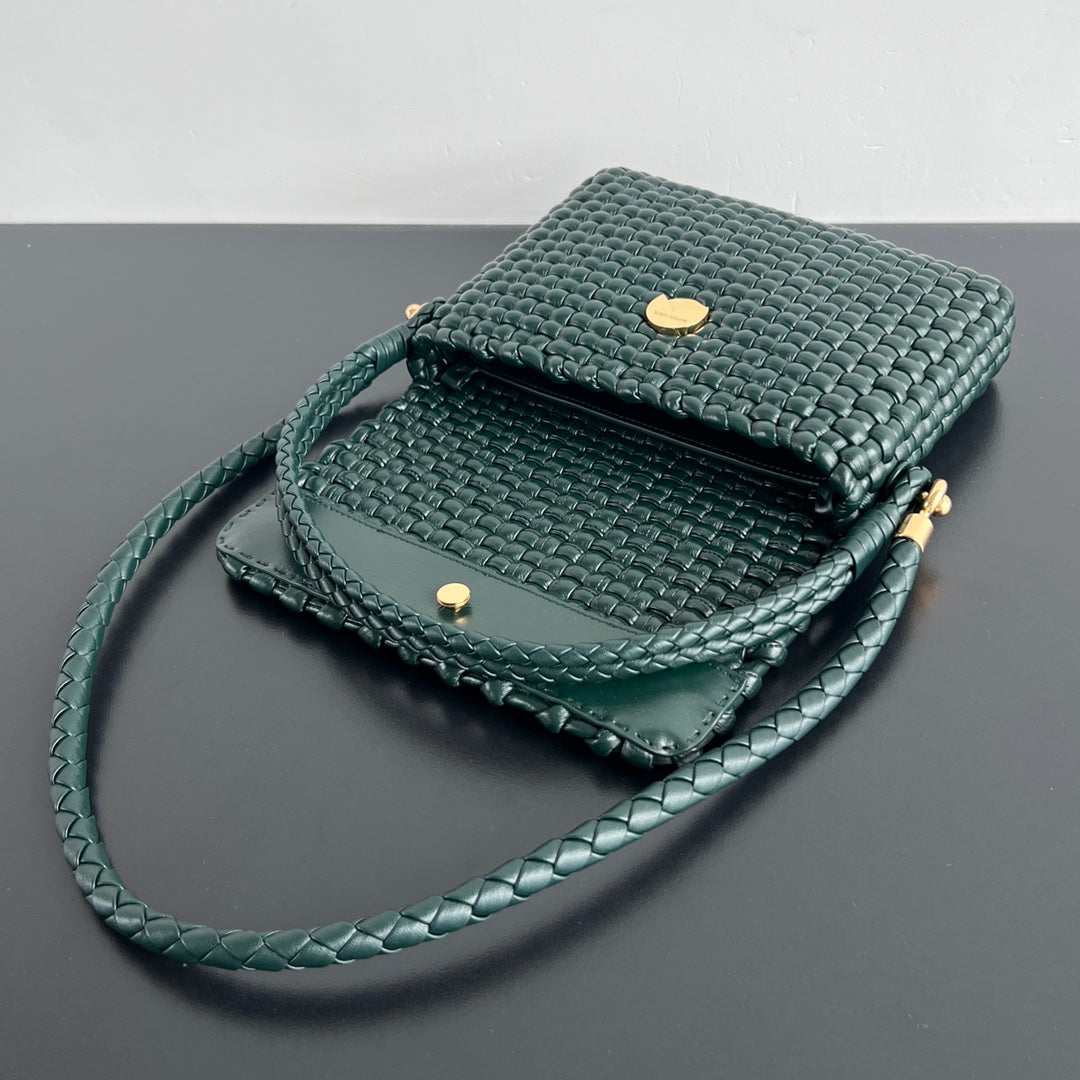 SWING MESSENGER 25 IN DARK GREEN LAMBSKIN GOLD HARDWARE
