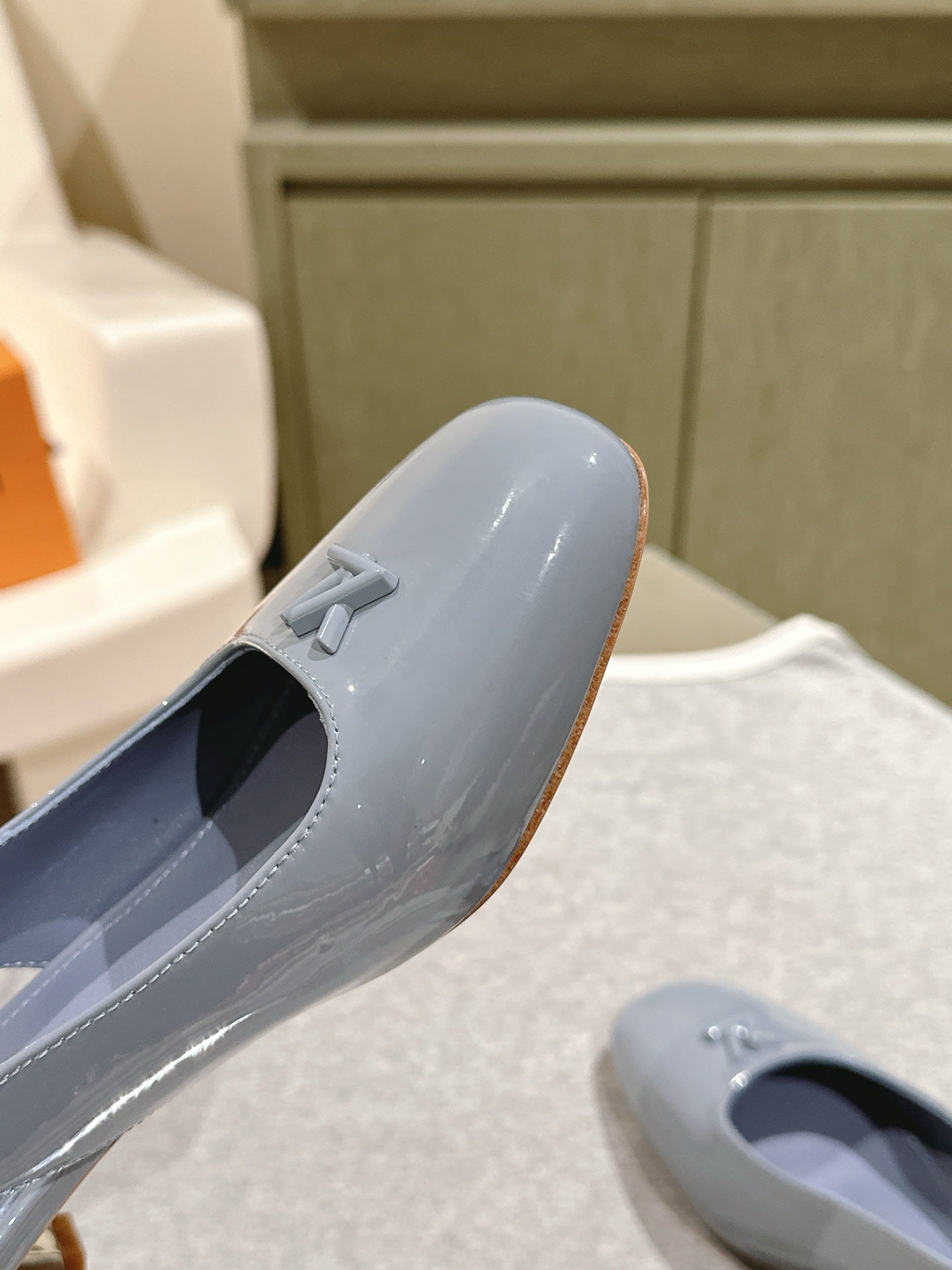 SWING SLINGBACK PUMP 55 MM IN ICE BLUE PATENT CALFSKIN