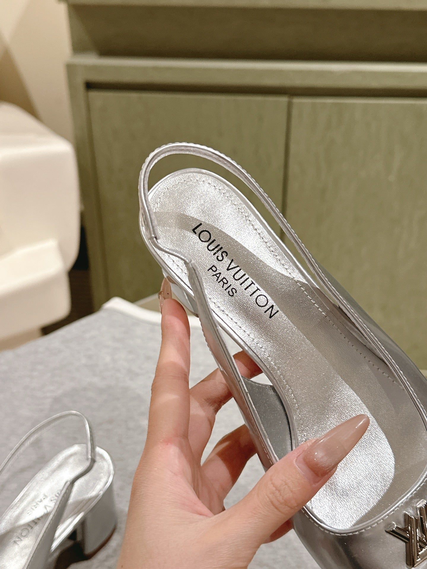 SWING SLINGBACK PUMP 55 MM IN SILVER CALFSKIN