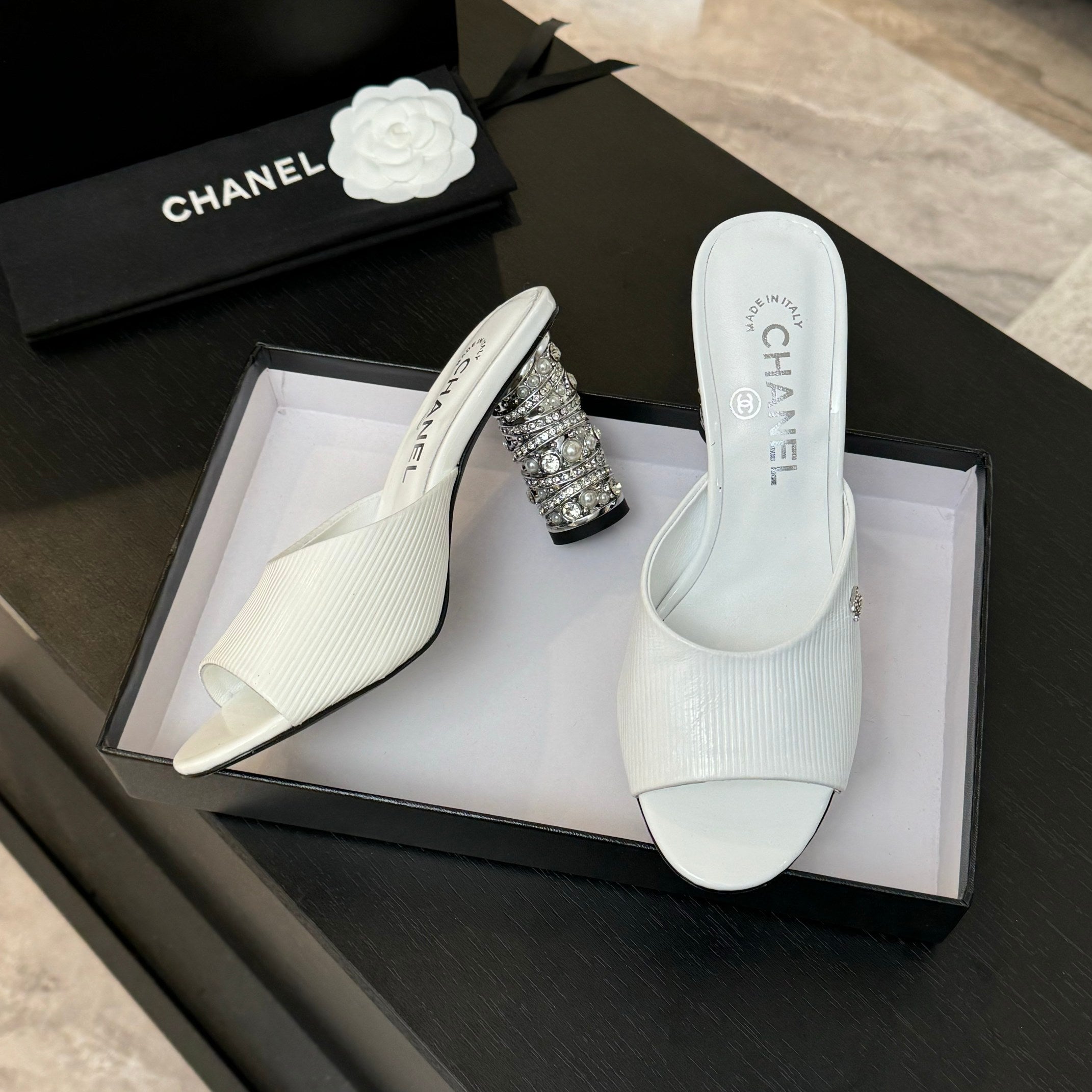 T-STRAP PEARL HEEL 85 MM SANDALS IN WHITE LAMBSKIN MULE