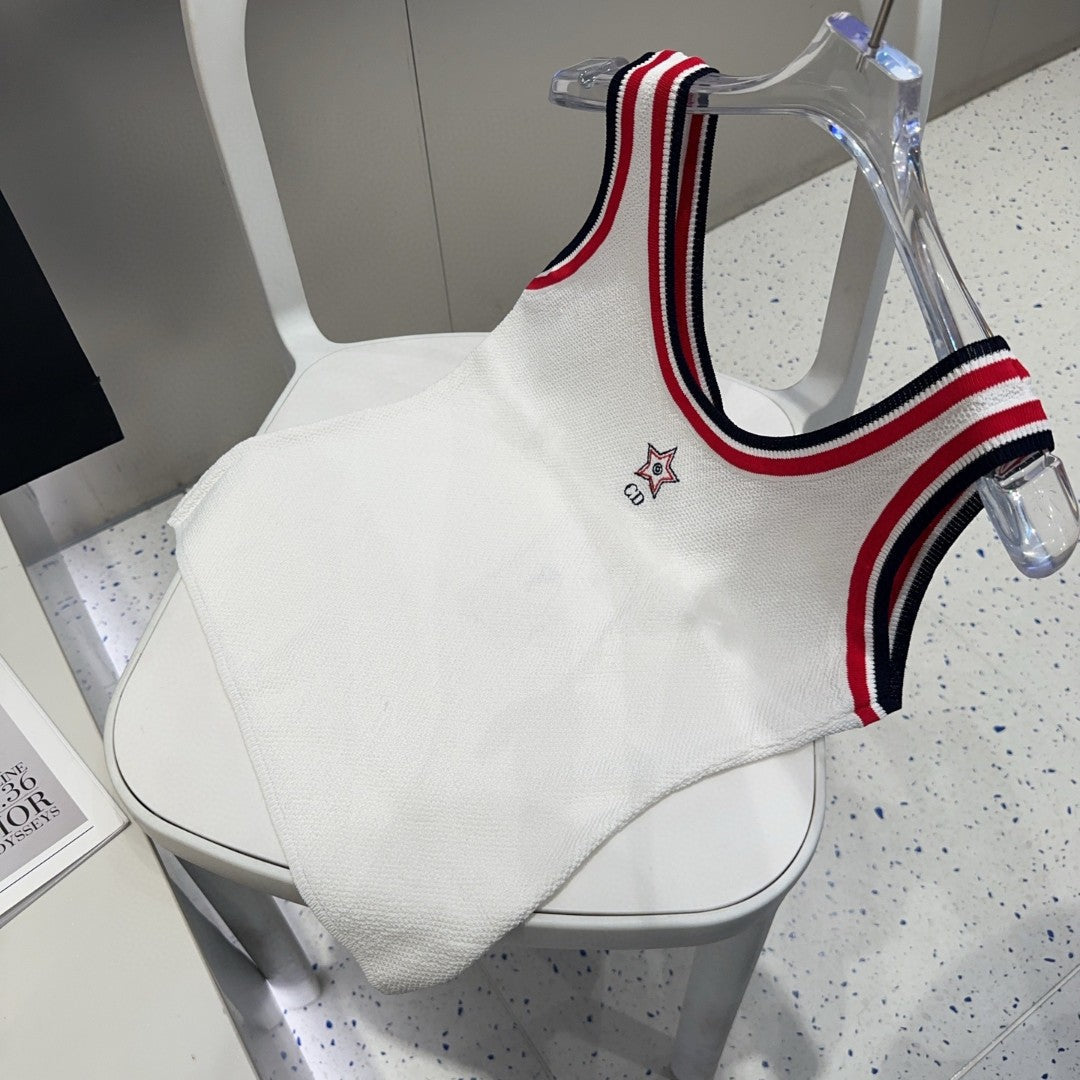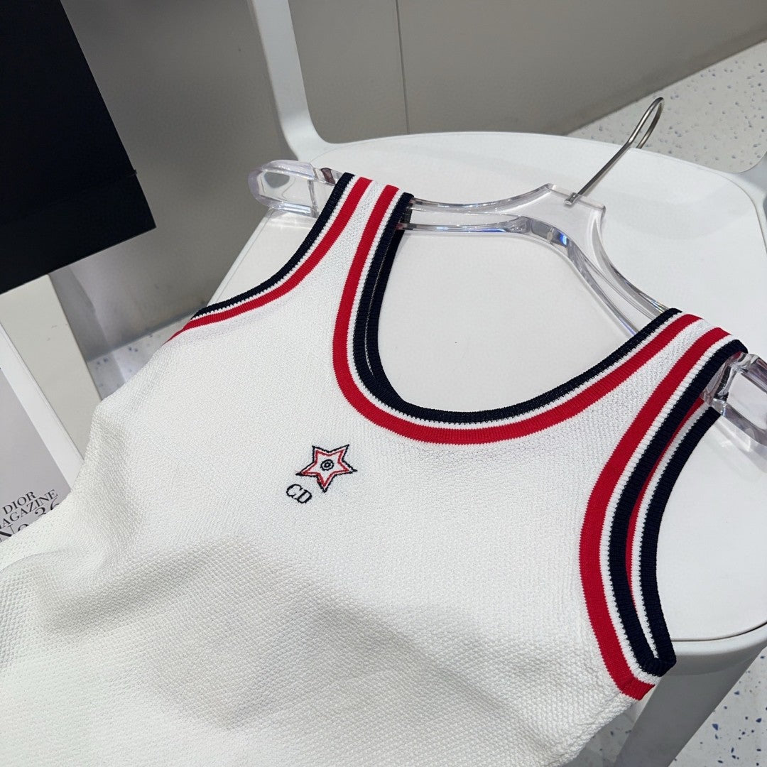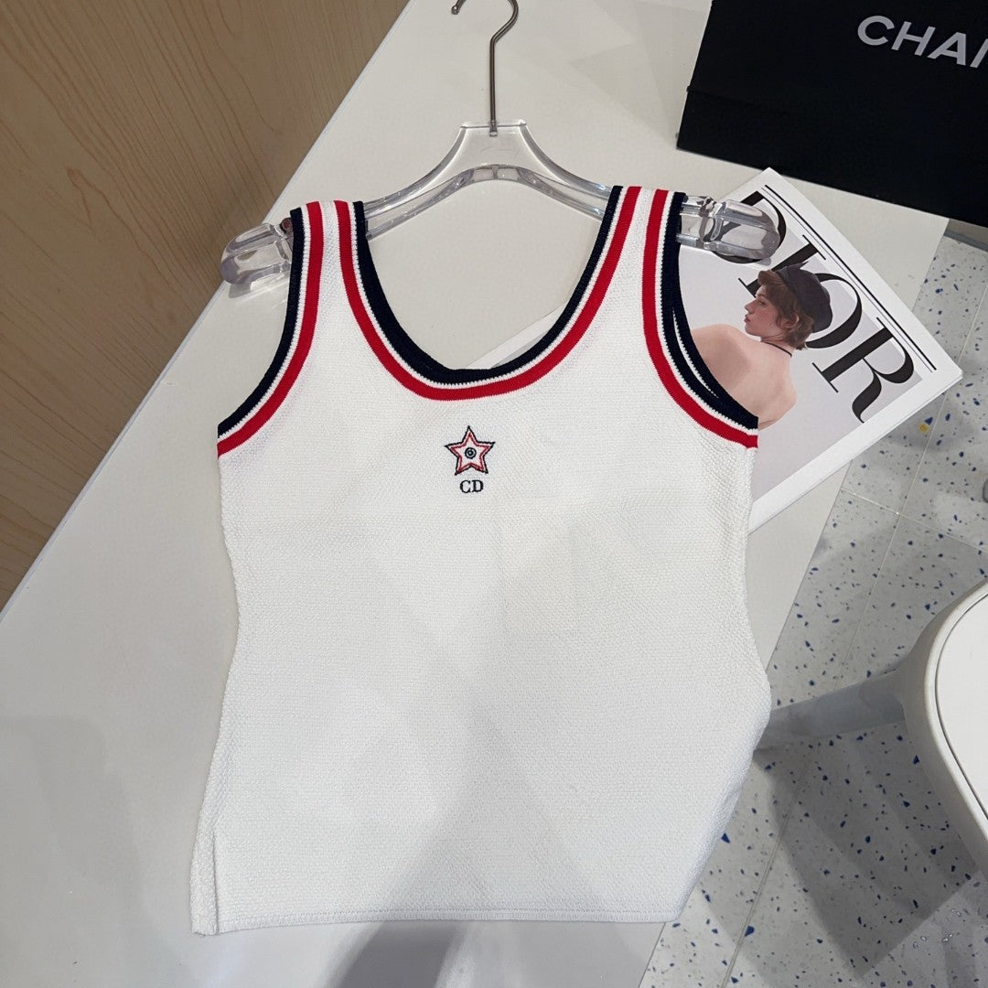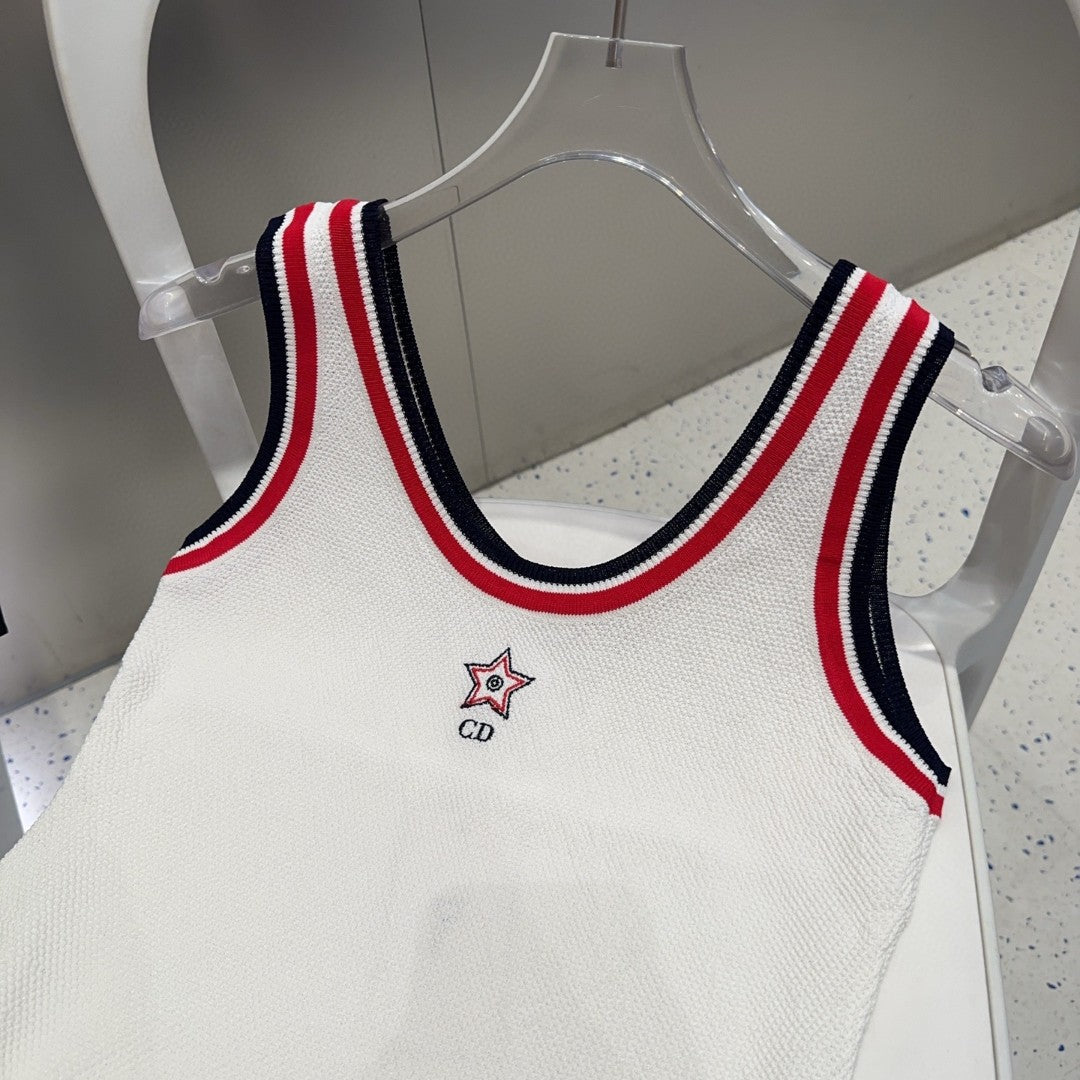 TANK TOP 610346 IN WHITE COTTON RIBBED RED TRIM