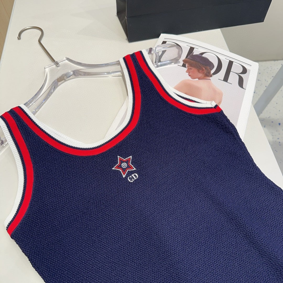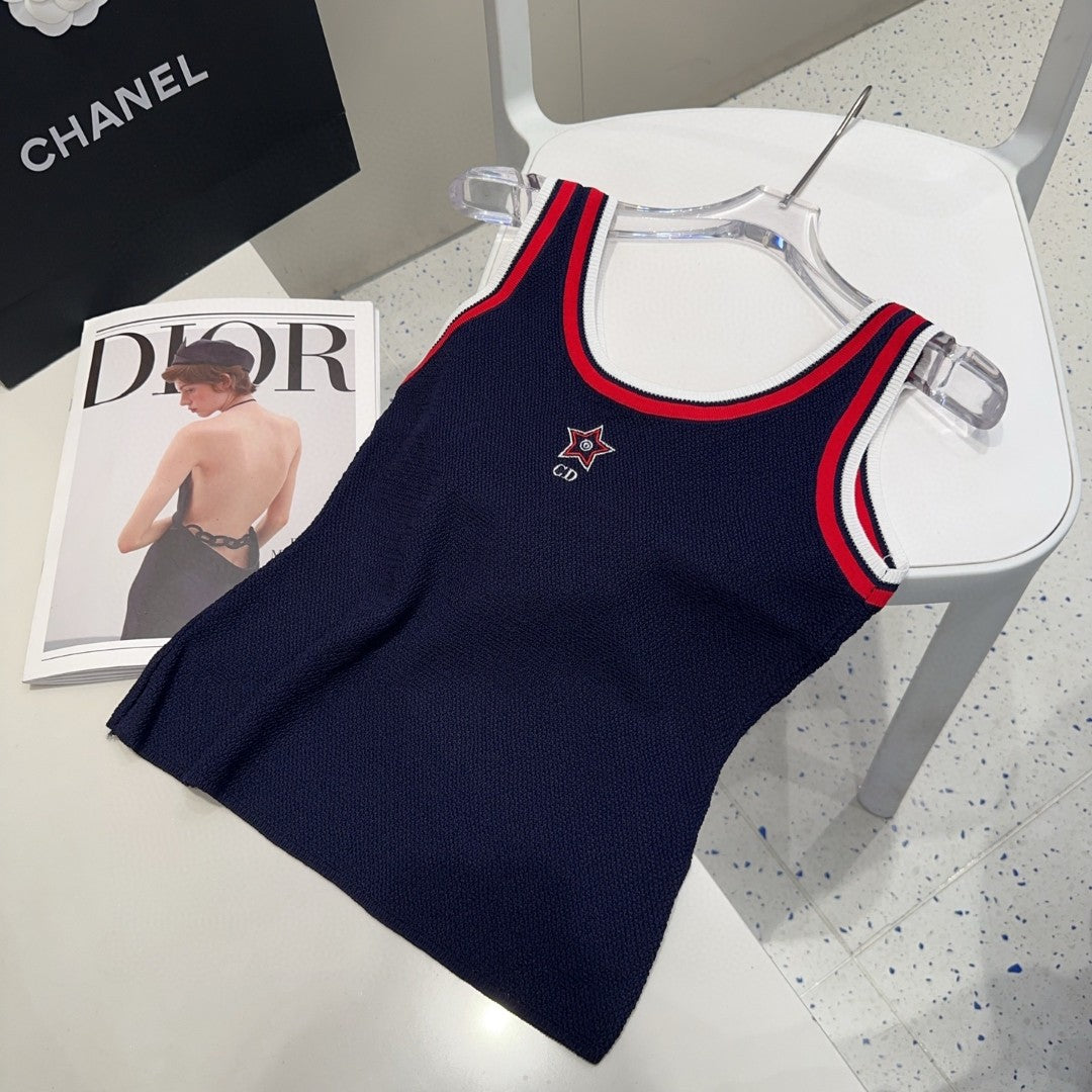 TANK TOP 610347 IN NAVY BLUE COTTON RIBBED RED TRIM