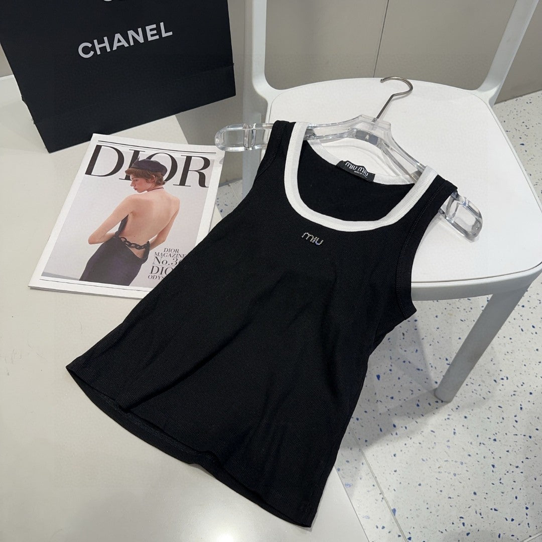 TANK TOP 615176 IN BLACK COTTON RIBBED WHITE TRIM