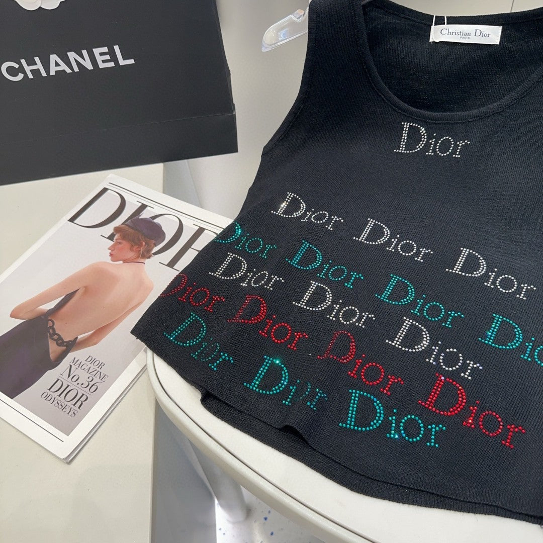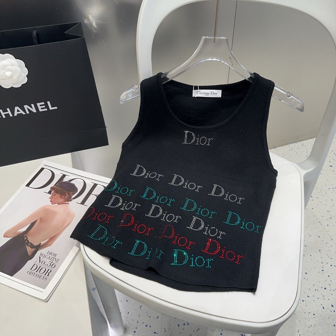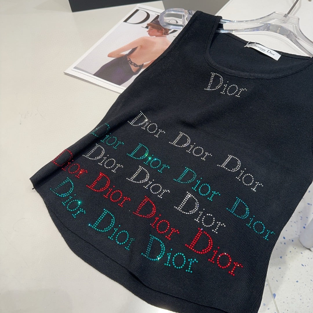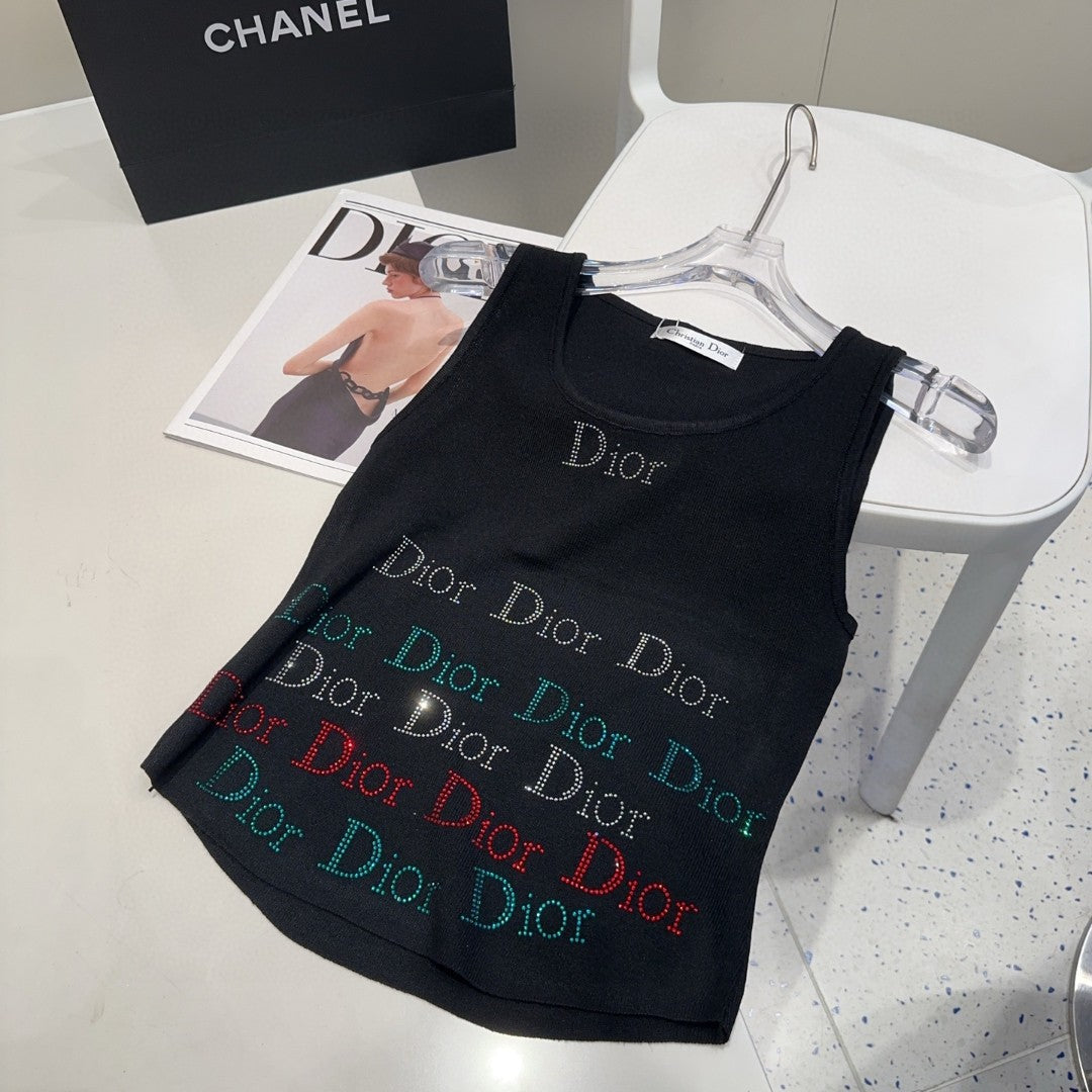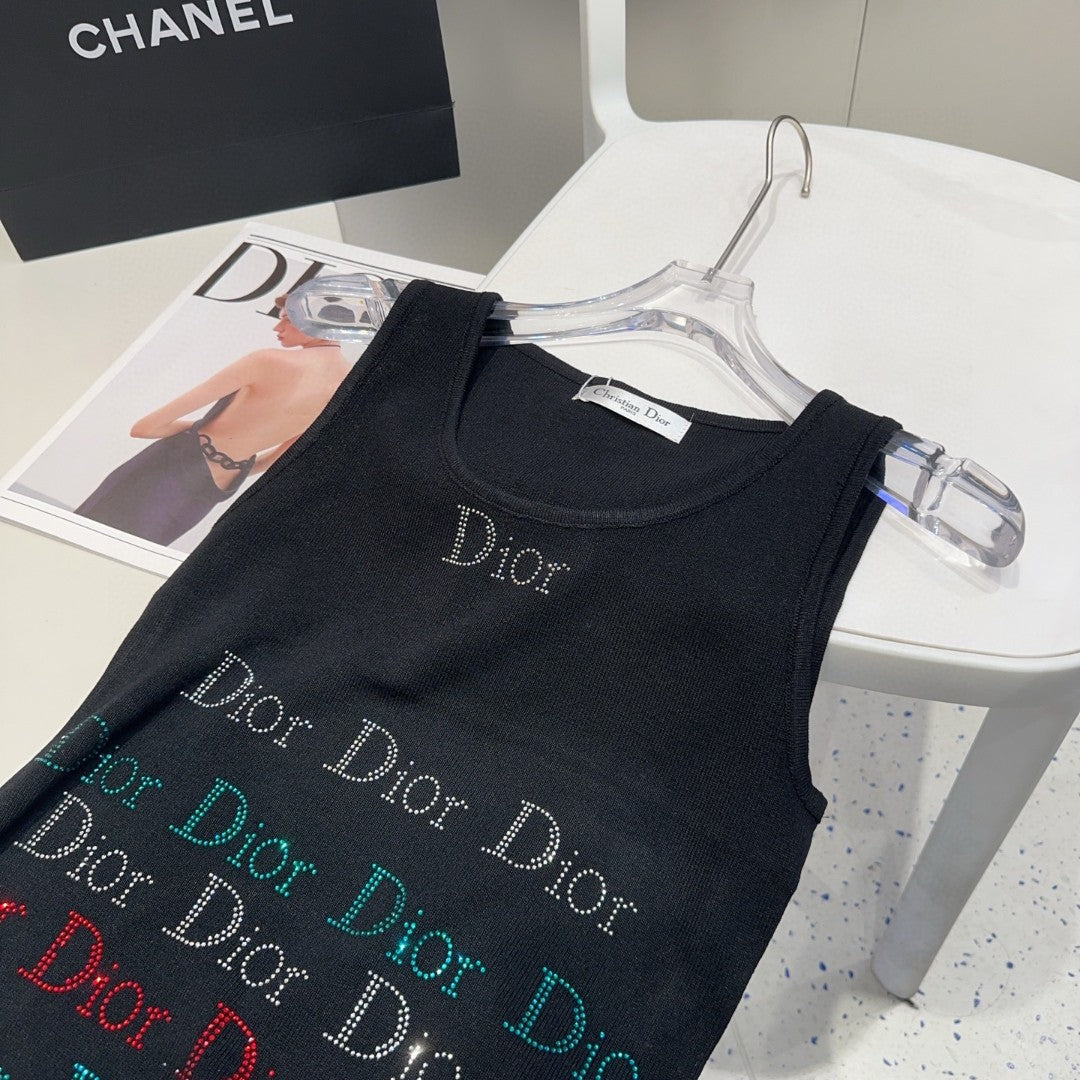 TANK TOP 624520 IN BLACK COTTON RIBBED CRYSTAL LOGO