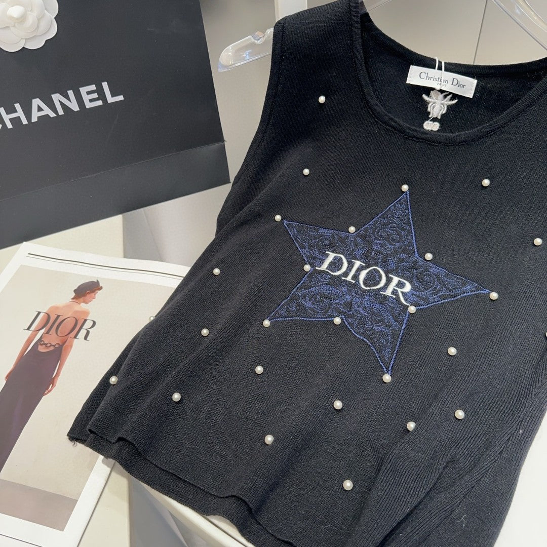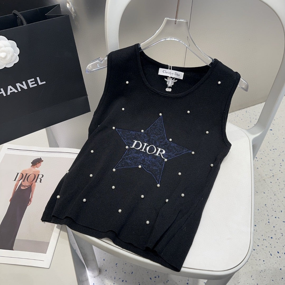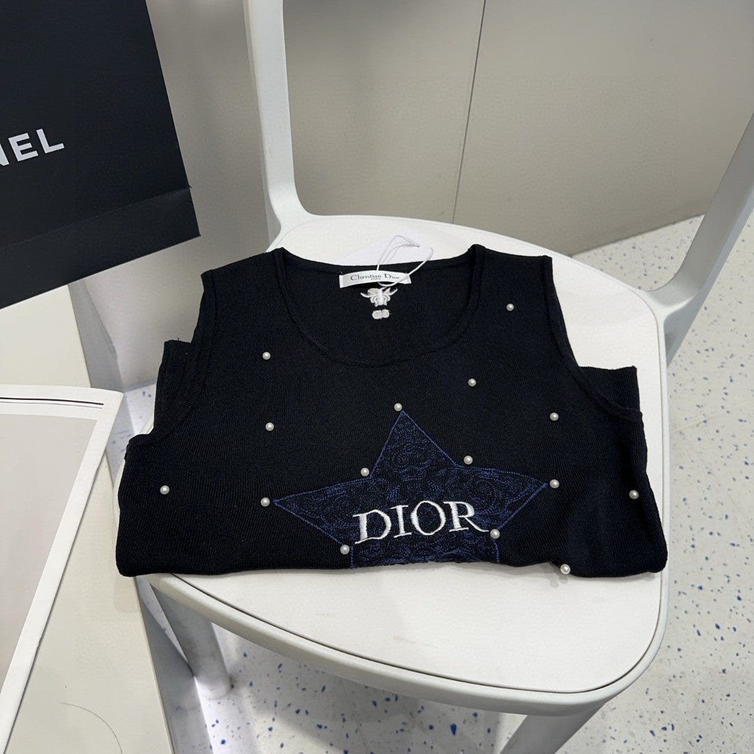 TANK TOP 633197 IN BLACK COTTON EMBOSSED PEARL