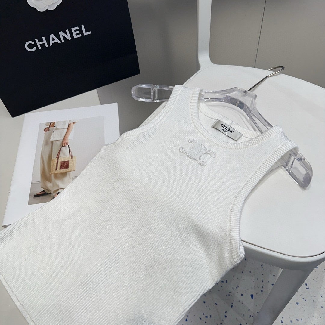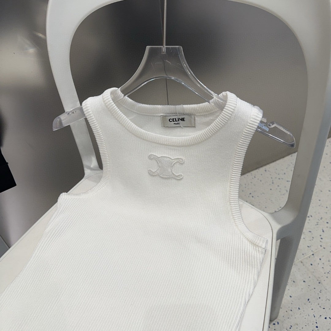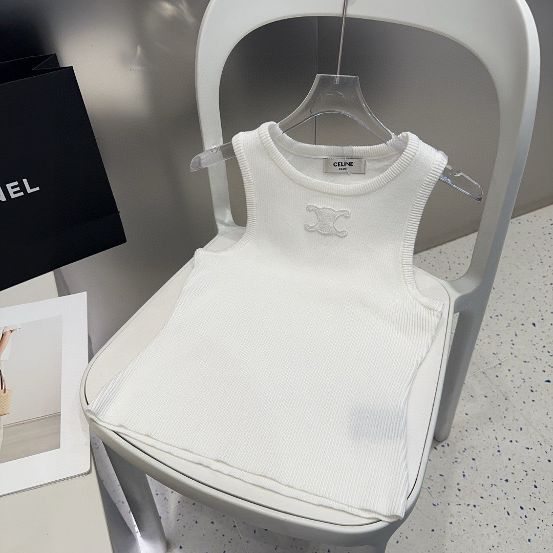TANK TOP 633206 IN WHITE COTTON RIBBED KNIT EMBOSSED LOGO