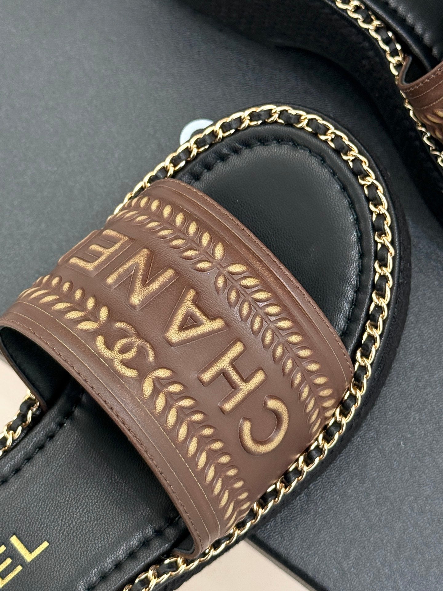 THICK SOLE WEDGE SLIPPERS IN CHOCOLATE BROWN CALFSKIN