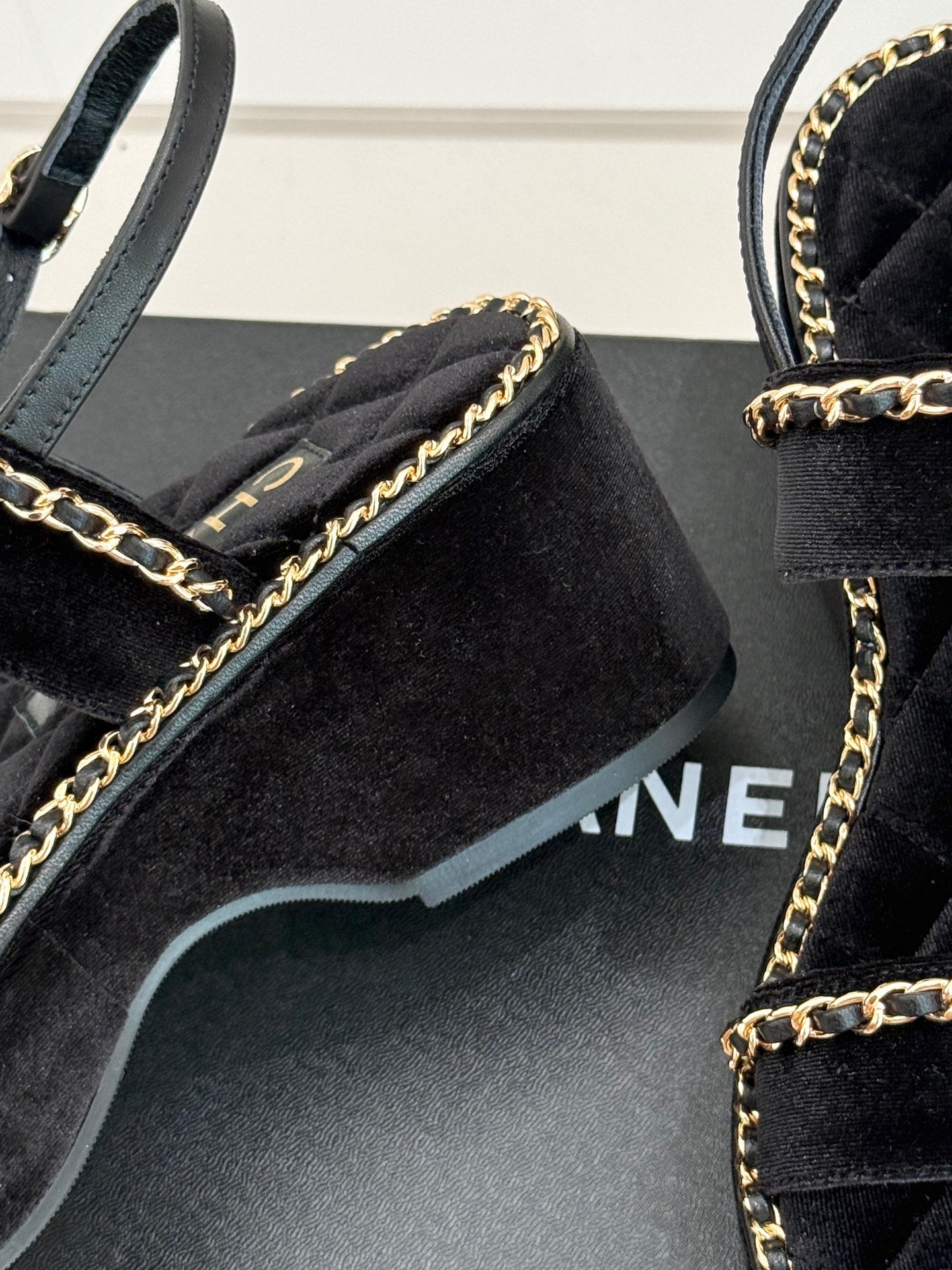 THICK-SOLED CHAIN HEART SANDAL IN BLACK VELVET