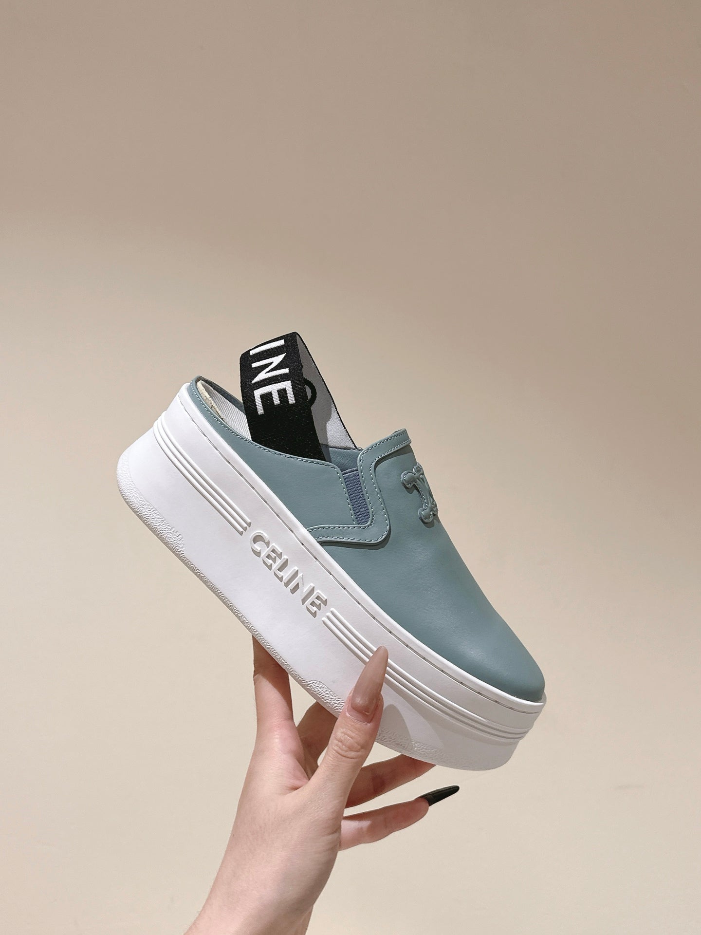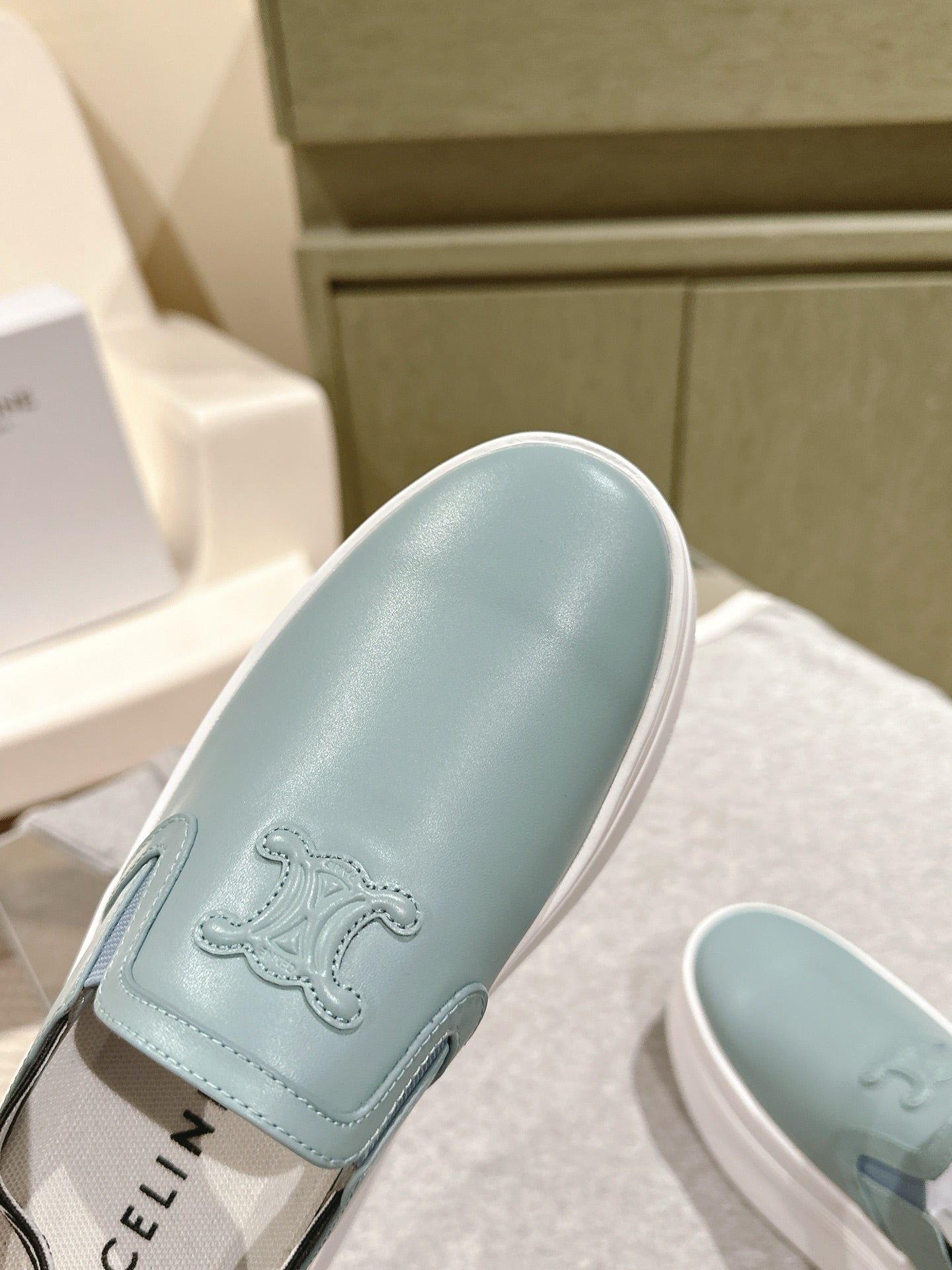 THICK-SOLED ELASTIC BACKLESS SHOES GRANNY SMITH BLUE SHINY CALFSKIN