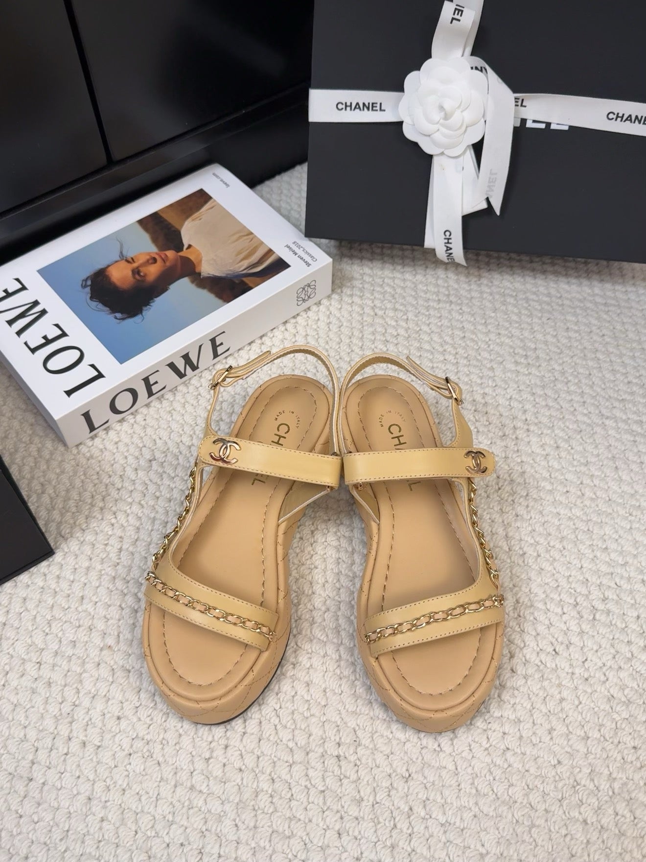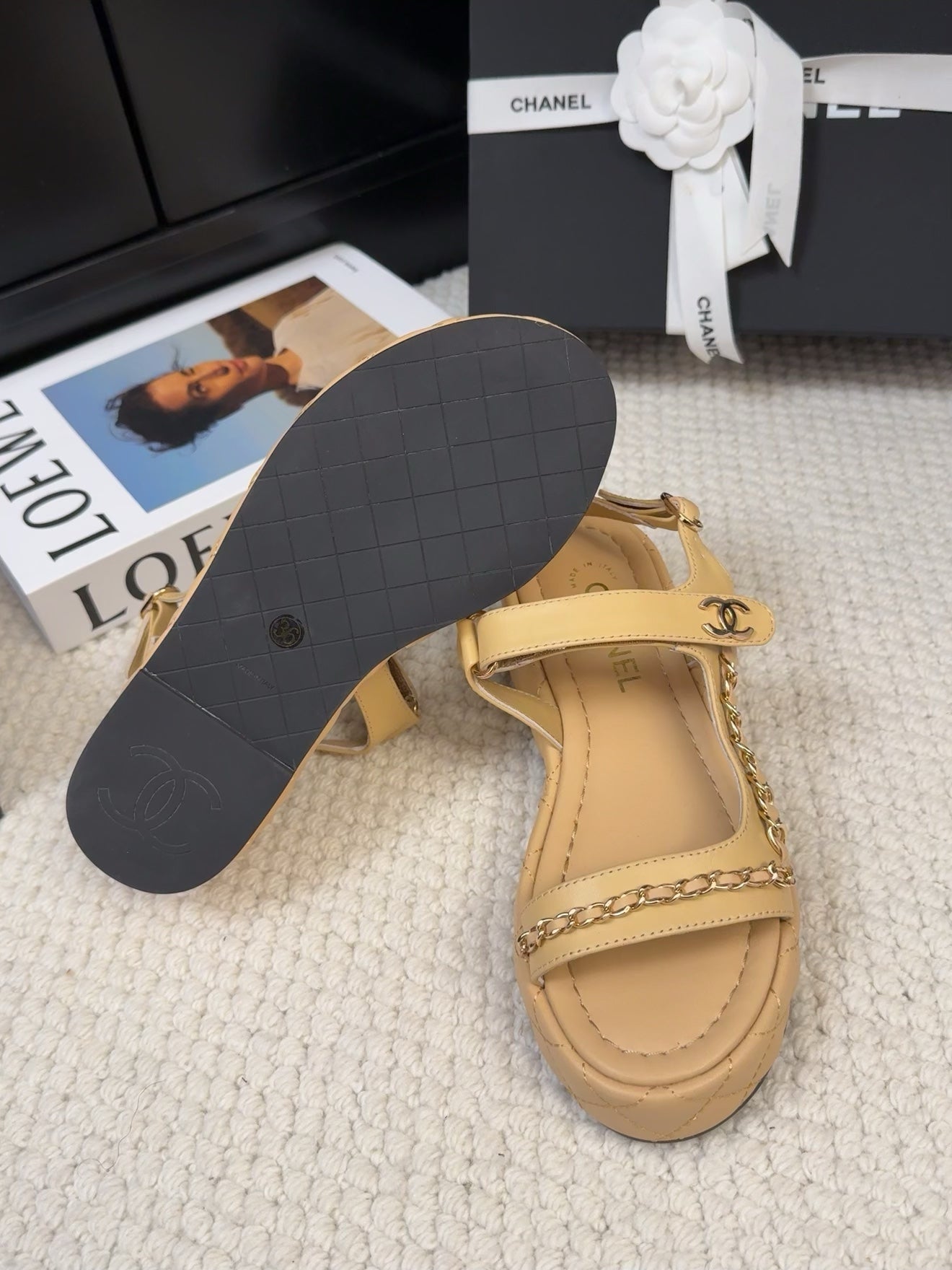 THICK-SOLED SANDALS 55 MM IN SAND YELLOW CALFSKIN