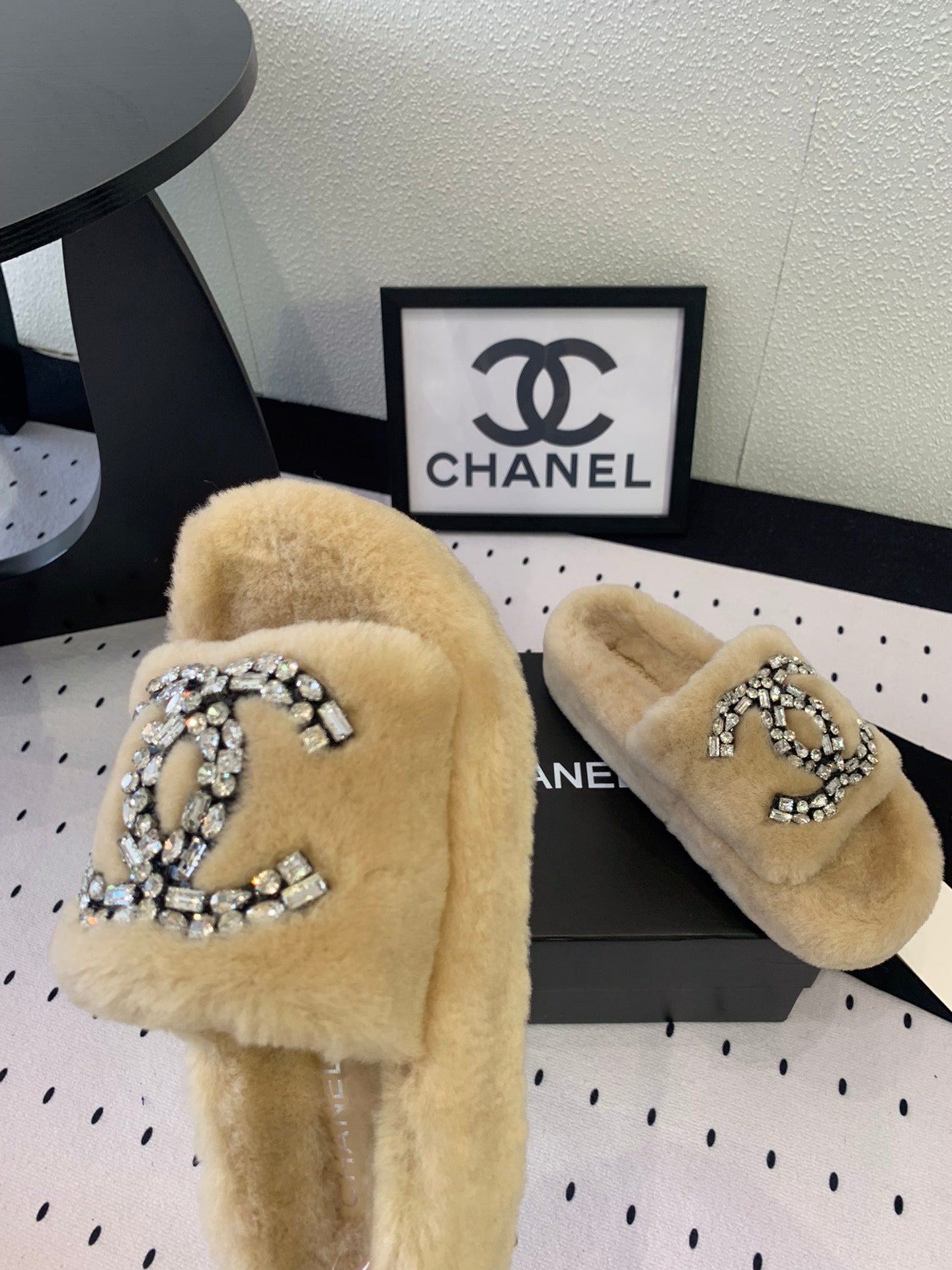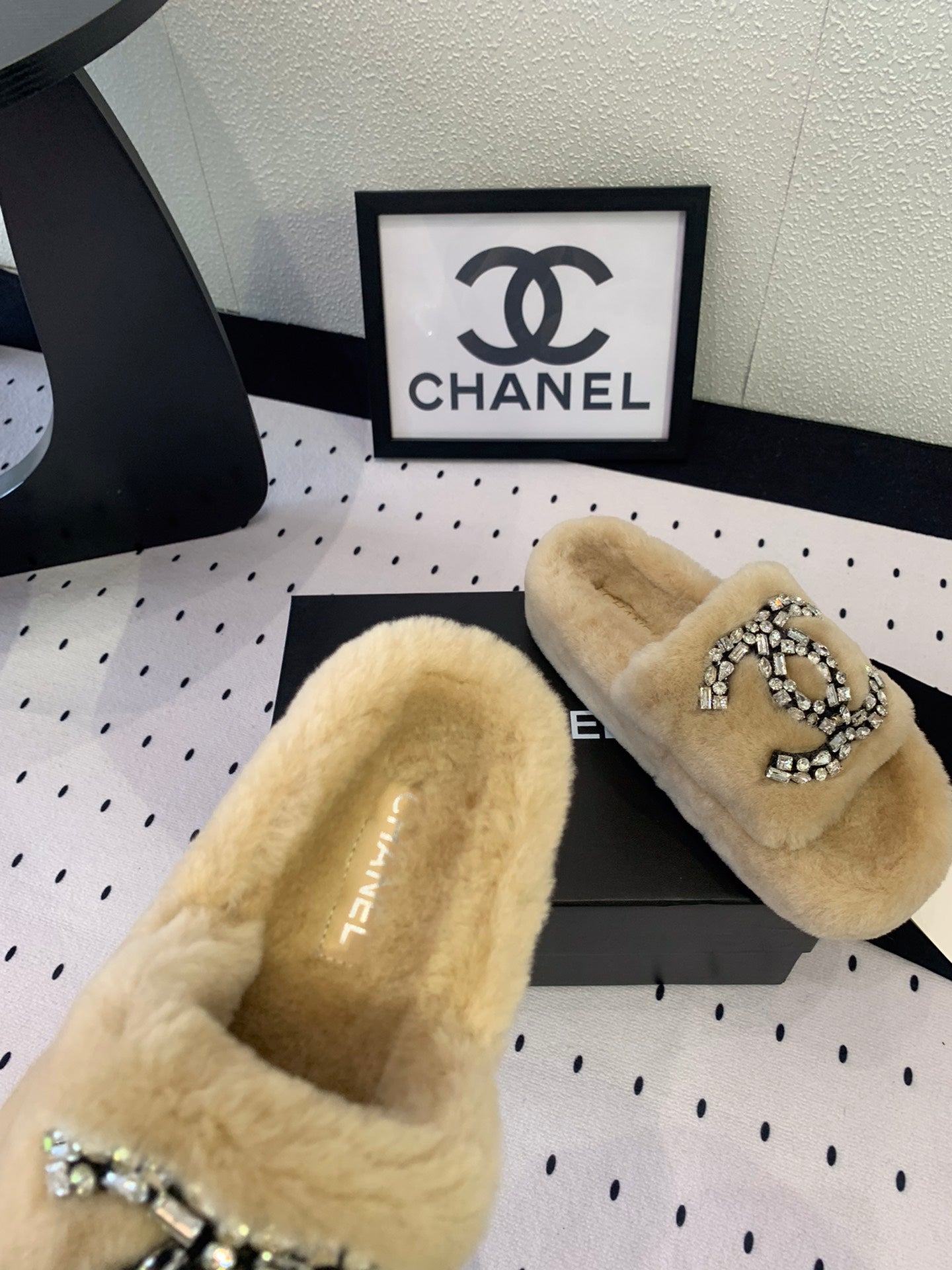 THICK-SOLED SLIPPERS IN BEIGE CREAM SHEEP WOOL