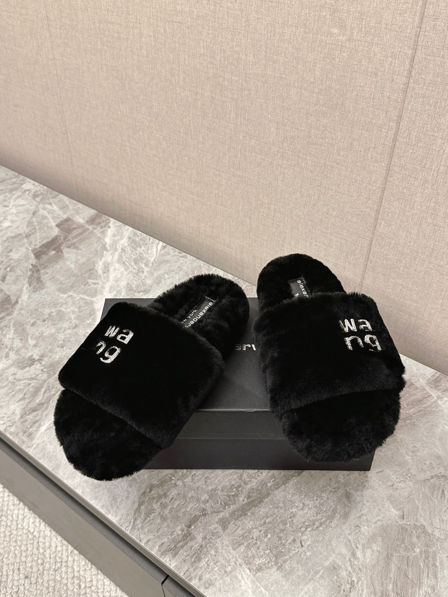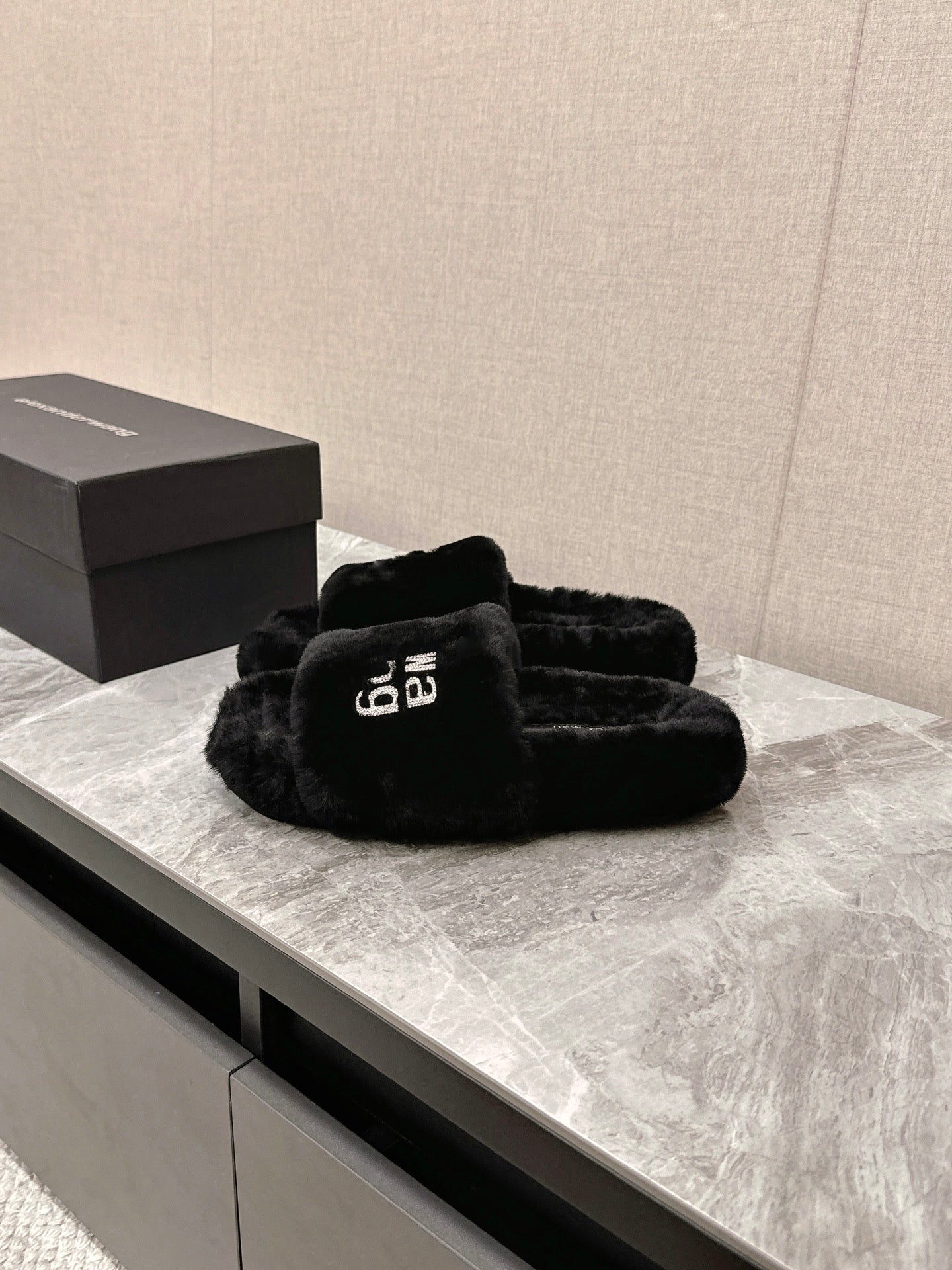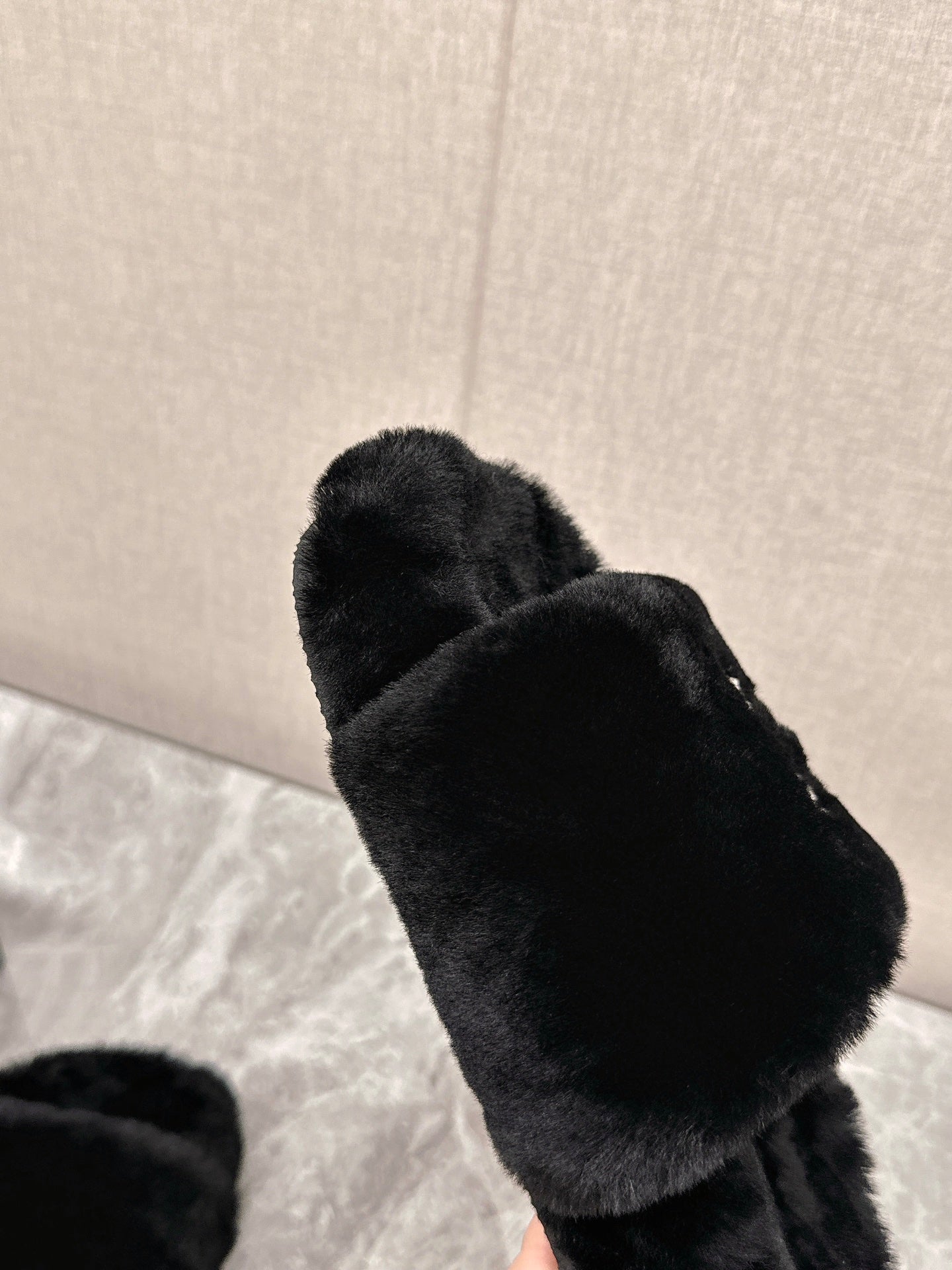 THICK-SOLED SLIPPERS IN BLACK FLEECE