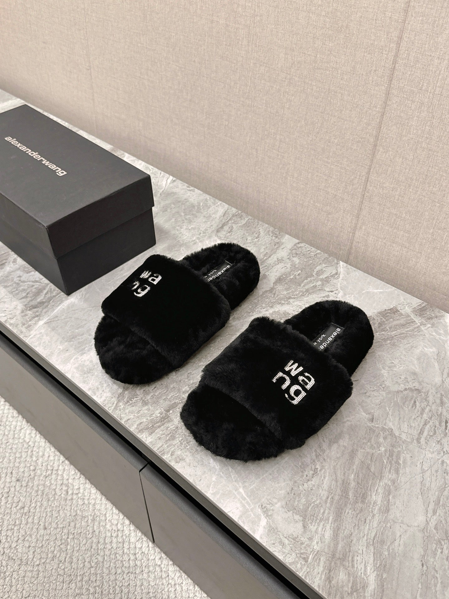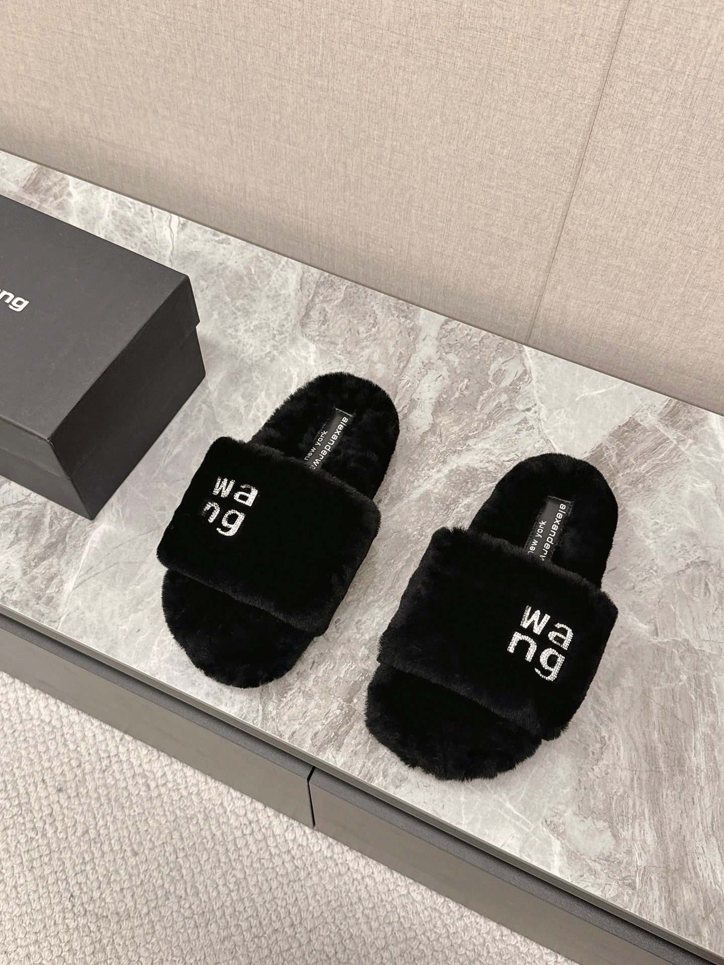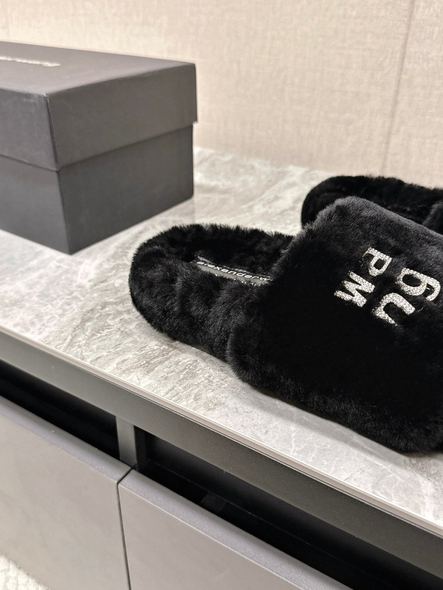 THICK-SOLED SLIPPERS IN BLACK FLEECE