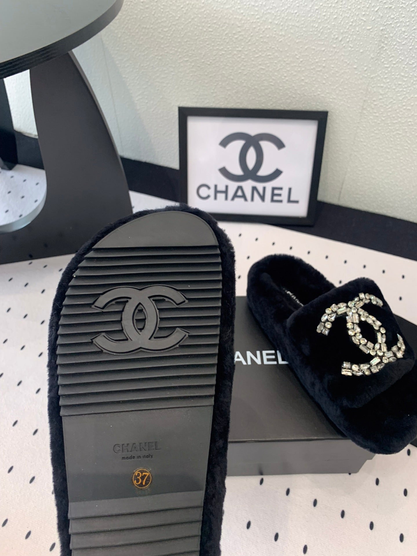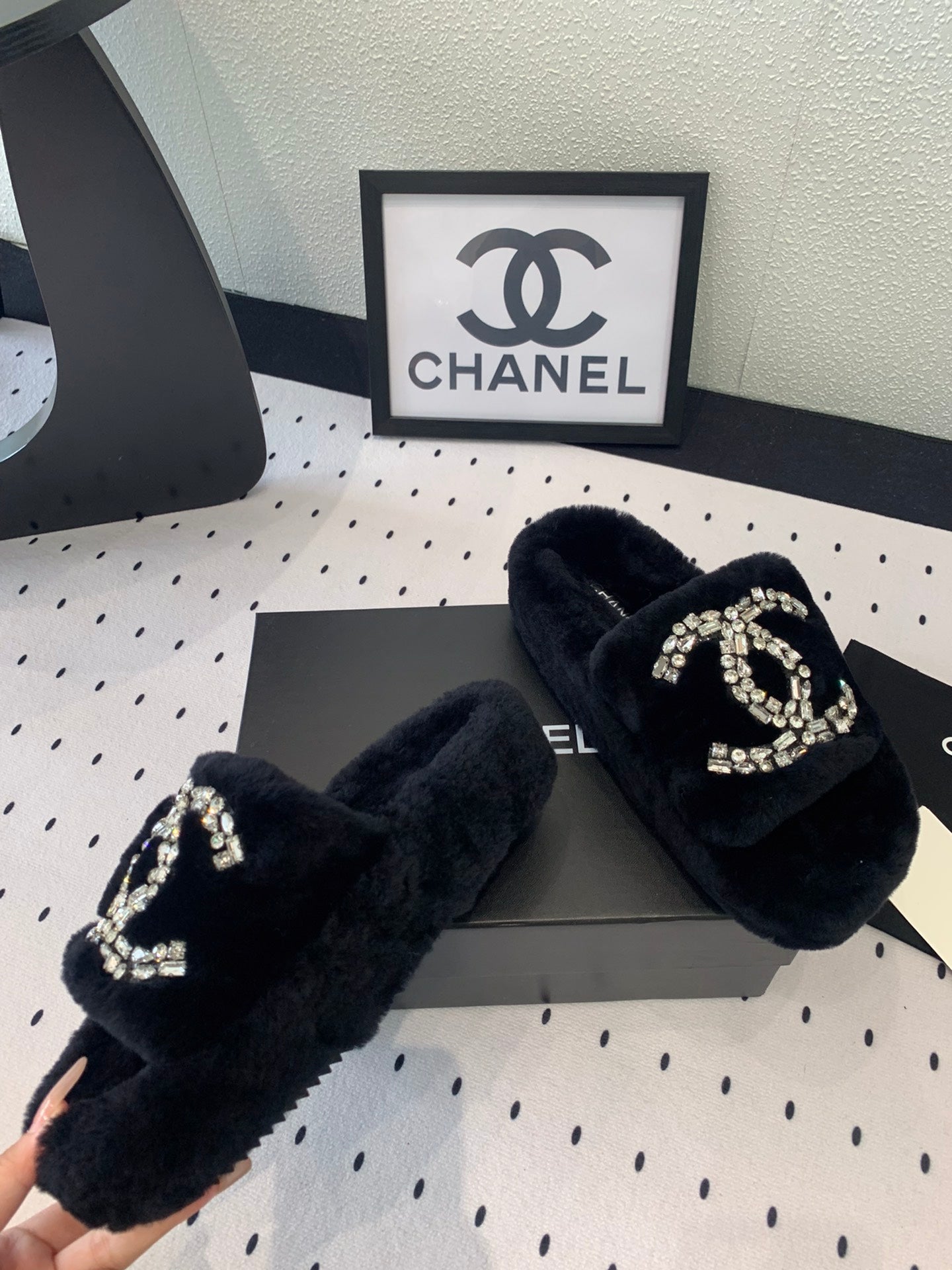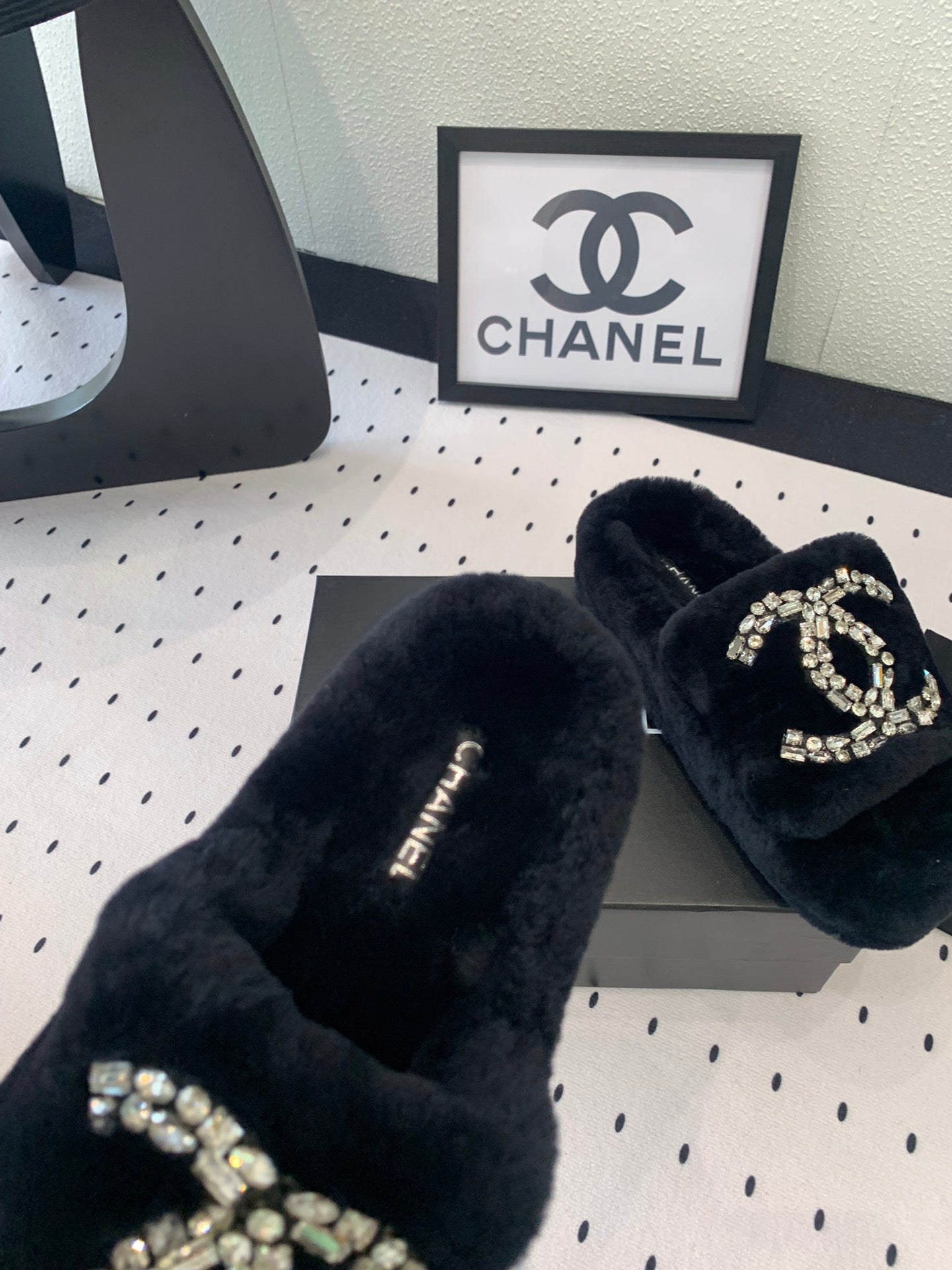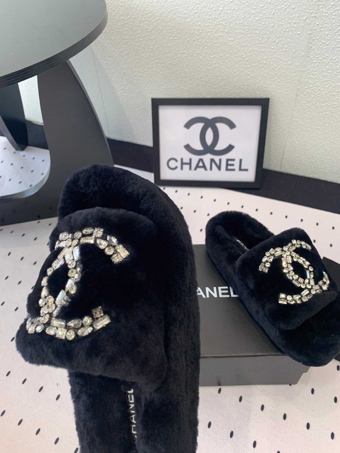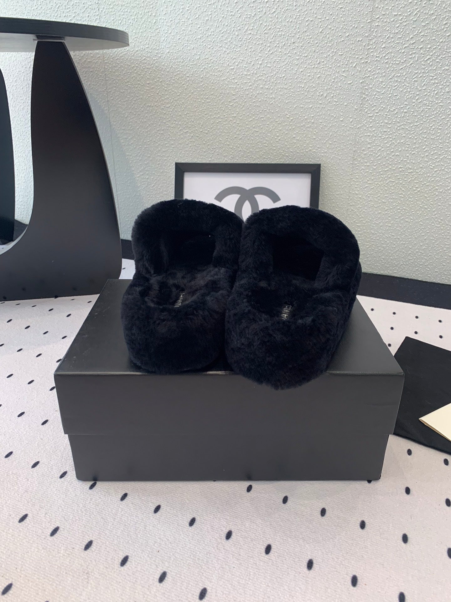THICK-SOLED SLIPPERS IN BLACK SHEEP WOOL